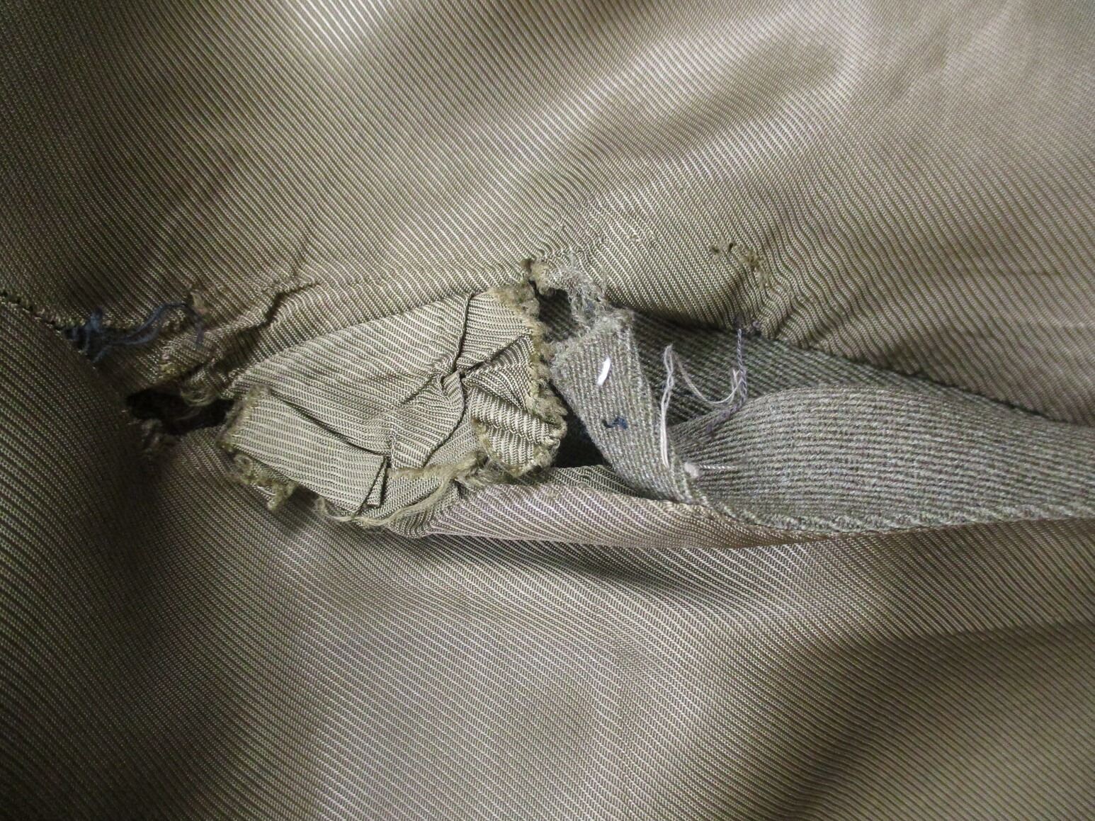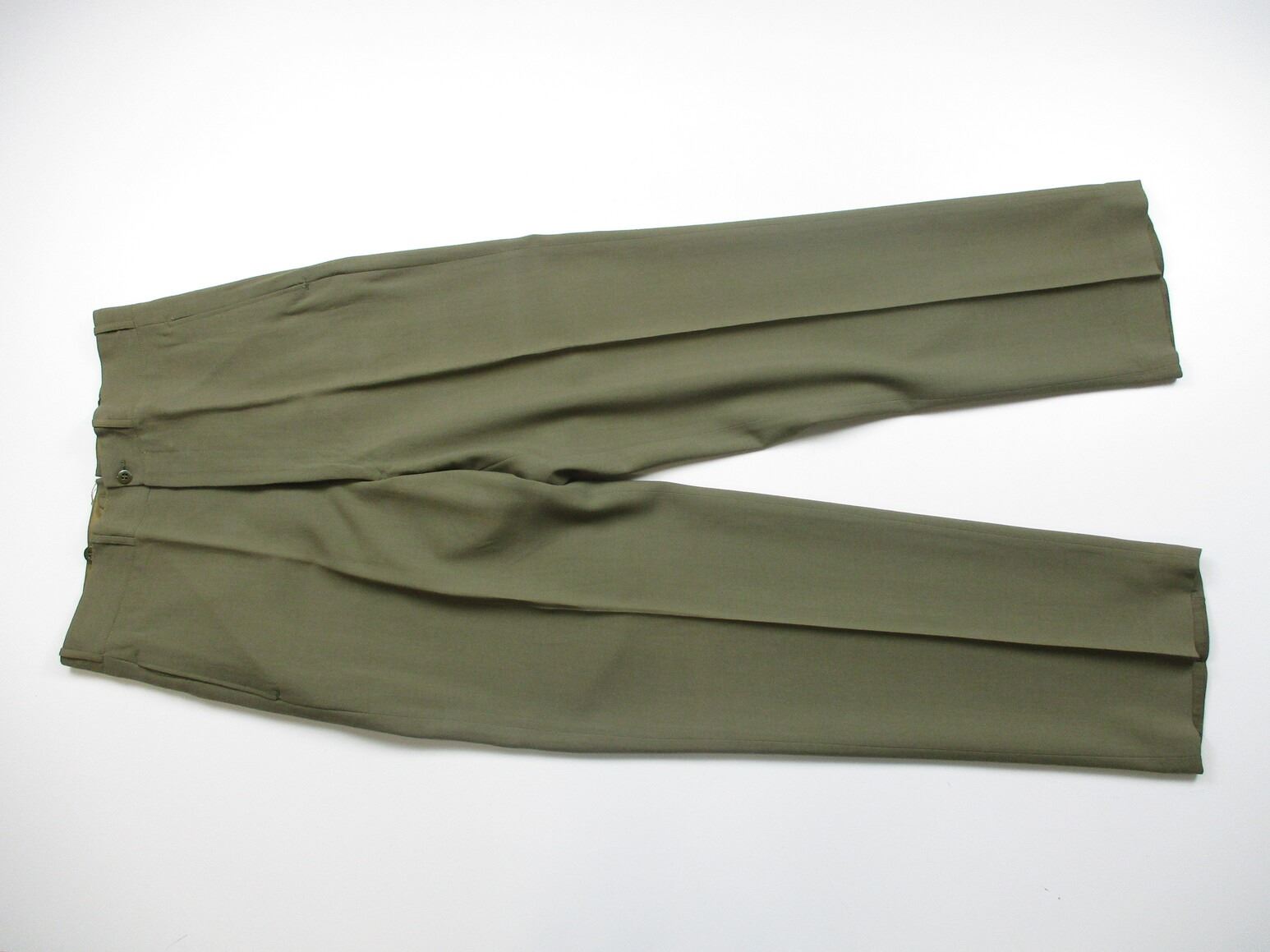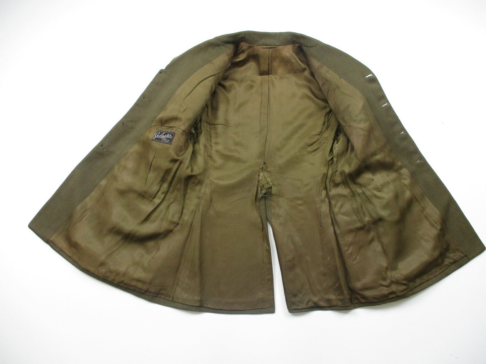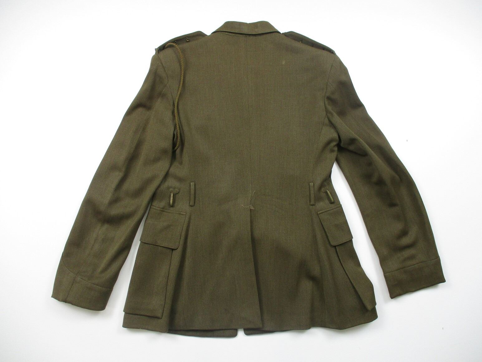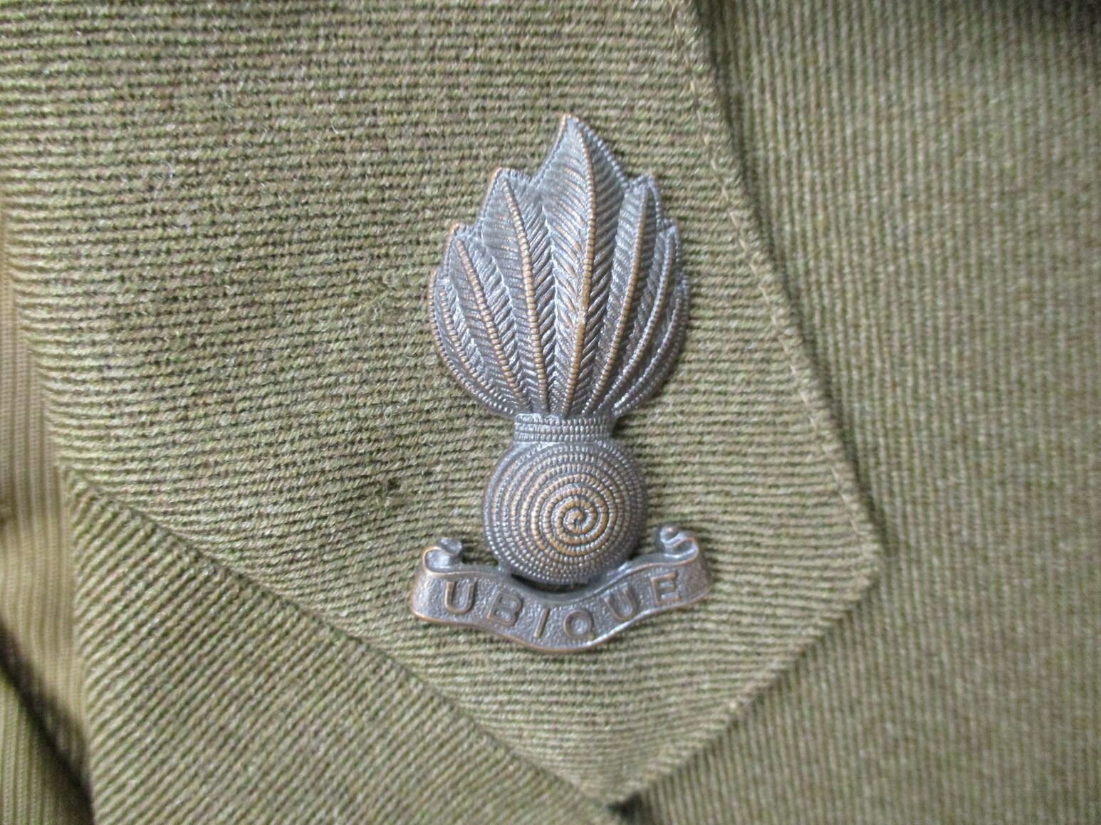 CANADIAN MILITARY DRESS JACKET AND DRESS PANTS LOT, LOT INCLUDES; (1) GREEN, ROYAL CANADIAN ARTILLERY, CAPTAIN RANK, GREEN SHOULDER BRAID, METAL BELT HOOKS, MARKED: "JOHNSTON APPROVED CLOTHES" & "W.R. JOHNSTON & CO. LIMITED, TORONTO, ONT CANADA, 2ND LT. J STOCK, SEPT 20 1941", SHOULDER WIDTH APPROX. 16.5" & (1) PAIR GREEN PANTS, MARKED: "MILLER & GABBE LIMITED, TROUSERS, SERVICE DRESS, SUMMER, 1956, SIZE N17". SEE PHOTOS.