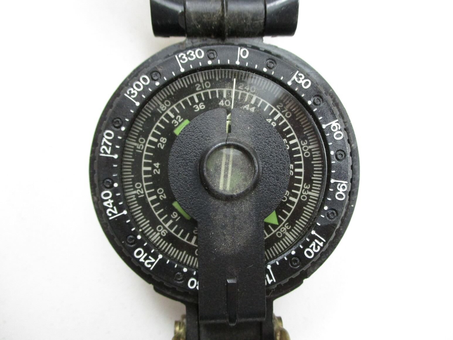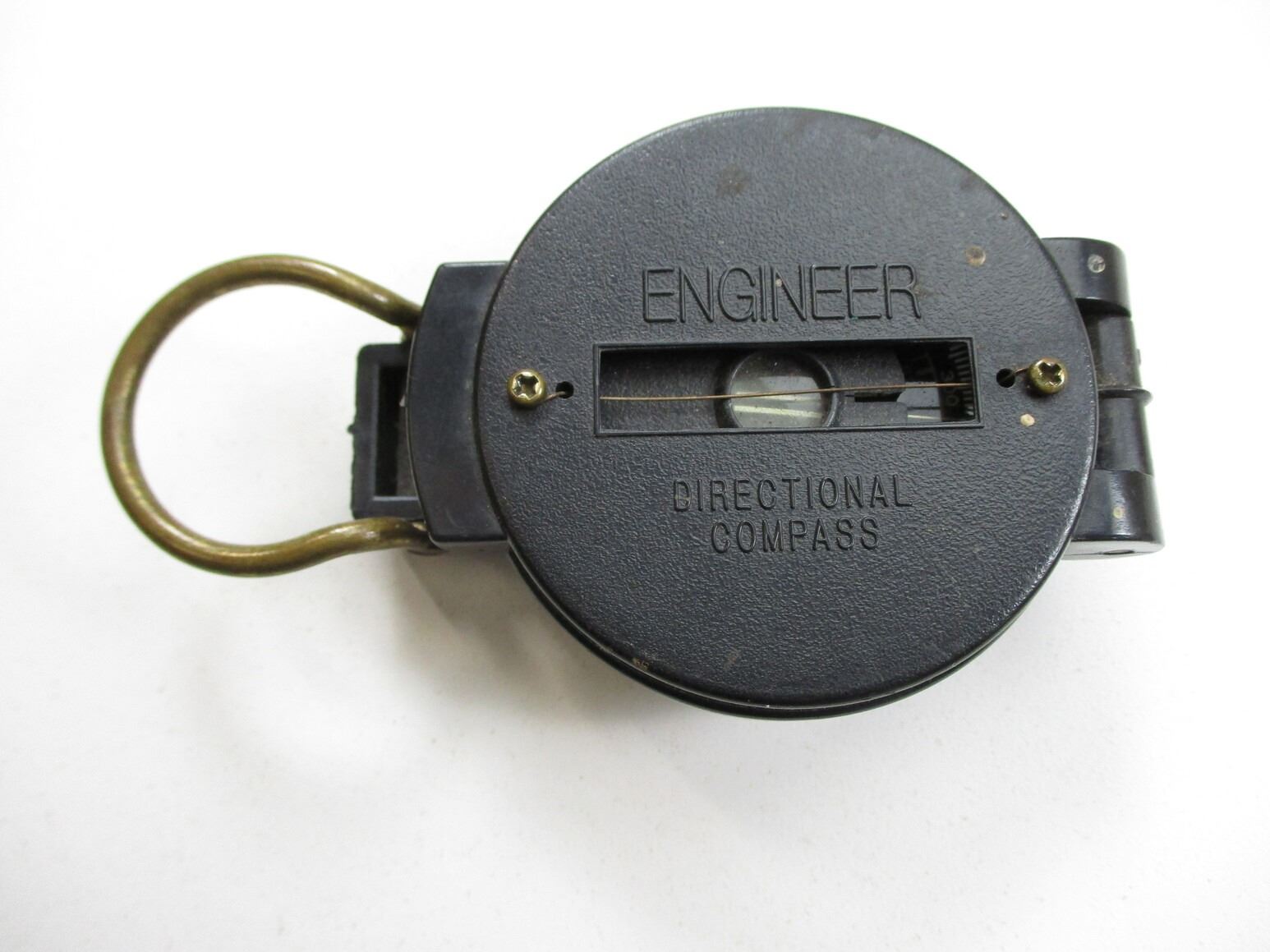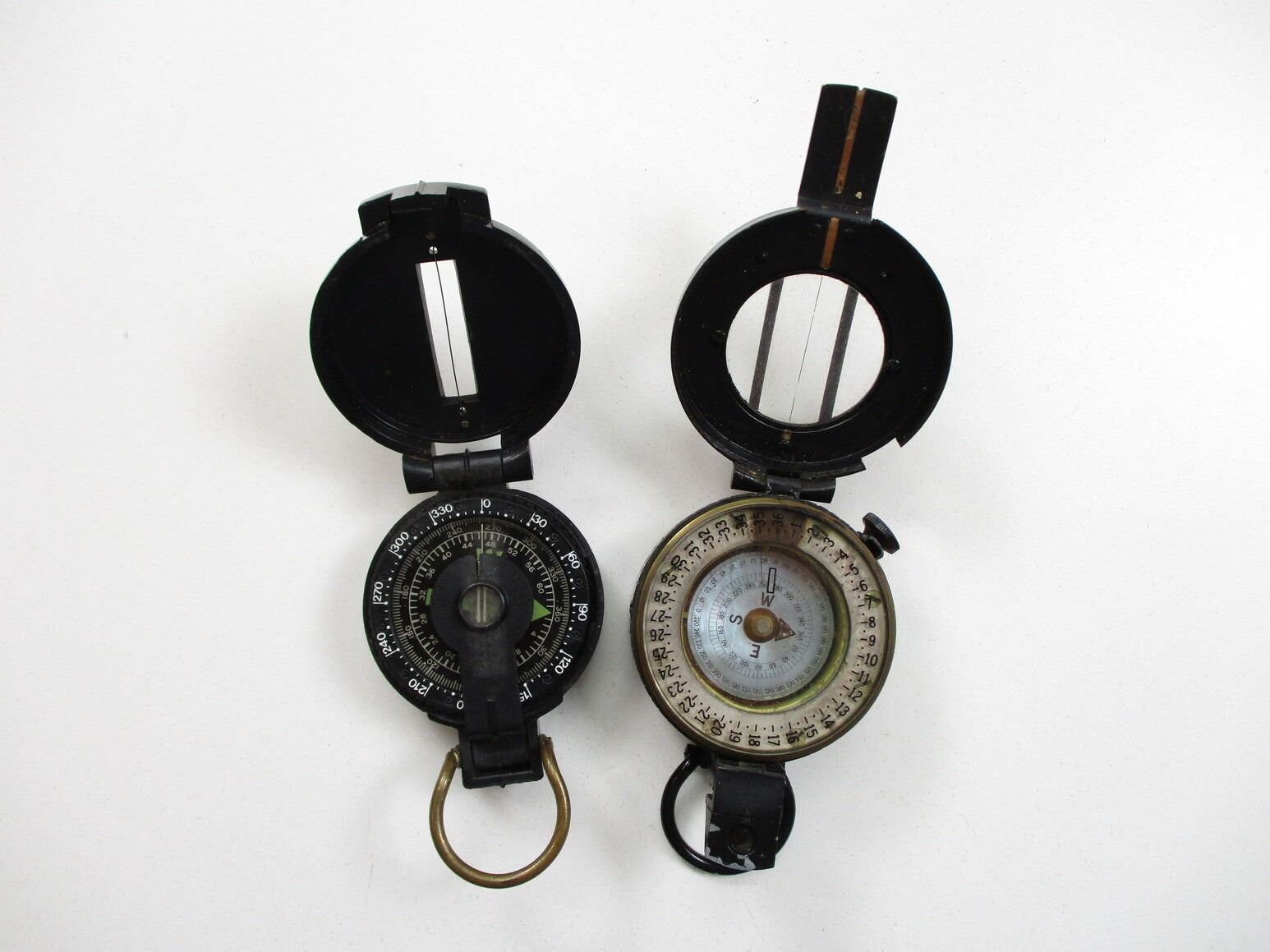 MILITARY COMPASS LOT, LOT INCLUDES; (1) U.S. MILITARY COMPASS, MARKED: "ENGINEER DIRECTIONAL COMPASS" & (1) BRITISH MILITARY COMPASS MARKED: "H.B.&S.LTD., BARKING, REF.NO. 6E/395, NO. 7844-51". SEE PHOTOS.