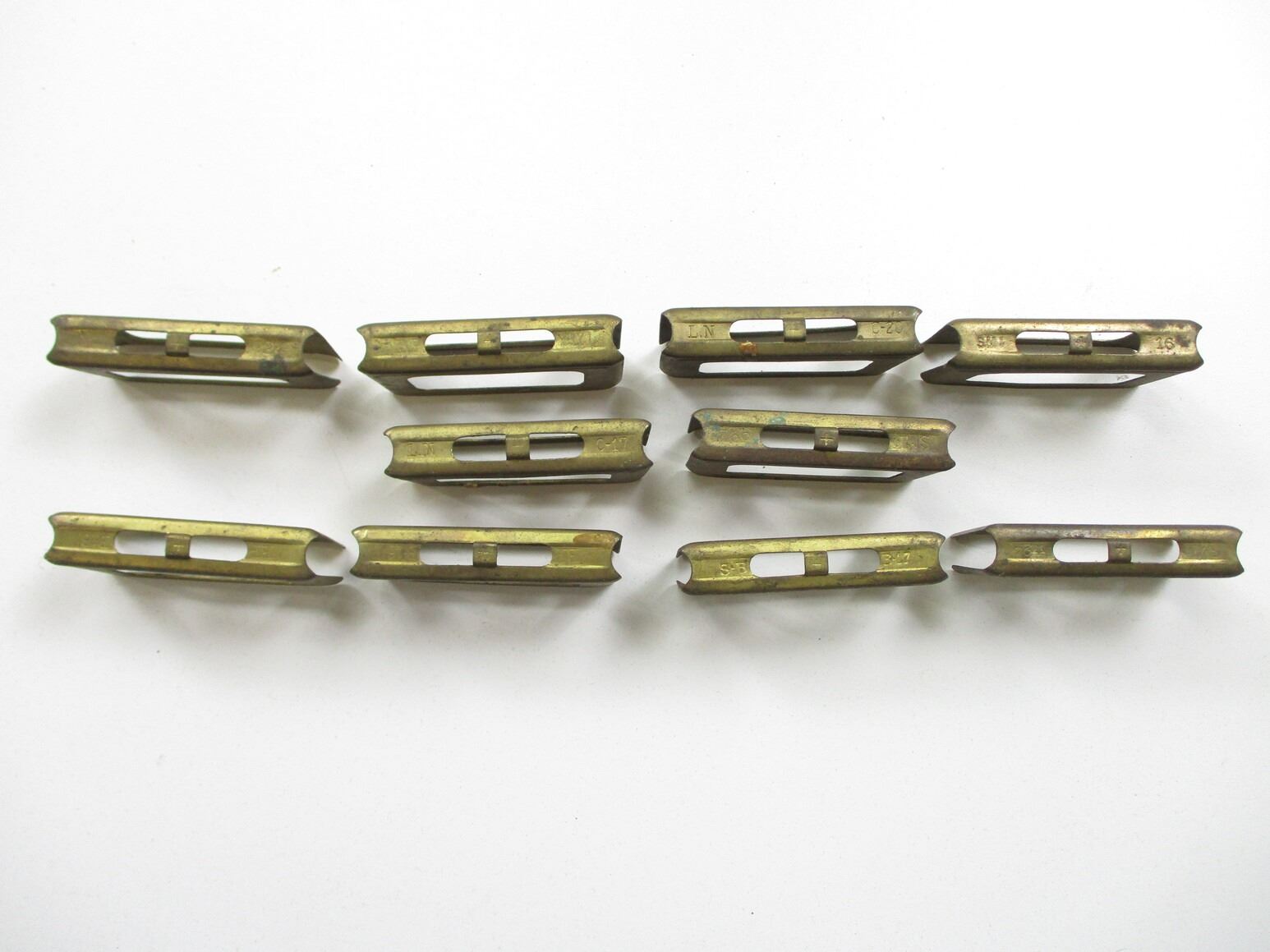 ITALIAN CARCANO STRIPPER CLIP LOT, (10) 6.5X52MM 6-RND STRIPPER CLIPS, BRASS, MARKED WITH VARIOUS NUMBERS & LETTERS, ORIGINAL. SEE PHOTOS.