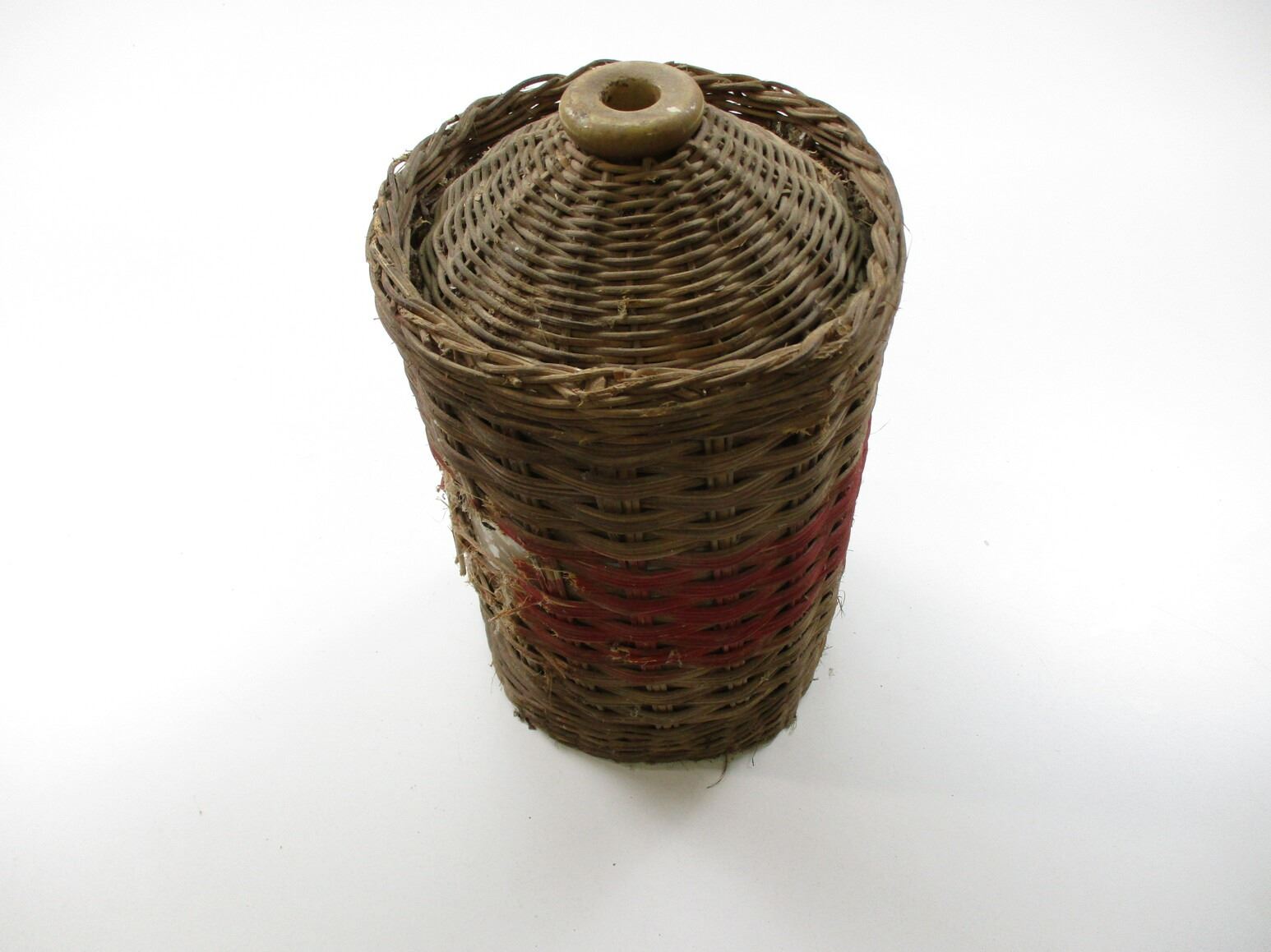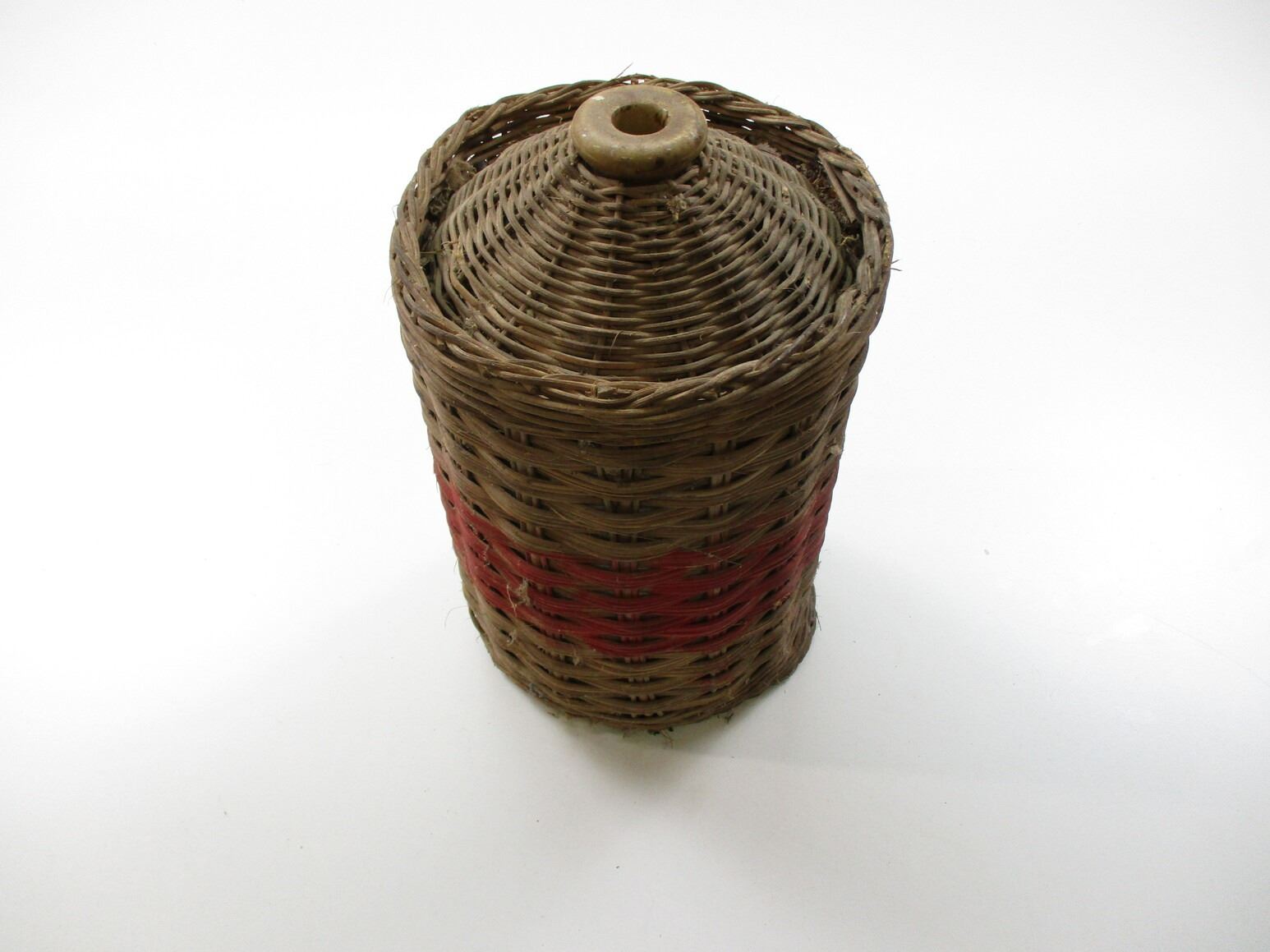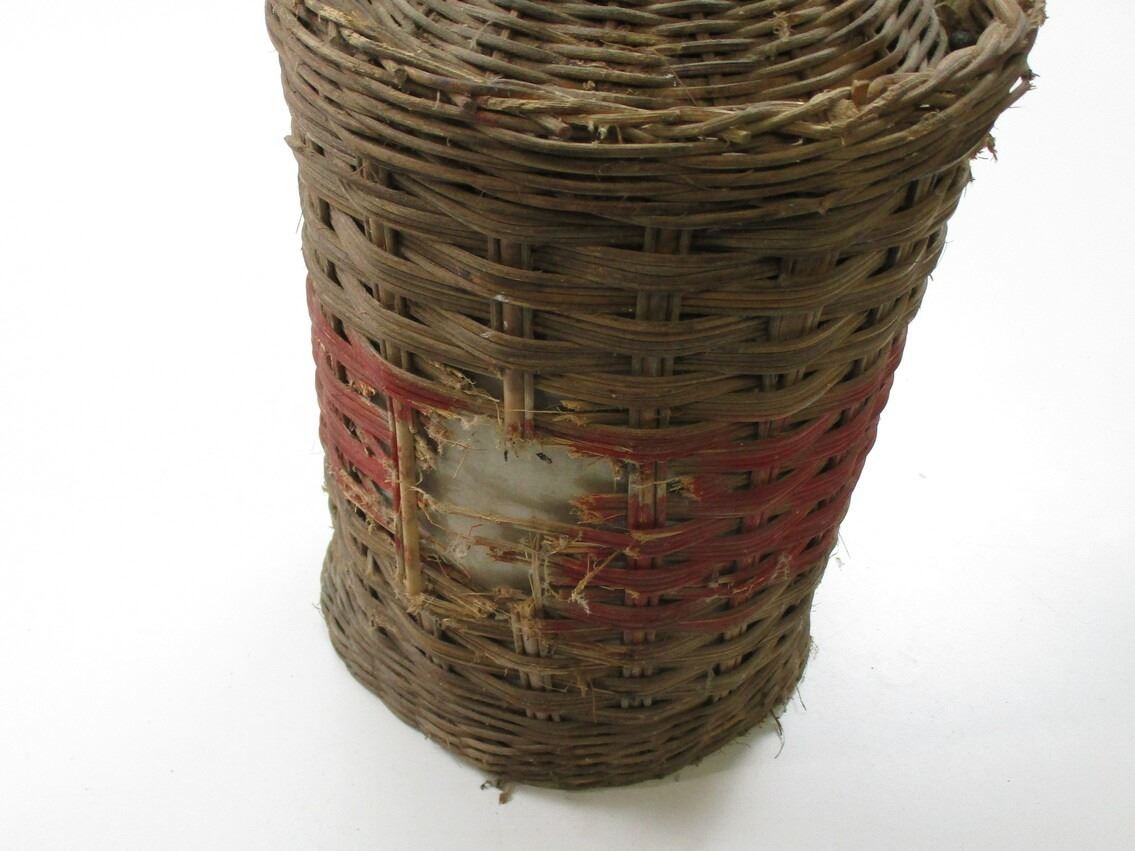 WWI BRITISH SRD WICKER JUG, (1) FOR RUM / SRD (SUPPLY RESERVE DEPOT), IN WICKER COVER WITH RED BAND INDICATING USE. SEE PHOTOS. *NO GUARANTEE ON SHIPPING*