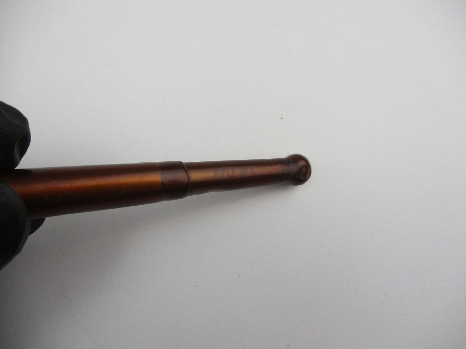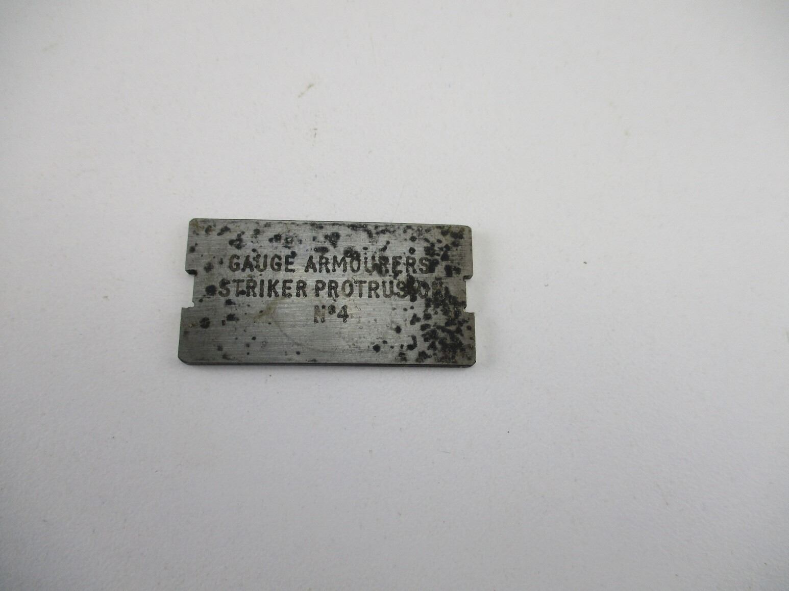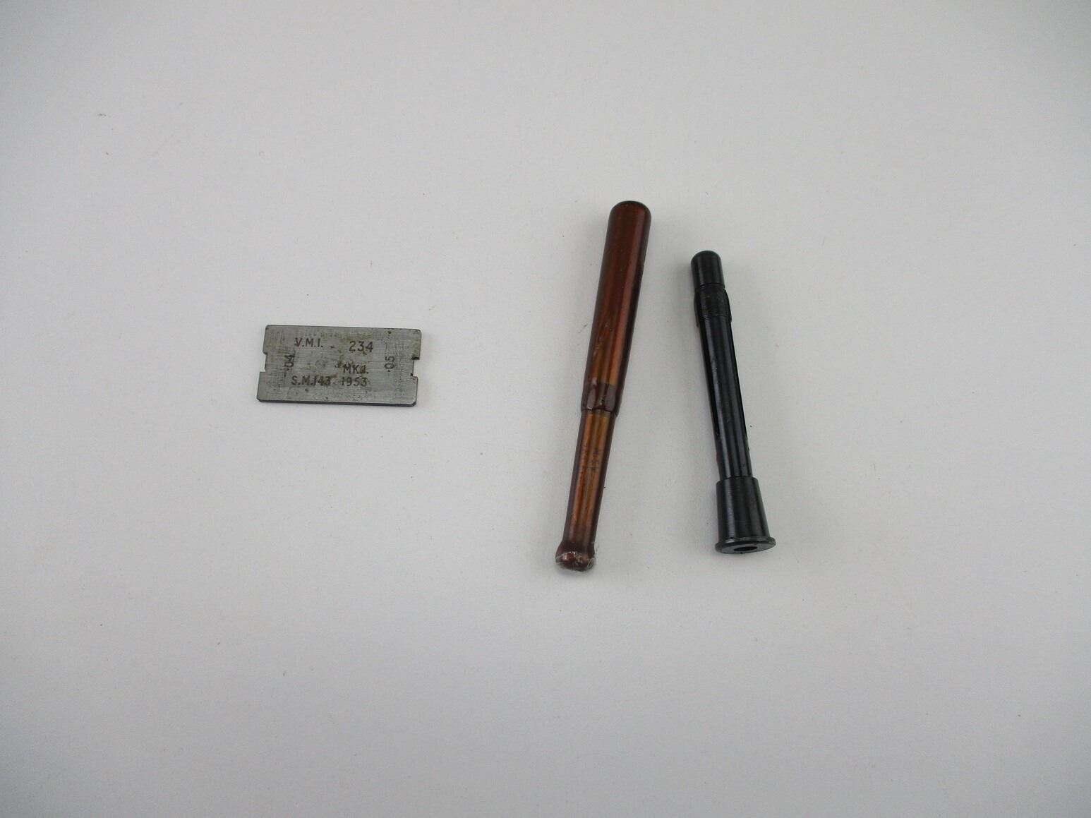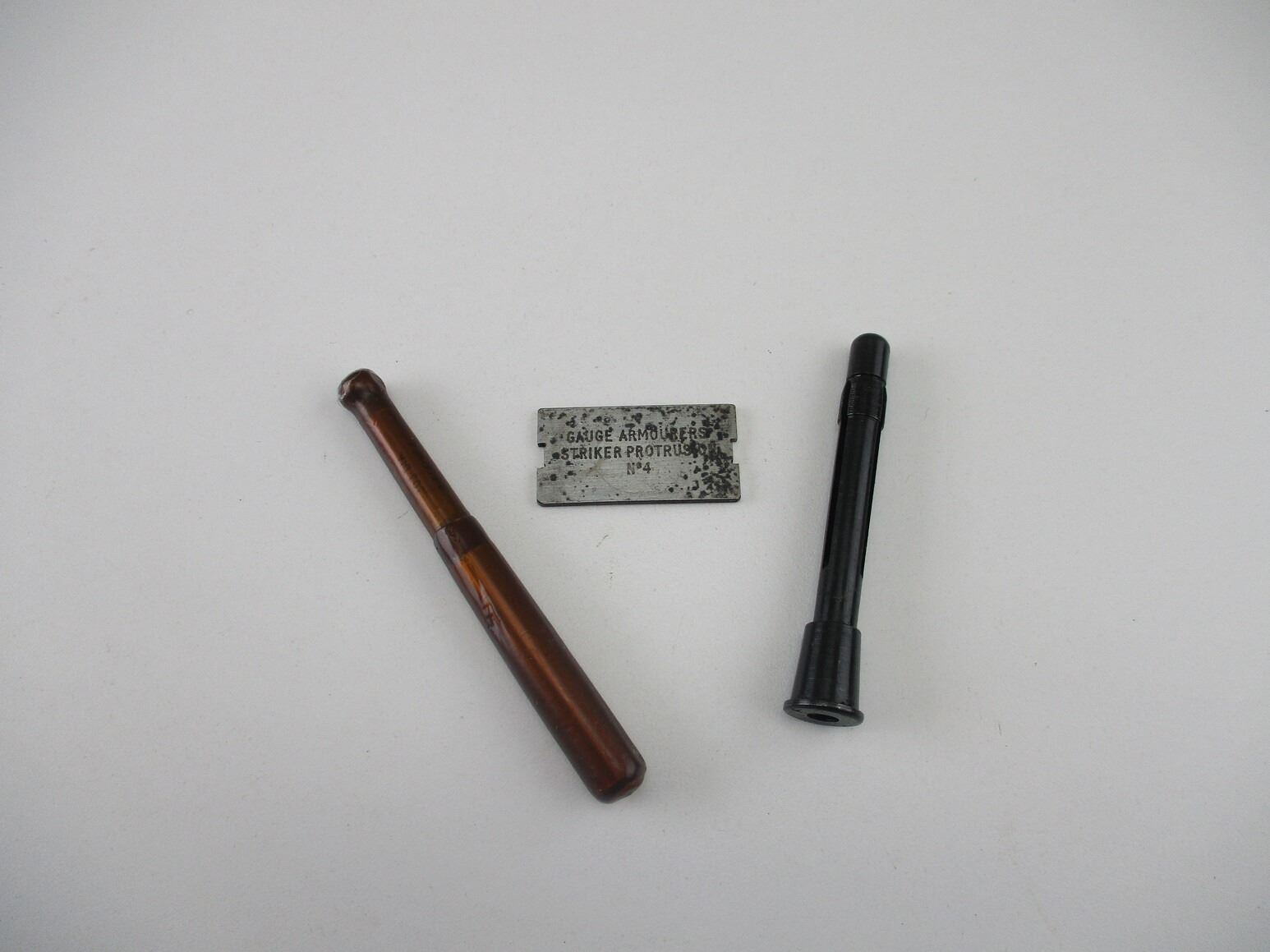 BRITISH / CANADIAN LEE ENFIELD GAUGE, ETC. LOT, FITS .303 BRITISH, NO.4, MKI RIFLES, LOT INCLUDES; (1) BORE GAUGE .303 DIA., NEW IN WRAP, (1) FIRING PIN PROTRUSION GAUGE, MARKED: "VMI, 234, MK.I., S.M.143., 1953" & (1) .303 BRITISH RUPTURED CASE EXTRACTOR, BASE MARKED: "C.A.S.". SEE PHOTOS.