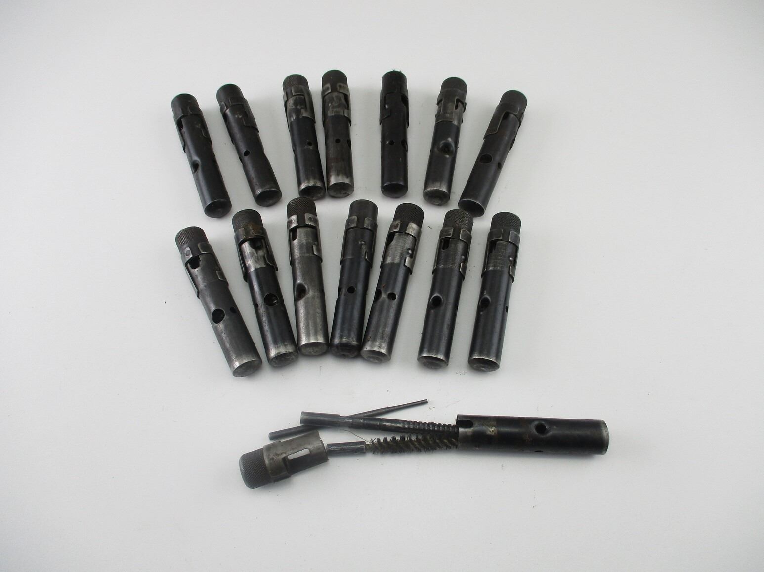 SKS / AK-47 CLEANING KIT LOT, (15) KITS, STEEL CASE WITH JAG, BRUSH, PIN, CONTENTS MAY VARY, UNKNOWN MANUFACTURER. SEE PHOTOS.