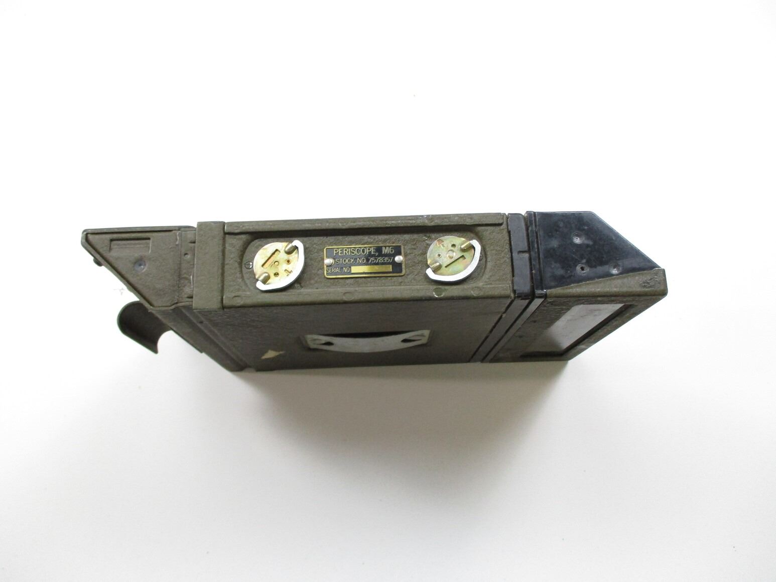 U.S. MILITARY PERISCOPE M-6, (1) VISION BLOCK FOR AFV'S & TANKS, CLEAR OPTICS, MARKED: "PERISCOPE, M6, STOCK NO. 7578357, SERIAL NO." & "7689124", APPROX. 11" X 6.5" X 2.25". SEE PHOTOS.