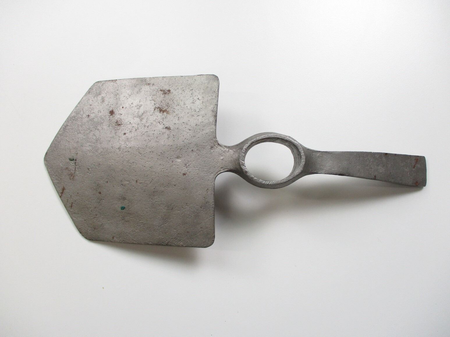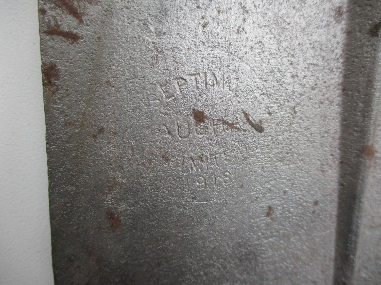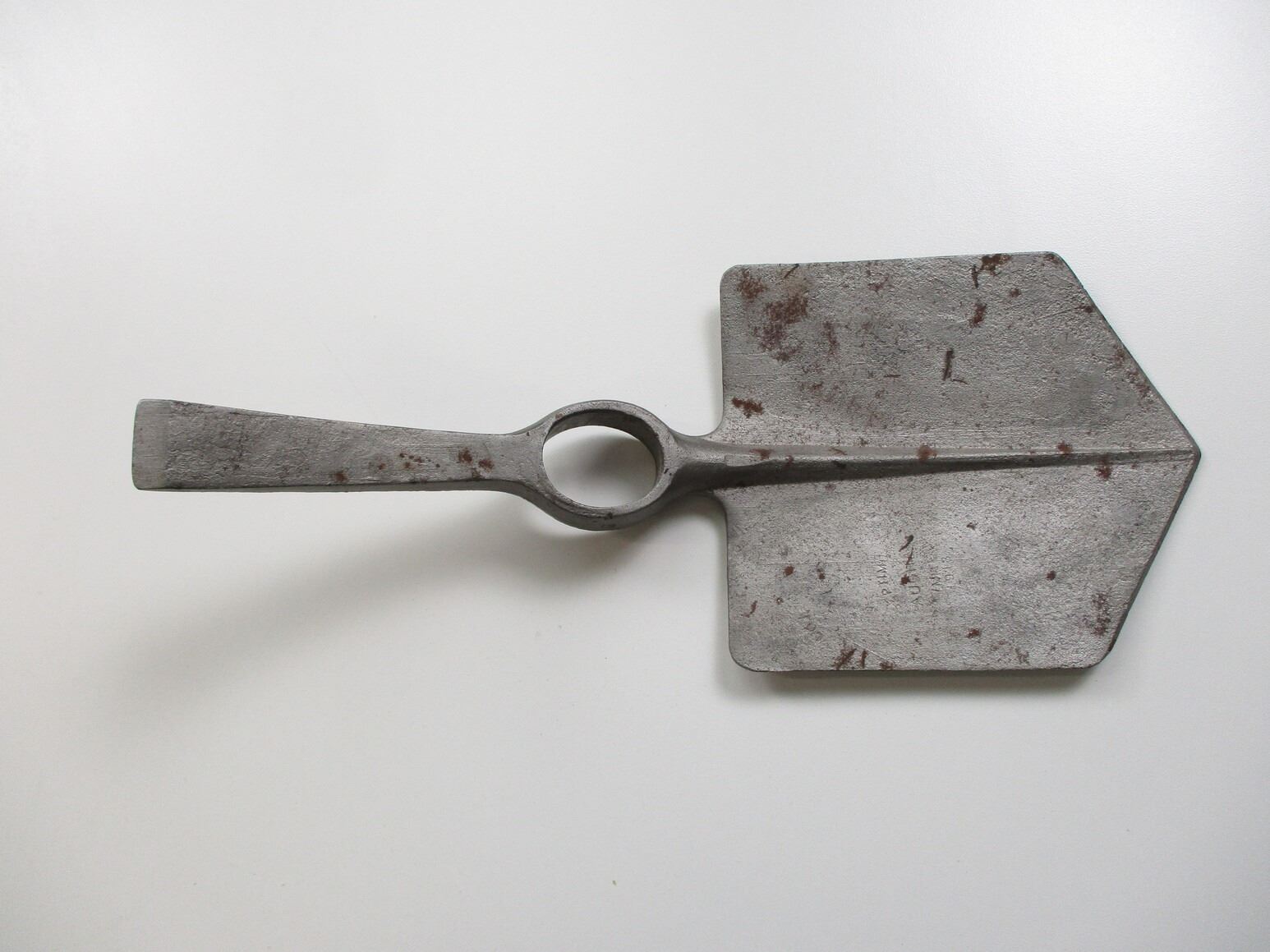 WWI BRITISH MILITARY ENTRENCHING TOOL, (1) TOOL ONLY, NO HANDLE, HAS BEEN SAND-BLASTED WITH RUST SPOTS, MARKED: "SEPTIMUS VAUGHAN LIMITED, 1918", OAL APPROX. 12". SEE PHOTOS.