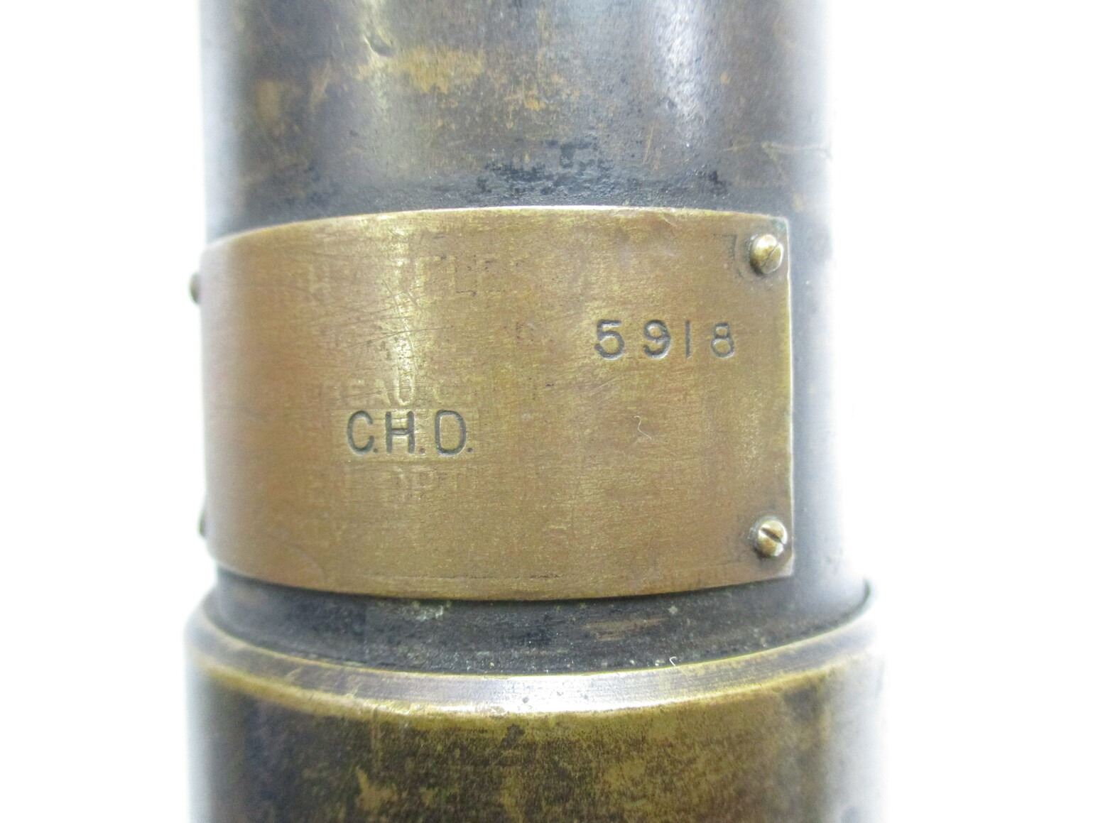 WWI U.S. NAVY GUNSIGHT TELESCOPE, (1) BRONZE, CLEAR OPTICS, MARKED: "GUN-SIGHT TELESCOPE, MARK XXVI MOD.4 NO. 5918, INSPECTOR C.H.D. U.S.N., KOLLMORGEN OPTICAL CORP., BROOKLYN, N.Y. U.S.A.", OAL APPROX. 22.5". SEE PHOTOS.