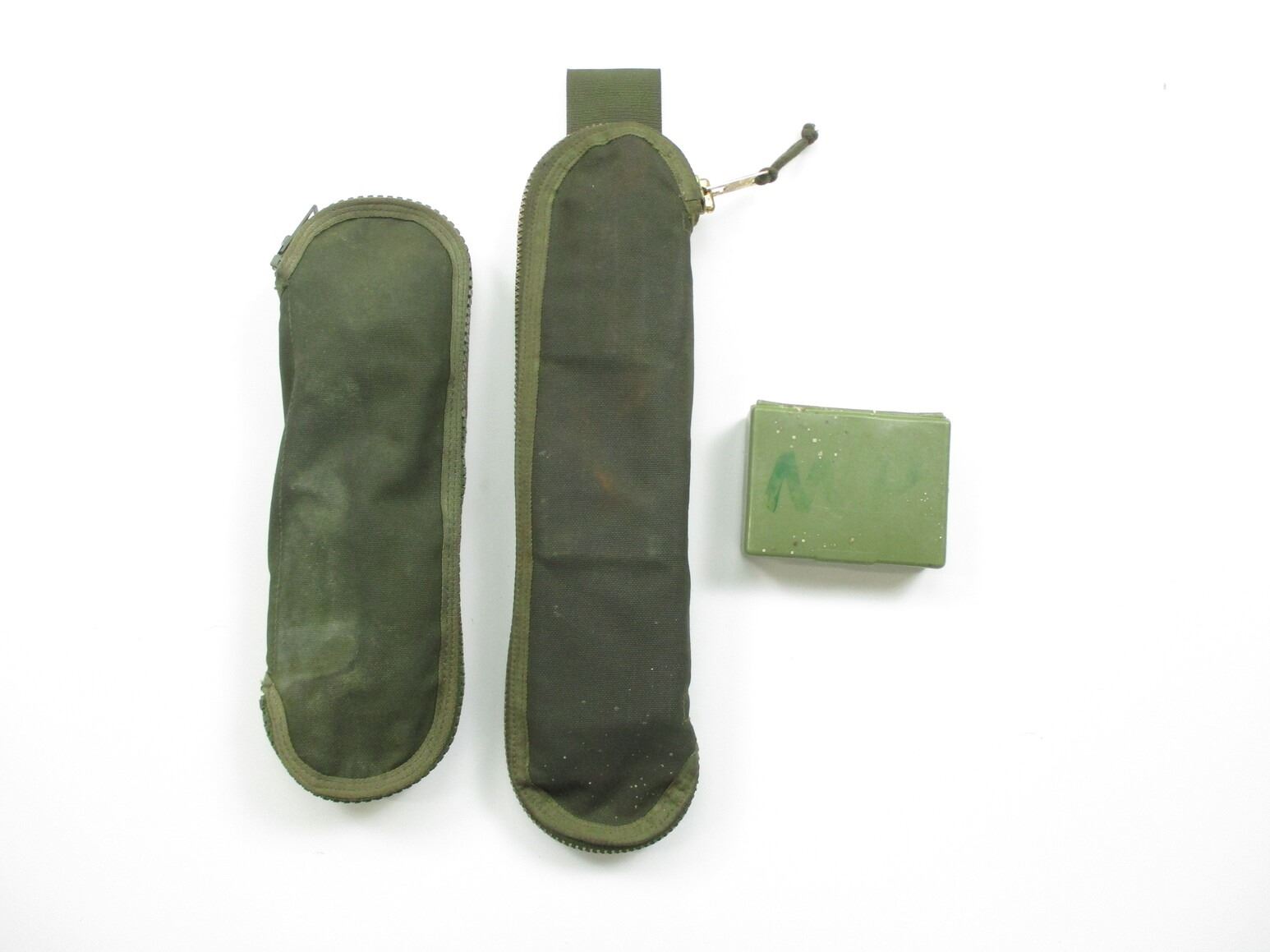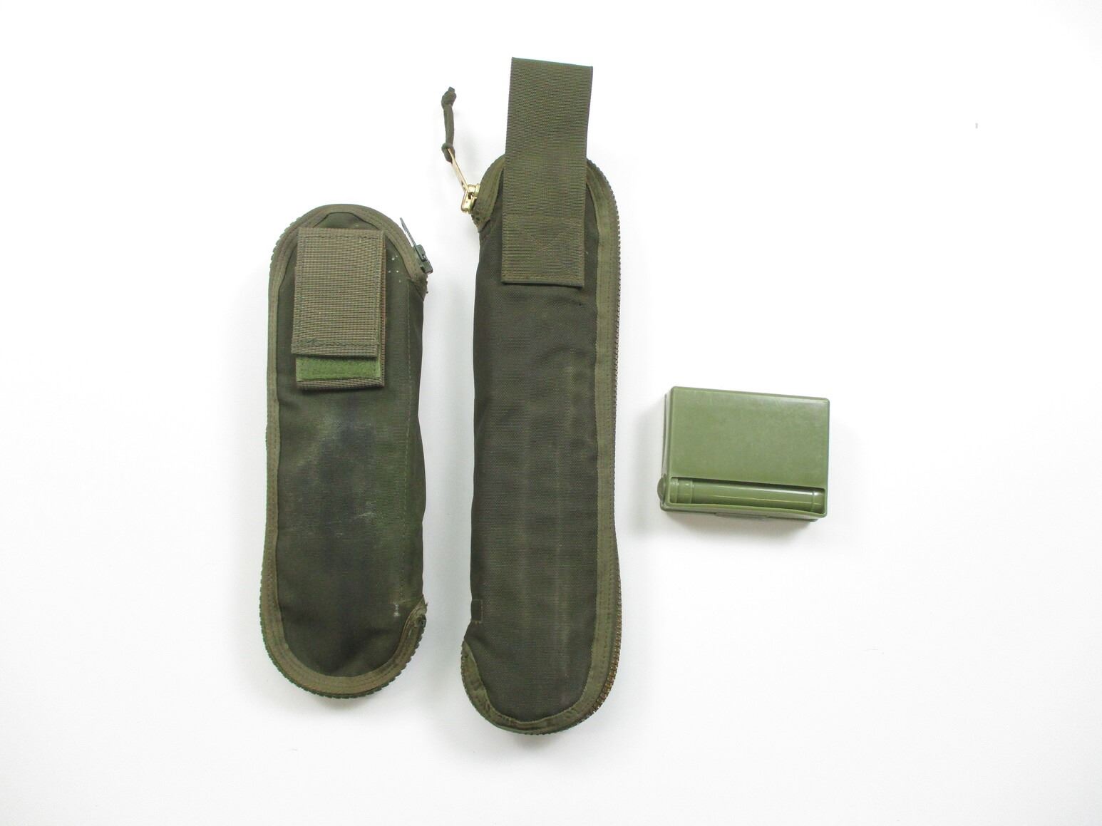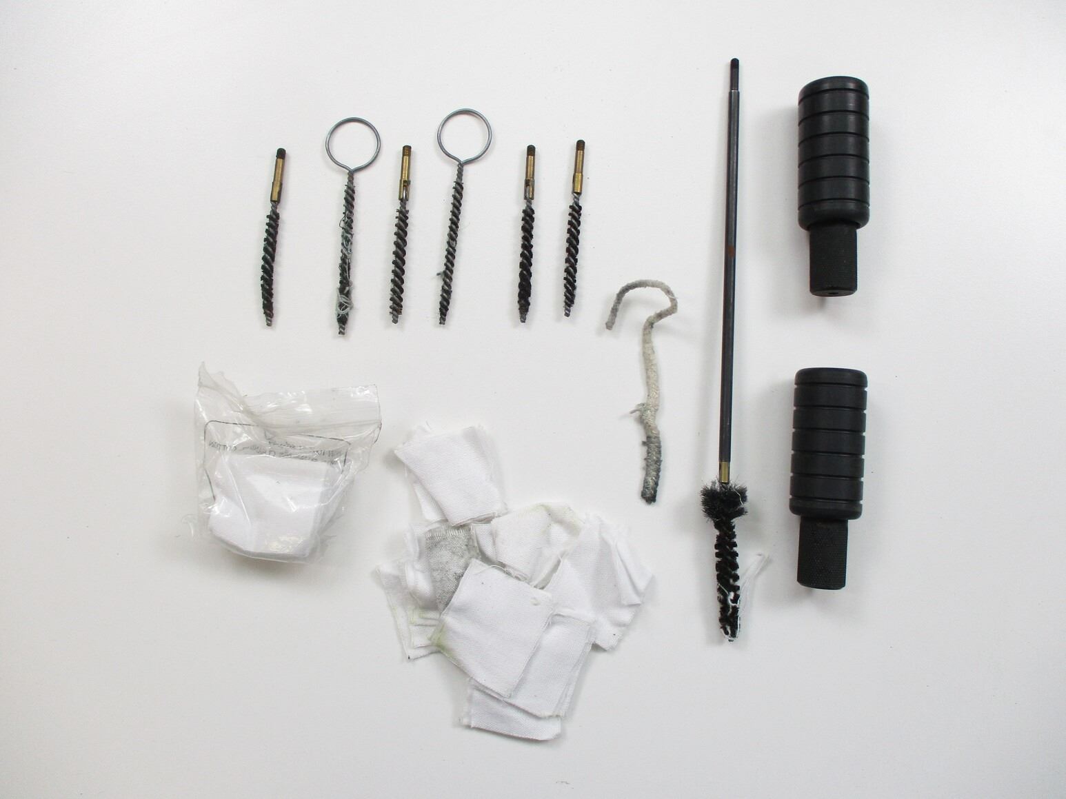 ASSORTED MILITARY CLEANING KIT LOT, LOT INCLUDES; (1) FN C1/C2 CLEANING KIT, GREEN CANVAS POUCH WITH RODS, BRUSHES, JAG, OILER, COMBO TOOL, ETC., NO VISIBLE MARKINGS, (1 CLEANING KIT, GREEN CANVAS, NO VISIBLE MARKINGS, THIS KIT IS NOT COMPLETE & (1) CLEANING KIT, GREEN PLASTIC WITH PULL-THRU & BRUSHES. SEE PHOTOS.