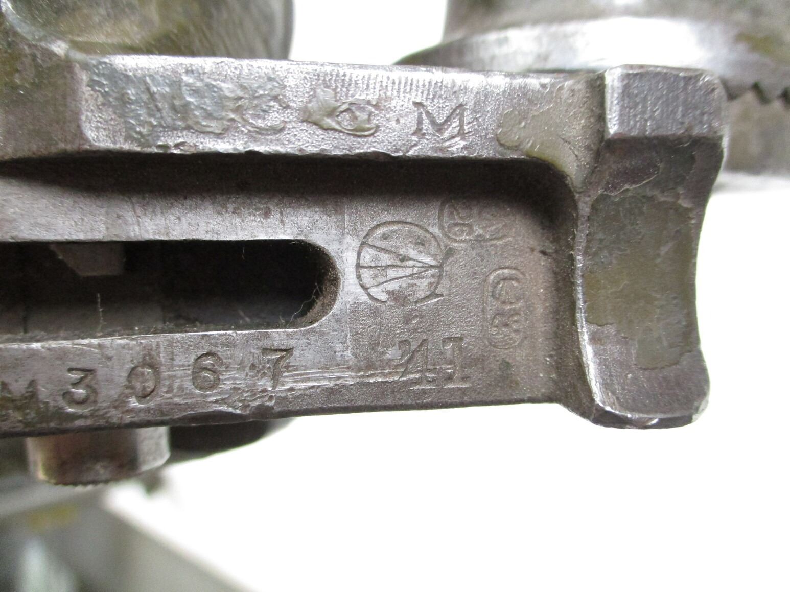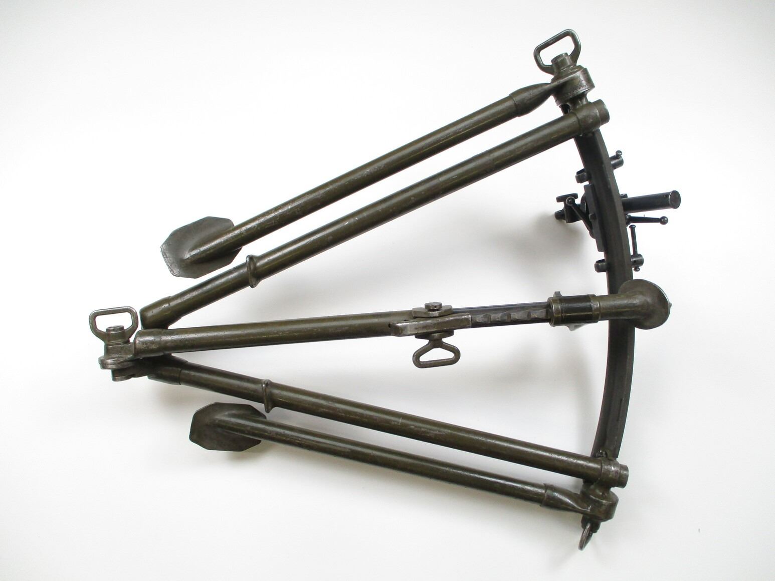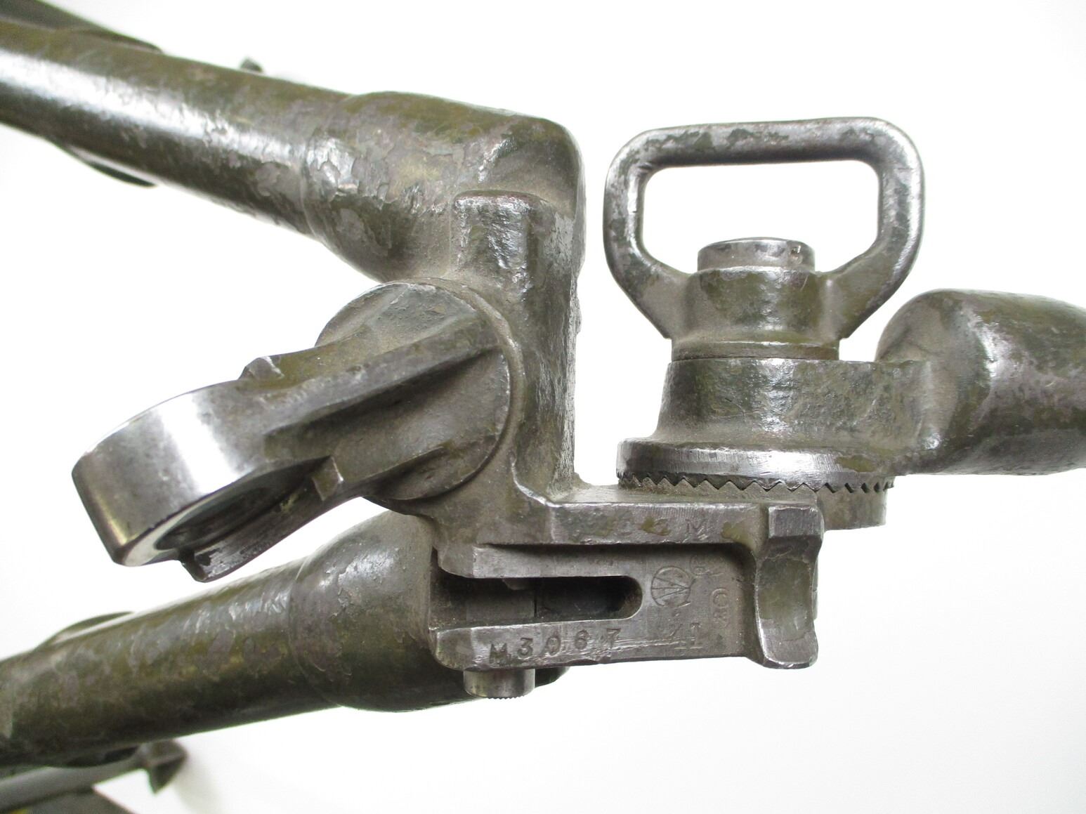 WWII CANADIAN BREN MK1 LMG TRIPOD, (1) COMPLETE TRIPOD, NO ANTI-AIRCRAFT LEGS, GREEN PAINT, MARKED: "CCM", " '41", "M3067", PROOF MARKS & C-BROAD ARROWS,