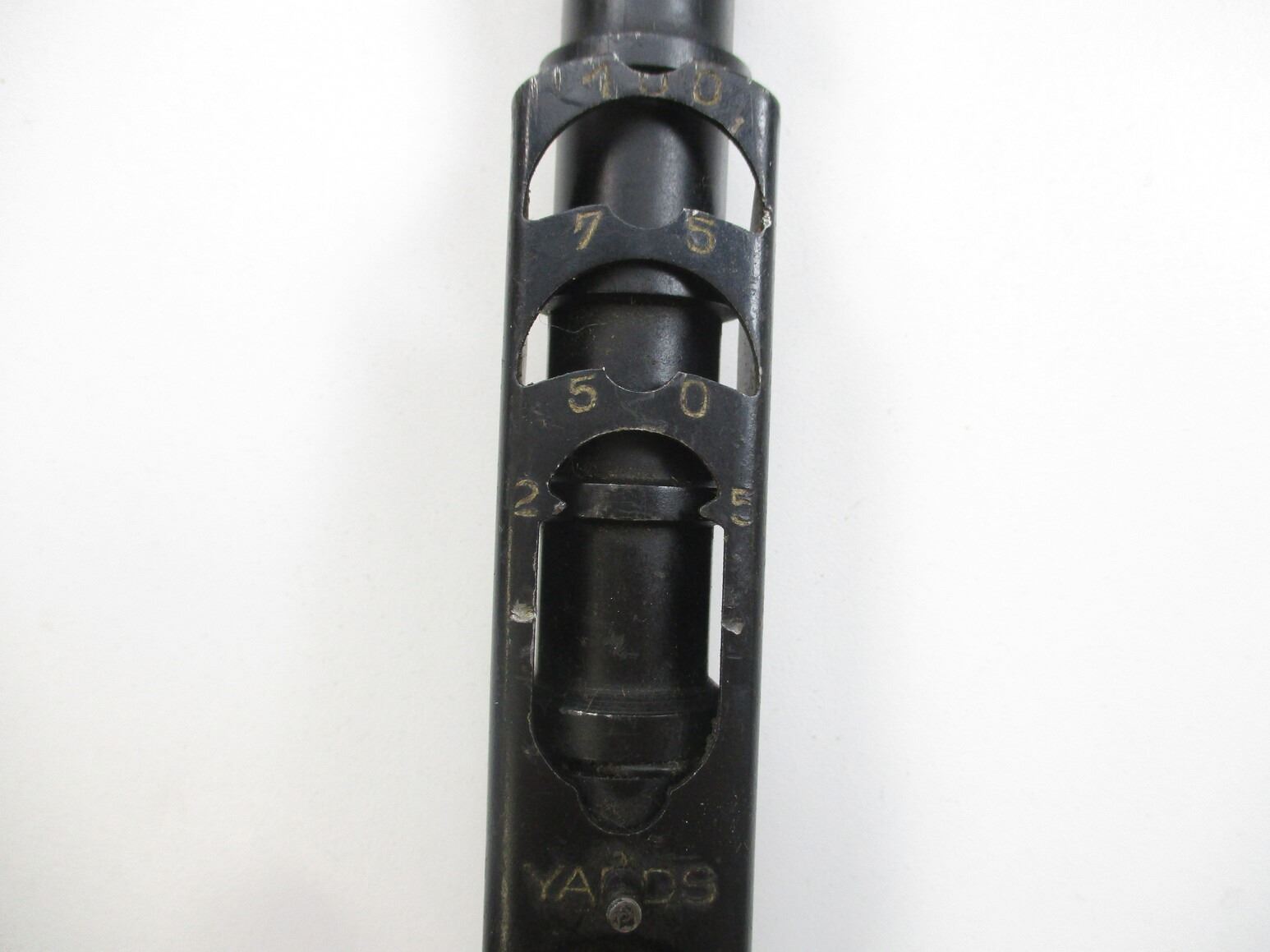LEE ENFIELD NO.4 MK I GRENADE LAUNCHER, (1) GRENADE LAUNCHER, BLACK PAINTED FINISH, MARKED: "MA" IN A CIRCLE, FLIP-UP SIGHT MARKED: "25, 50, 75, 100 YRDS". SEE PHOTOS.