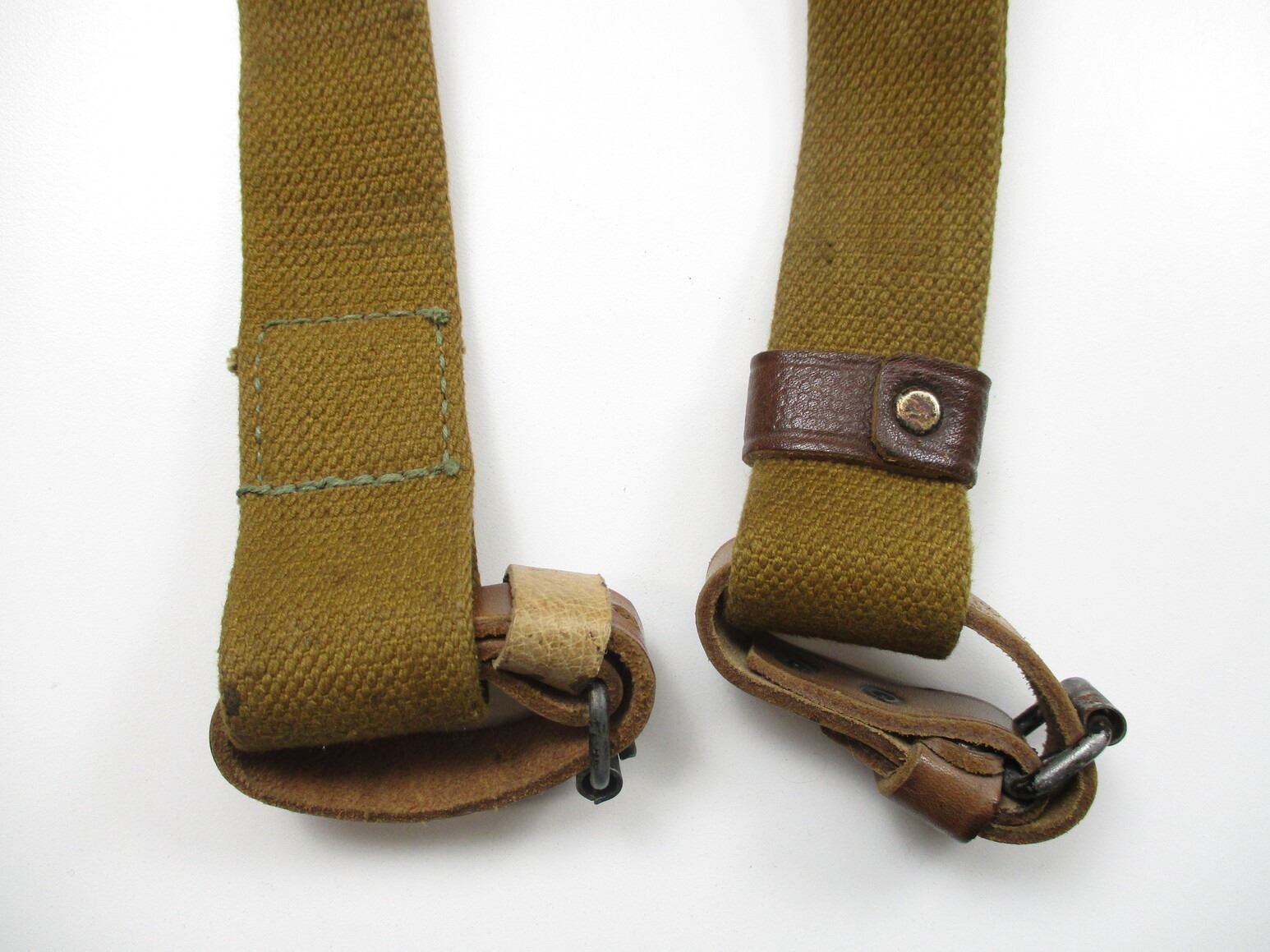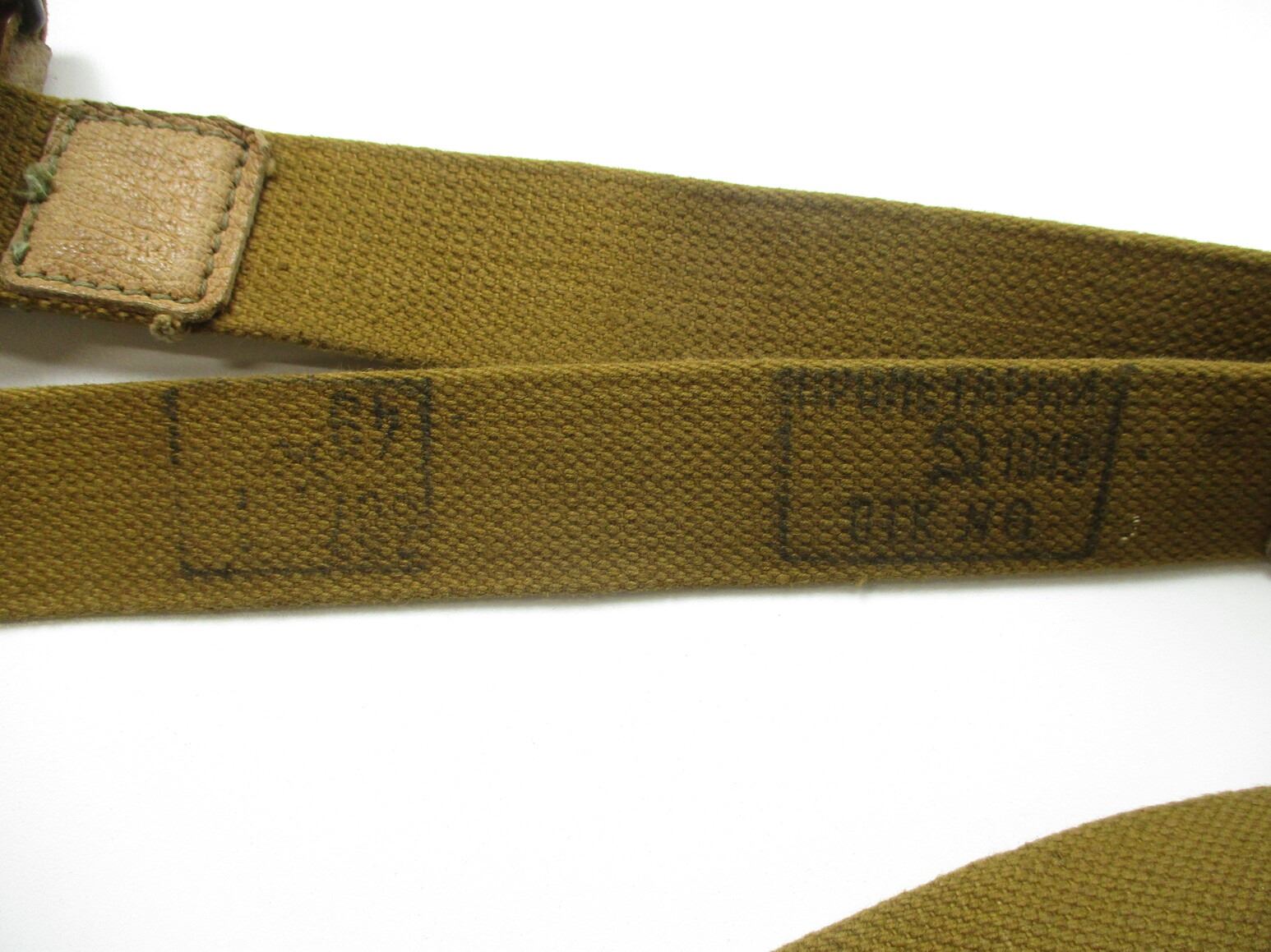 WWII / POST-WAR RUSSIAN MOSIN-NAGANT ACCESSORIES LOT, LOT INCLUDES; (1) CANVAS SLING WITH LEATHER COLLARS, MARKED: "1949", OAL APPROX. 48", ADJUSTABLE, (1) DOUBLE AMMO POUCH, VARIOUS MARKINGS, (2) JAGS, (1) FIRING PIN PROTRUSION TOOL WITH FAINT MARKINGS, (2) OILERS, CLEANING CAP HANDLES, VARIOUS MUZZLE COVERS, ETC. SEE PHOTOS.