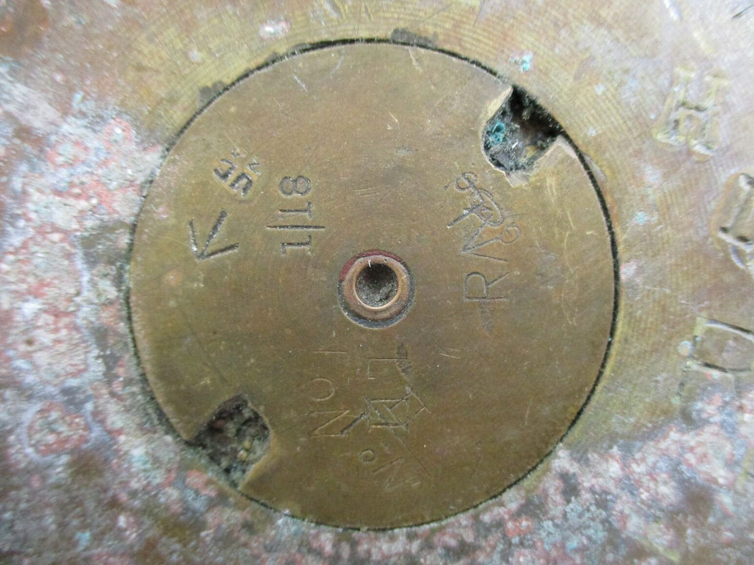WWI BRITISH MILITARY 13-PDR SHELL CASING, (1) BRASS CASE, WITH FIRED PRIMER, BASE MARKED: "13 PR 90 WI", "I", "I77", "R.L. (ROYAL LABORATORIES, WOOLWICH ARSENAL)", "1917", BROAD ARROWS & OTHER MARKINGS, APPROX. 4" DIA. & OAL APPROX. 11.5". SEE PHOTOS., THESE CAN ONLY BE SHIPPED BY CORPORATE UPS COVERED AREAS. PLEASE GO TO LOT 0 IN THE AMMUNITION SESSION, TO SEE IF YOUR POSTAL CODE IS A VALID AREA. THESE CAN NOT BE SHIPPED TO THE USA, OR INTERNATIONALLY. NO REFUNDS WILL BE ISSUED, OR BIDS RETRACTED.