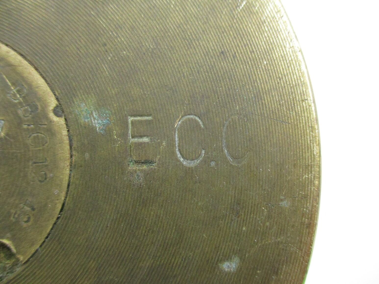 WWII BRITISH MILITARY 25-PDR SHELL CASING, (1) BRASS CASE WITH FIRED PRIMER, BASE MARKED: "25-PDR, II", "LOT 2237", "ECC", "32C", " 1942", "CF", BROAD ARROW & OTHER MARKINGS, PRIMER MARKED: "NO.1 II BB/C12 42" & "3448 CR/C 2/43 Q", APPROX. 4 1/8" DIA. & OAL APPROX. 11.5", POSSIBLY CUT-DOWN. SEE PHOTOS., THESE CAN ONLY BE SHIPPED BY CORPORATE UPS COVERED AREAS. PLEASE GO TO LOT 0 IN THE AMMUNITION SESSION, TO SEE IF YOUR POSTAL CODE IS A VALID AREA. THESE CAN NOT BE SHIPPED TO THE USA, OR INTERNATIONALLY. NO REFUNDS WILL BE ISSUED, OR BIDS RETRACTED.