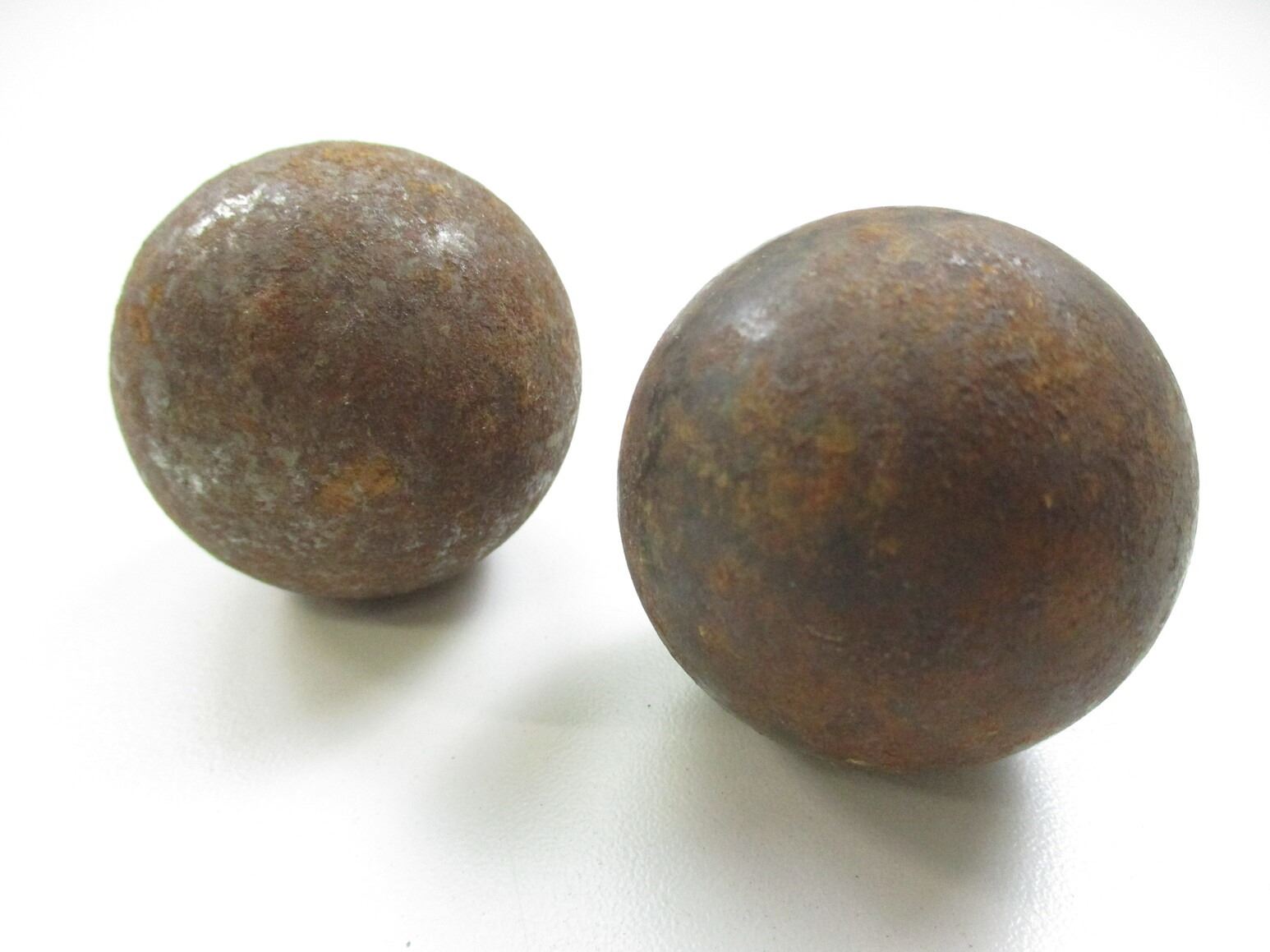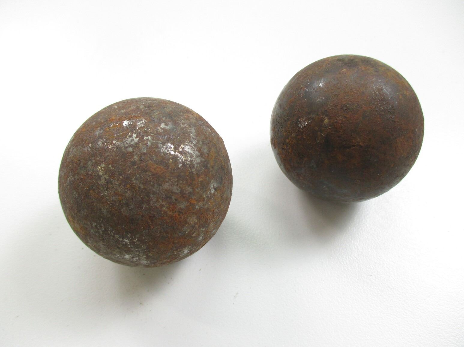 GRAPESHOT CANNON BALL LOT, LOT INCLUDES; (2) ROUNDS, RUSTY, NO VISIBLE MARKINGS, APPROX. 1.75" DIA. SEE PHOTOS., THESE CAN ONLY BE SHIPPED BY CORPORATE UPS COVERED AREAS. PLEASE GO TO LOT 0 IN THE AMMUNITION SESSION, TO SEE IF YOUR POSTAL CODE IS A VALID AREA. THESE CAN NOT BE SHIPPED TO THE USA, OR INTERNATIONALLY. NO REFUNDS WILL BE ISSUED, OR BIDS RETRACTED.