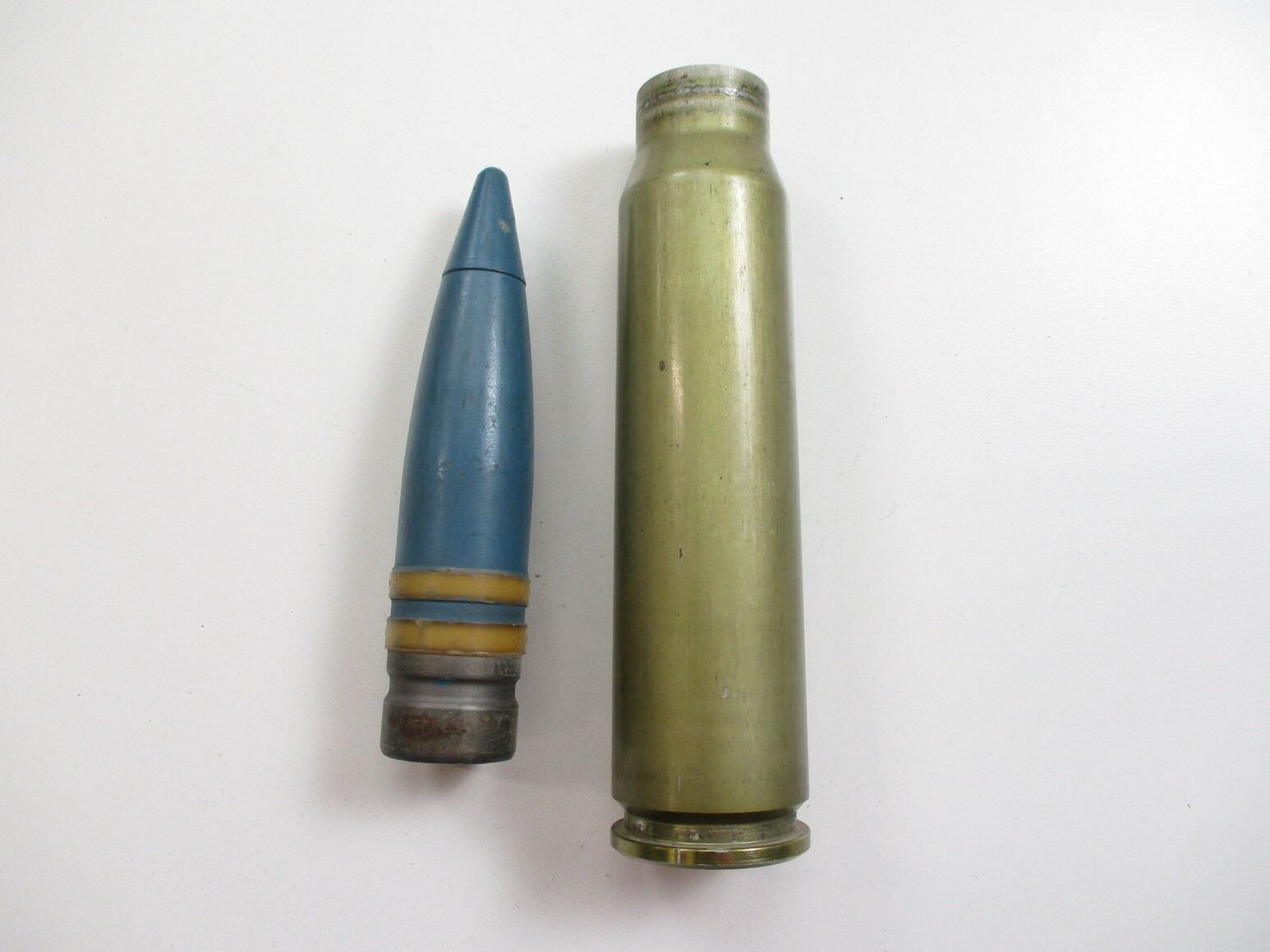30MM X 173 CANNON ROUND INERT, (1) STEEL CASE, BLUE PRACTICE PROJECTILE, POLYMER DRIVING BANDS, MARKED: "28107310 W, USE82F012?02", APPROX. 1.75" DIA. & OAL APPROX. 11.5". SEE PHOTOS., THESE CAN ONLY BE SHIPPED BY CORPORATE UPS COVERED AREAS. PLEASE GO TO LOT 0 IN THE AMMUNITION SESSION, TO SEE IF YOUR POSTAL CODE IS A VALID AREA. THESE CAN NOT BE SHIPPED TO THE USA, OR INTERNATIONALLY. NO REFUNDS WILL BE ISSUED, OR BIDS RETRACTED.