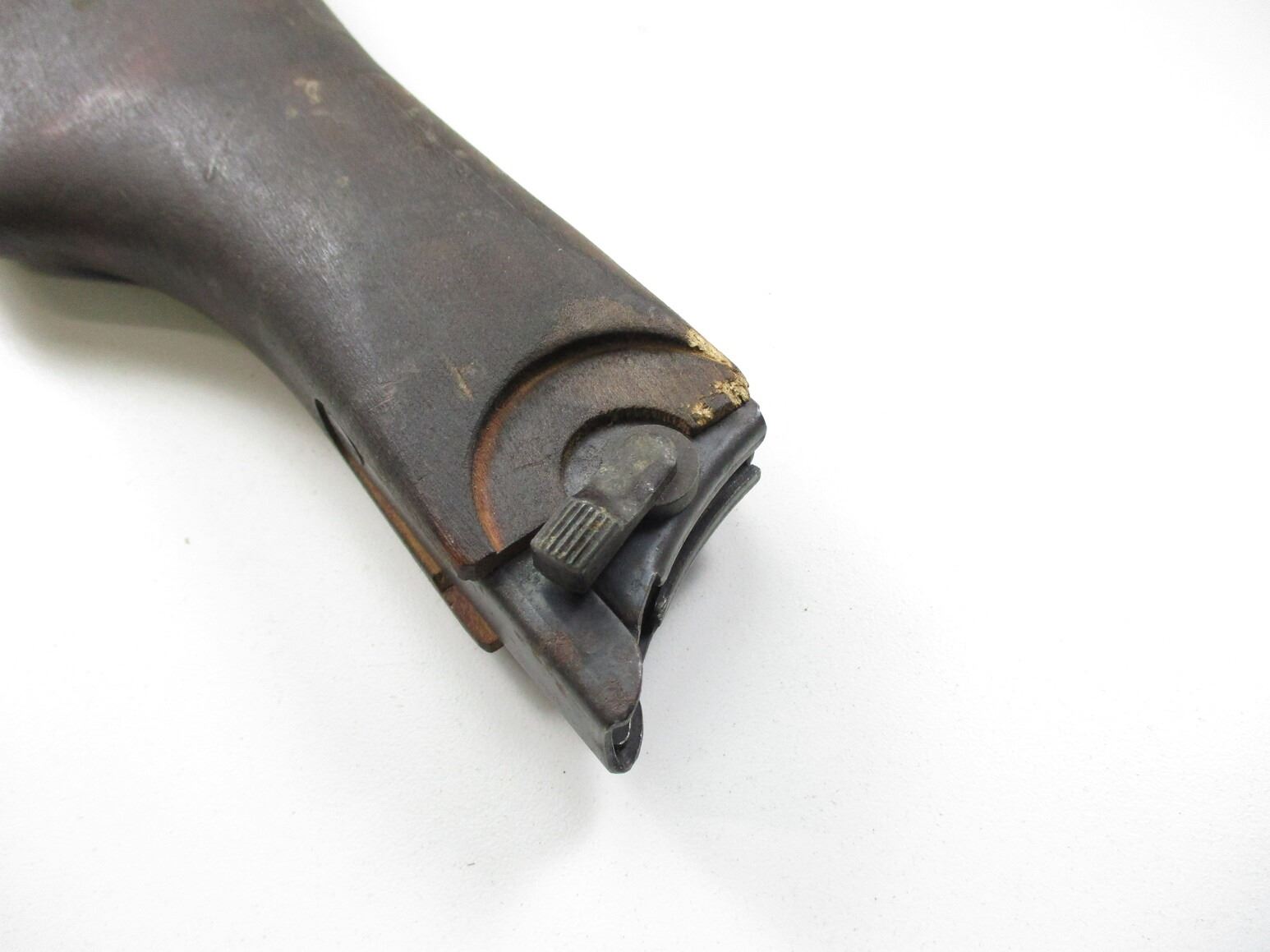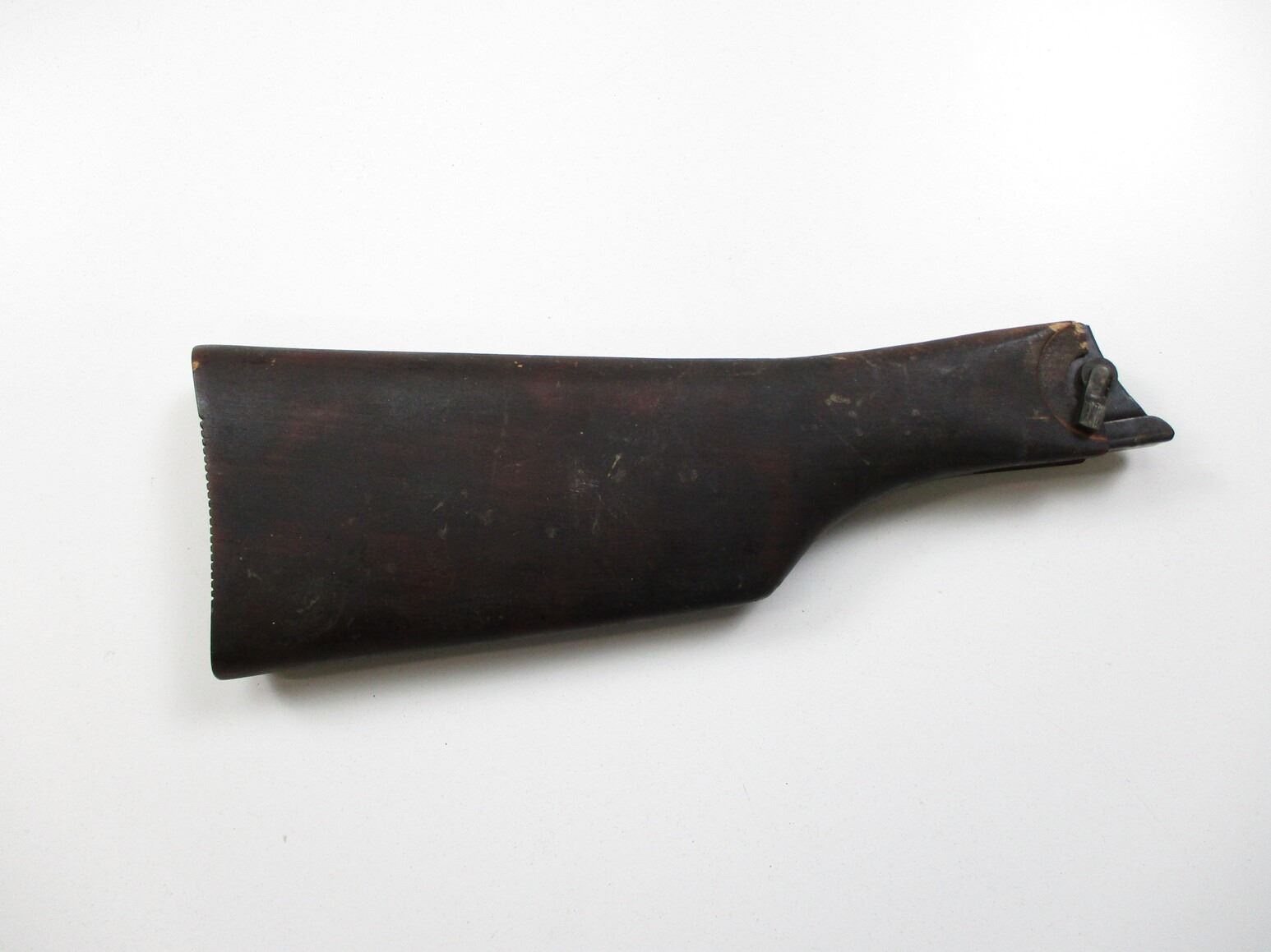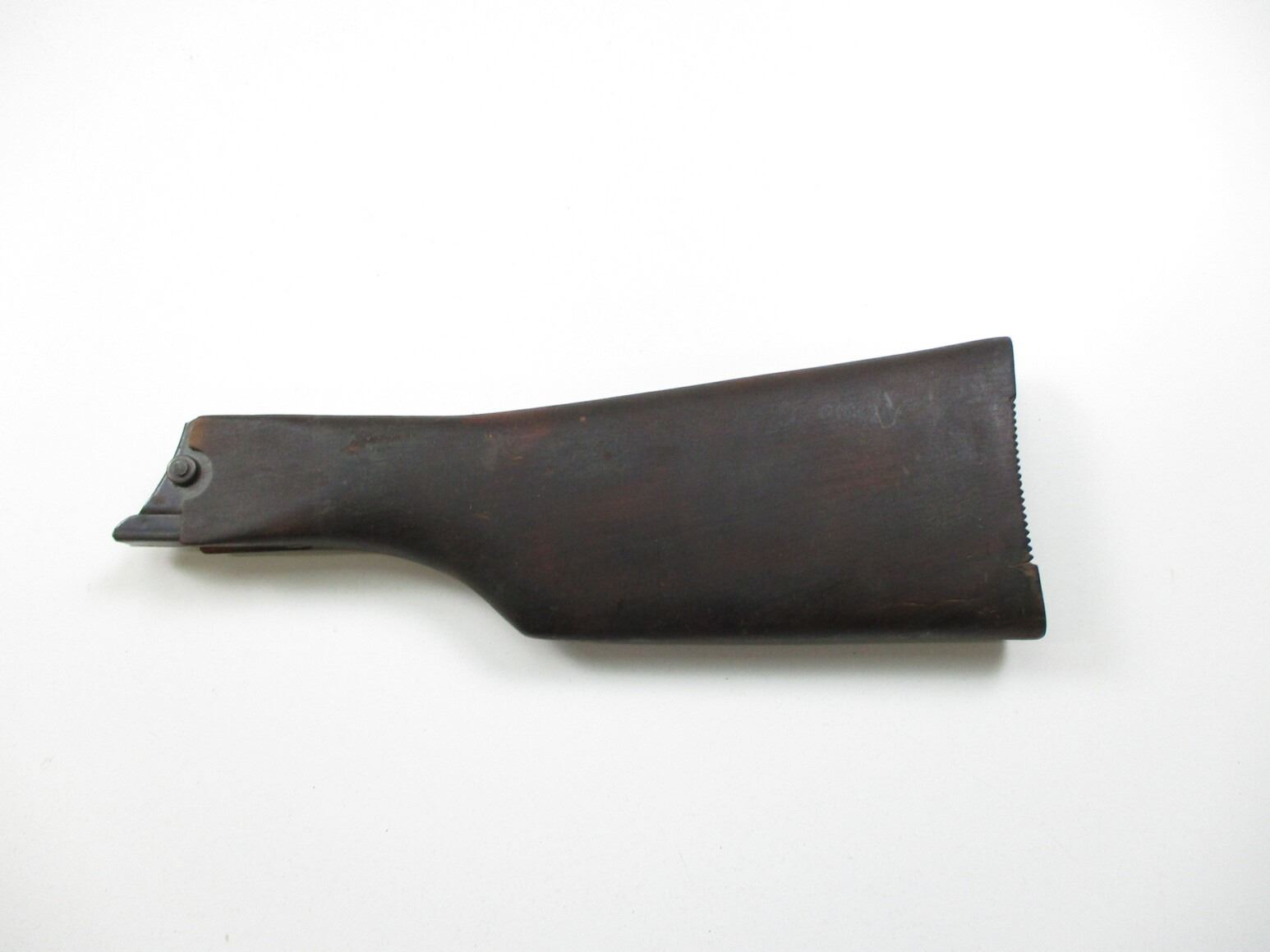 REPRODUCTION LUGER P08 SHOULDER STOCK, (1) WOOD BUTT WITH GROOVES & STEEL FITTINGS, NO VISIBLE MARKINGS. SEE PHOTOS.