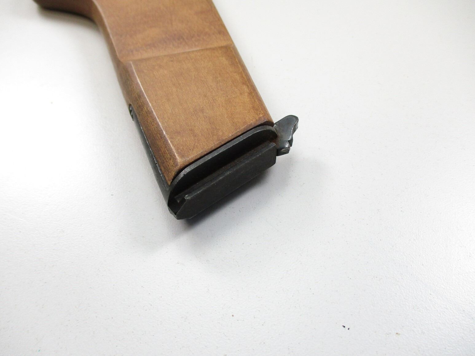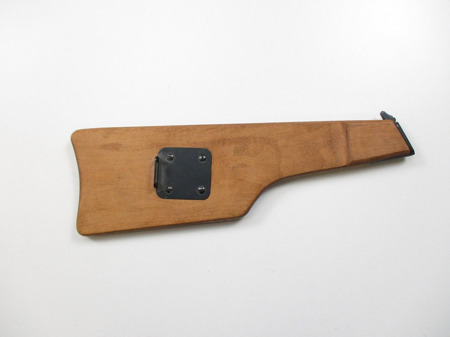 REPRODUCTION BROWNING HIGH POWER STOCK, (1) SMOOTH WOOD WITH STEEL FITTINGS & LOOP, NO VISIBLE MARKINGS. SEE PHOTOS.