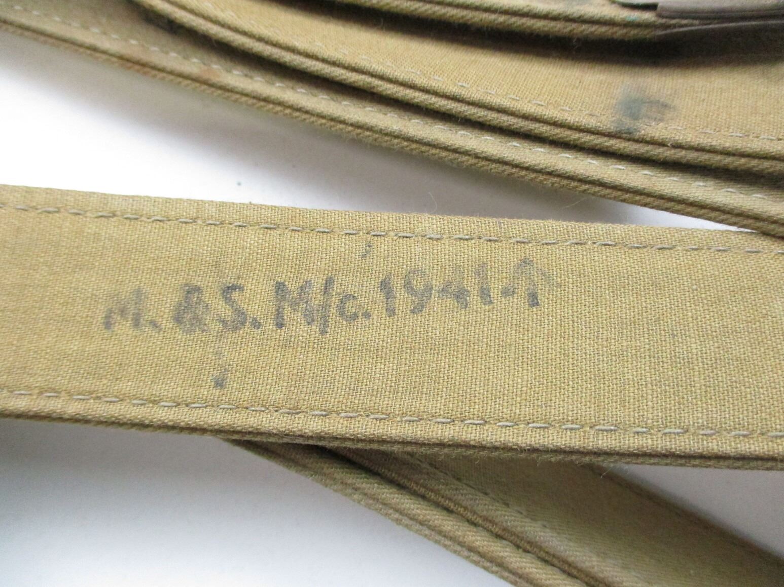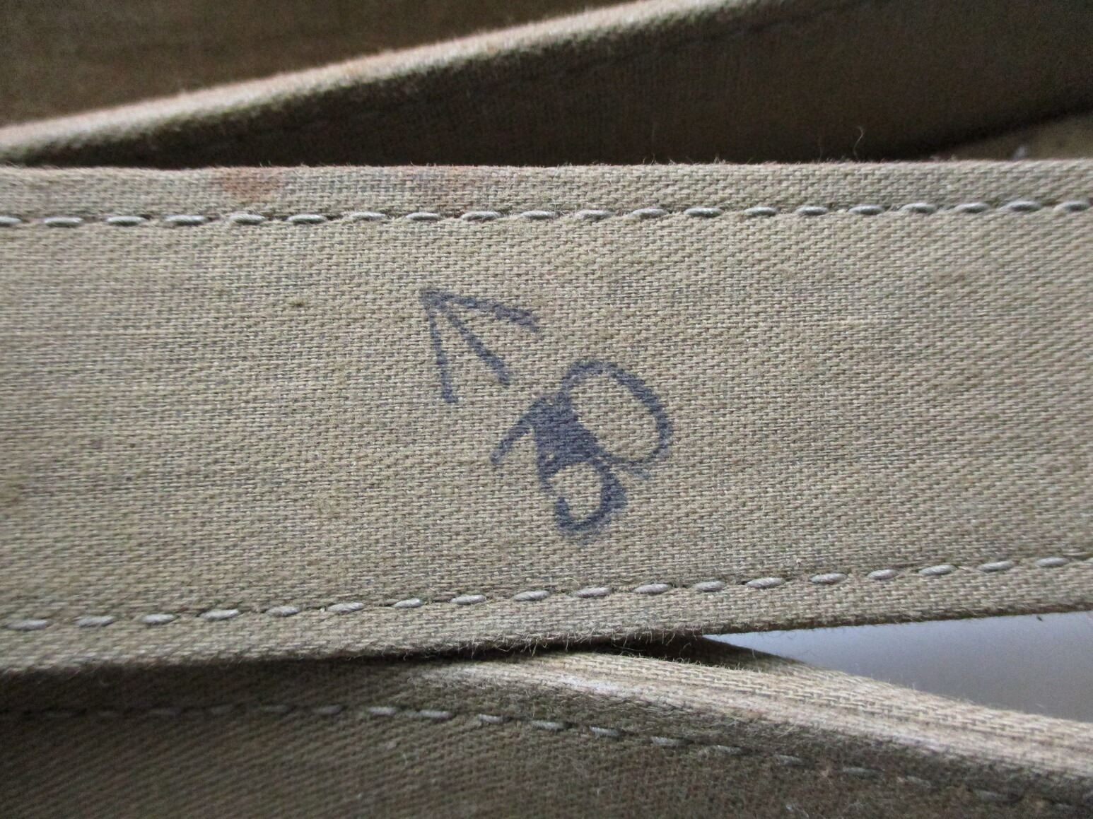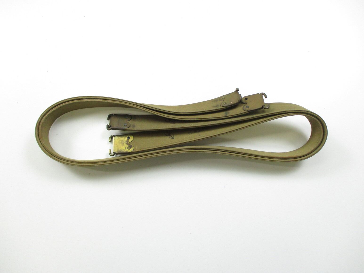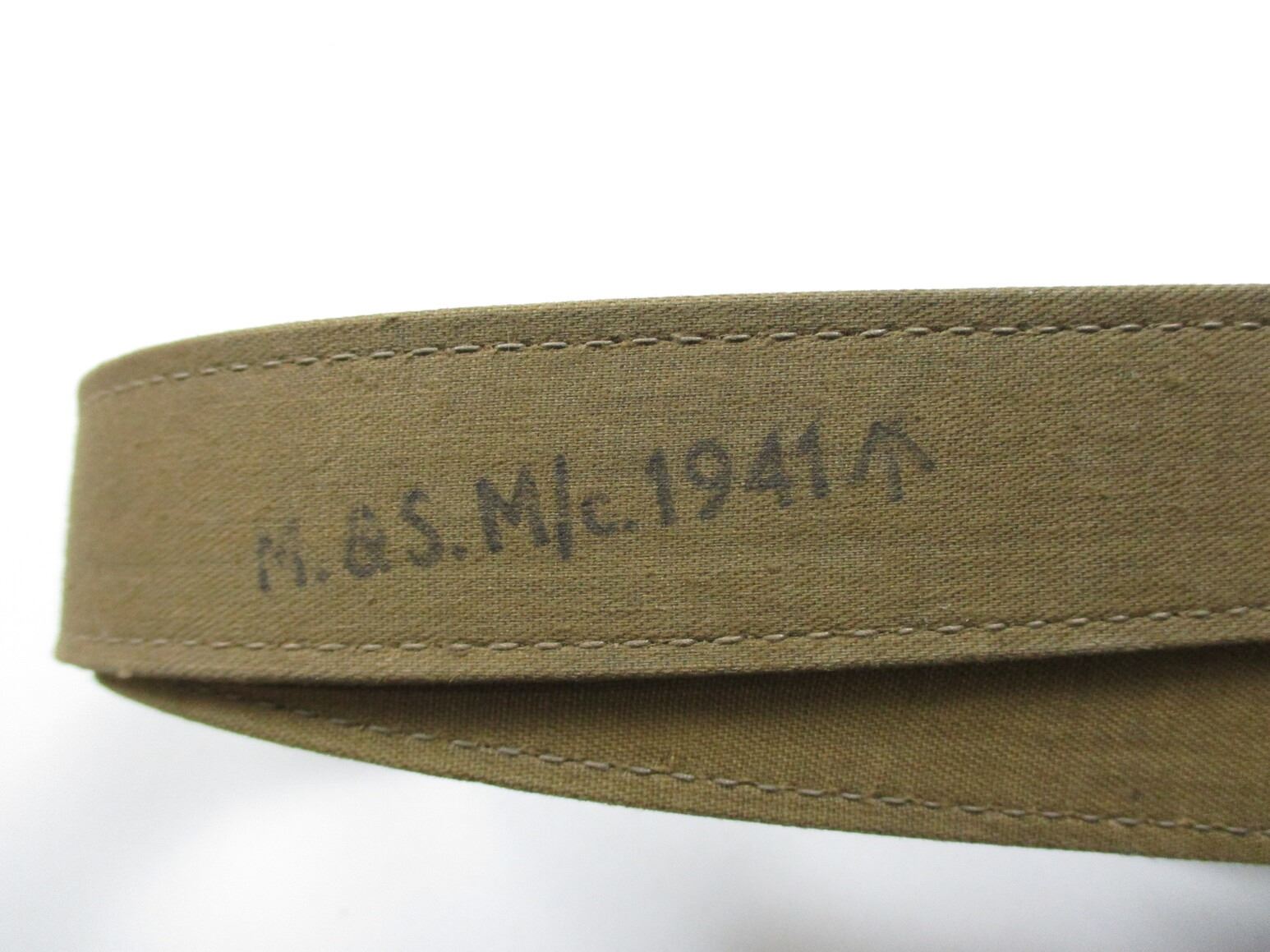 RARE WWII BRITISH HOME GUARD SLING, (1) FITS VARIOUS RIFLES, RUBBERIZED CANVAS WITH BRASS ENDS, MATERIAL IS STIFF FROM AGE, SCARCE TO FIND, MARKED: "M.&S. M/C 1941", "30" & BROAD ARROW. SEE PHOTOS.