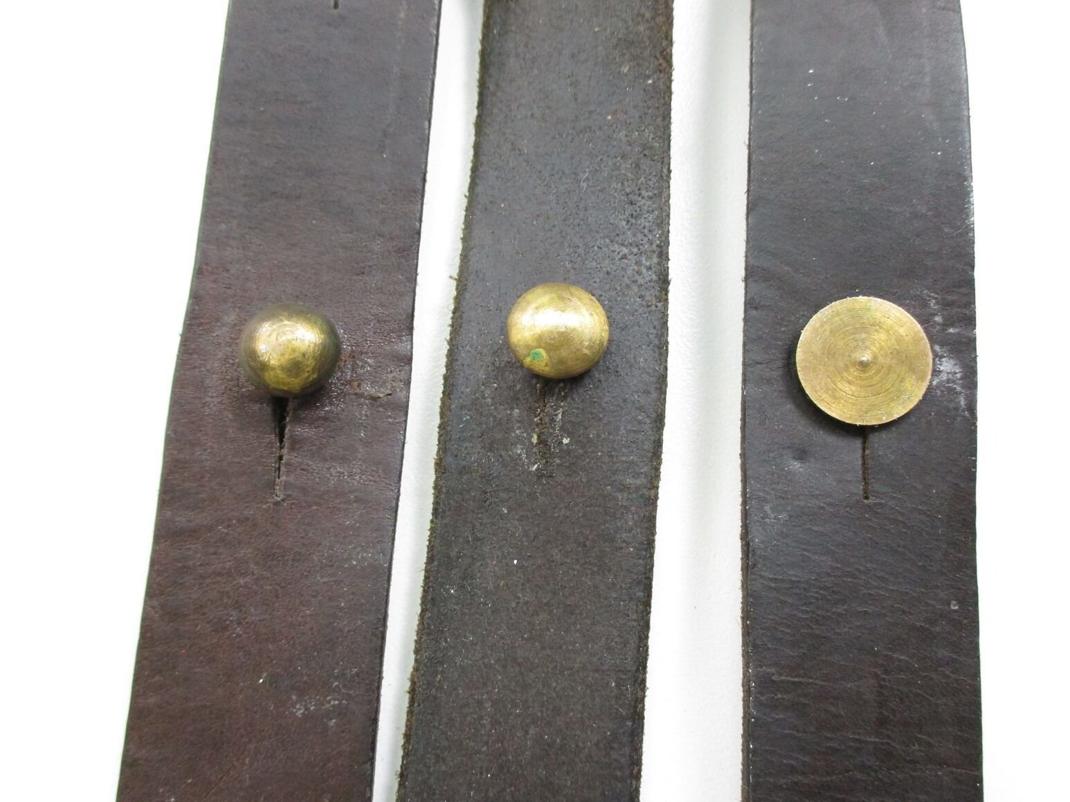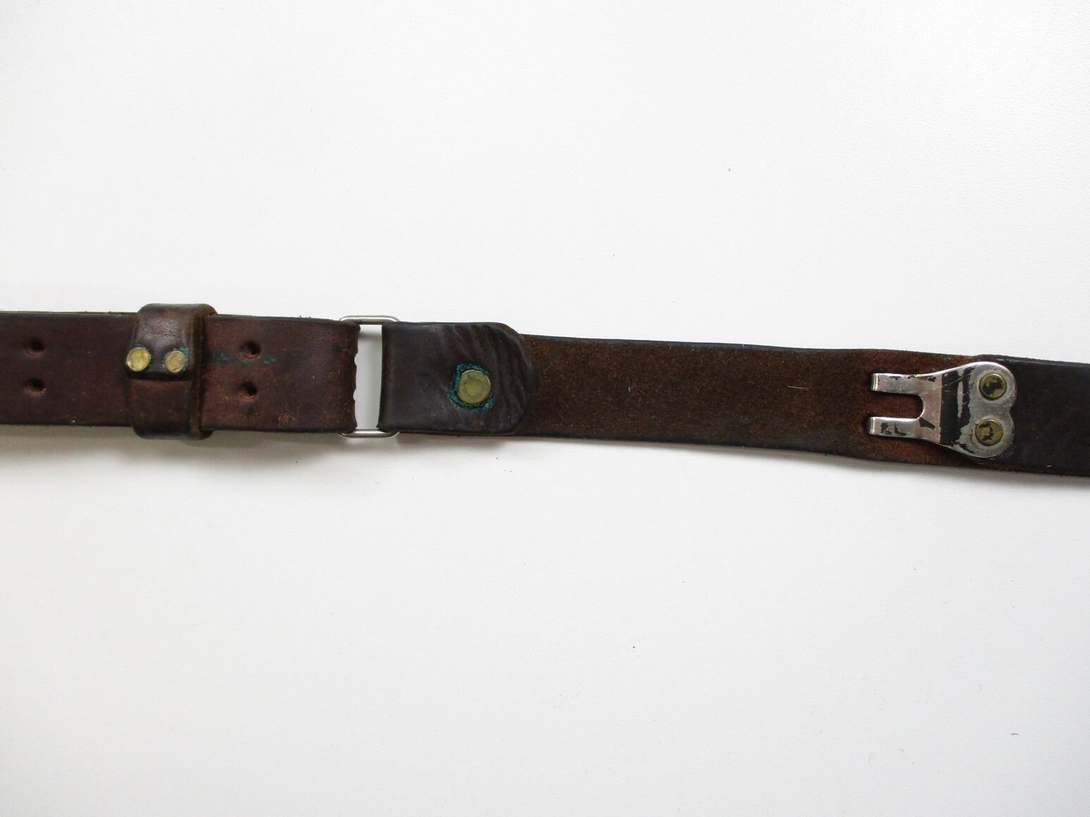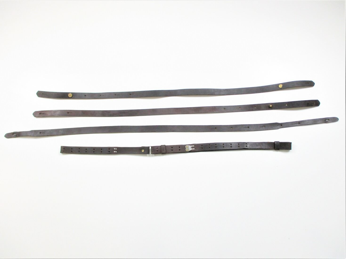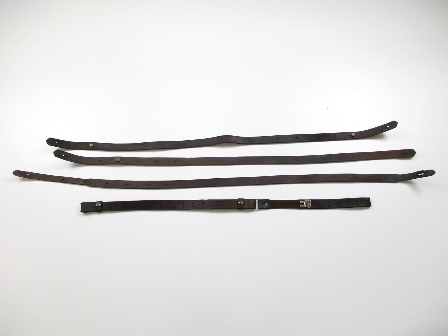 MILITARY TYPE SLING LOT, LOT INCLUDES; (4) BROWN LEATHER SLINGS, SOME WITH METAL FITTINGS, OAL APPROX. 49". SEE PHOTOS.