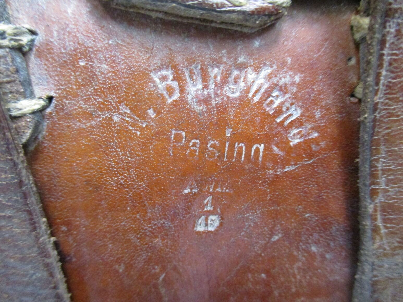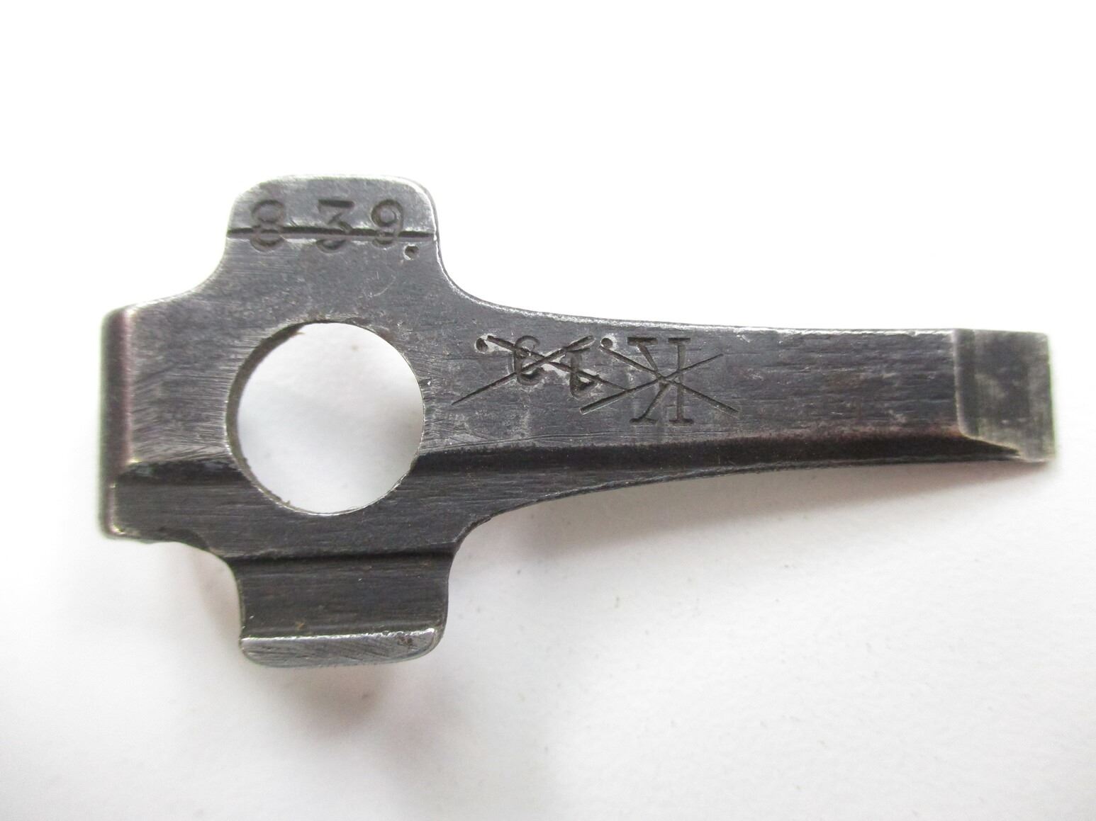 WWI GERMAN P08 LUGER HOLSTER, (1) BROWN LEATHER WITH MAGAZINE SLEEVE, LIFTING STRAP, BELT LOOPS & STEEL LOOP ON REAR, WITH TOOL, HOLSTER MARKED: "N.BURGHARD, PASING, AWM, 1, 15", TOOL MARKED: "K.19." & "839", BOTH CROSSED OUT. SEE PHOTOS.
