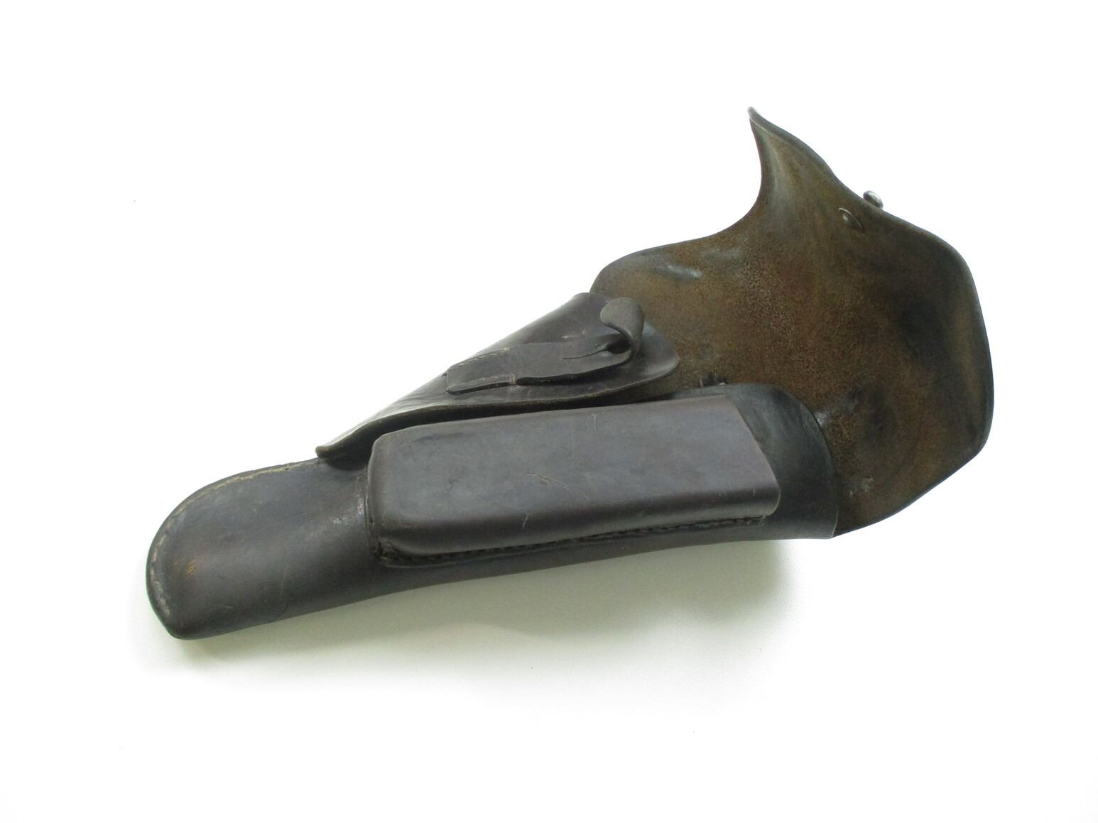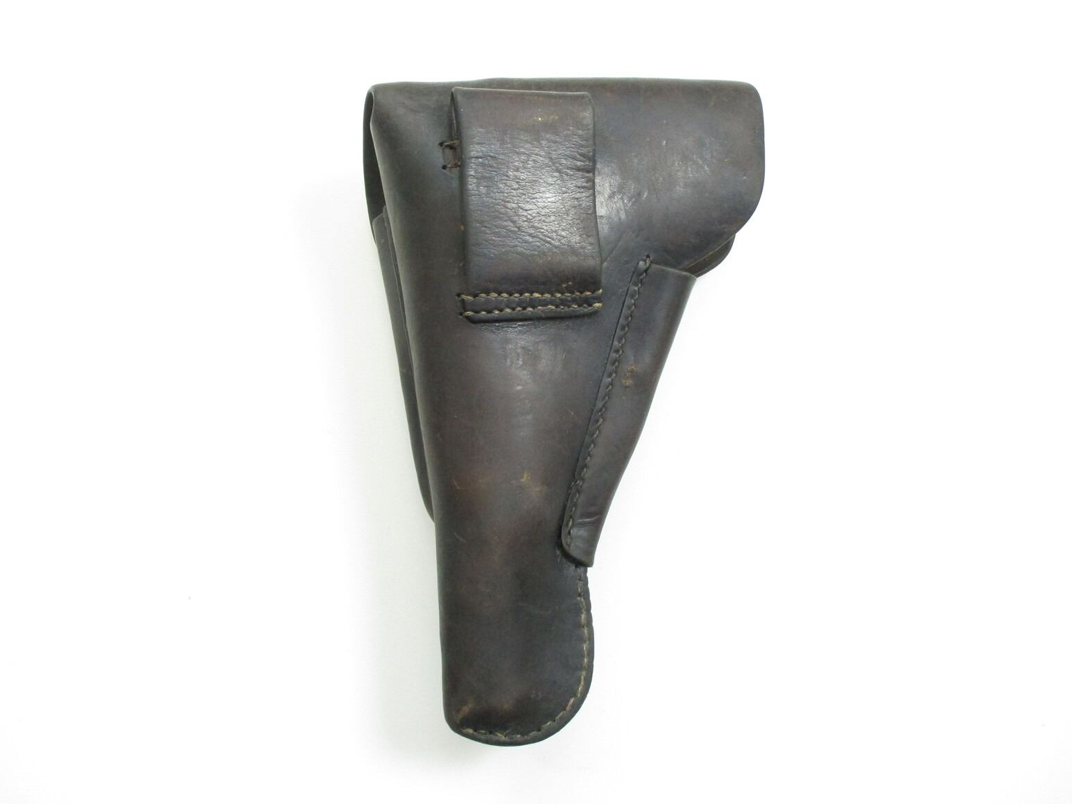 WWII GERMAN P38 HOLSTER, (1) FITS WALTHER P38 PISTOLS, BLACK LEATHER WITH MAGAZINE SLEEVE & BELT LOOPS, MARKED: "GN" OVER "43" & "WAA920".