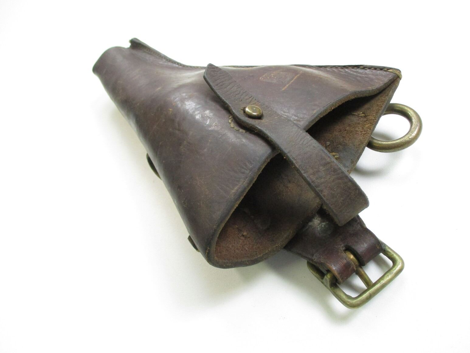 WWI BRITISH HOLSTER AND ROD LOT, (1) BROWN LEATHER HOLSTER WITH BELT LOOPS, FITS WEBLEY & COLT REVOLVERS, MARKED: "WEIGHTMAN BROTHERS, 1817", INCLUDES (1) BRASS CLEANING ROD, MARKED: "P.H" & BROAD ARROW. SEE PHOTOS.