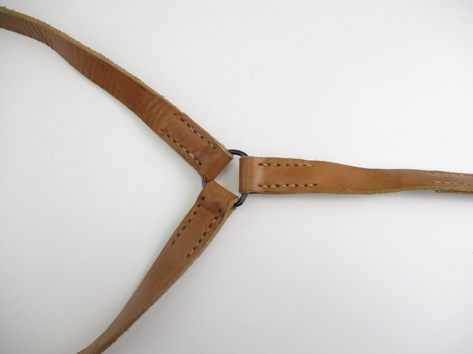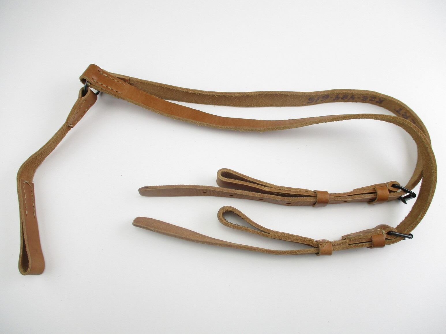 YUGOSLAVIAN MILITARY "Y" STRAP, (1) BROWN LEATHER, INSIDE INKED: "GILBERT R25-484-615", UNSURE OF AGE, OAL APPROX. 40". SEE PHOTOS.