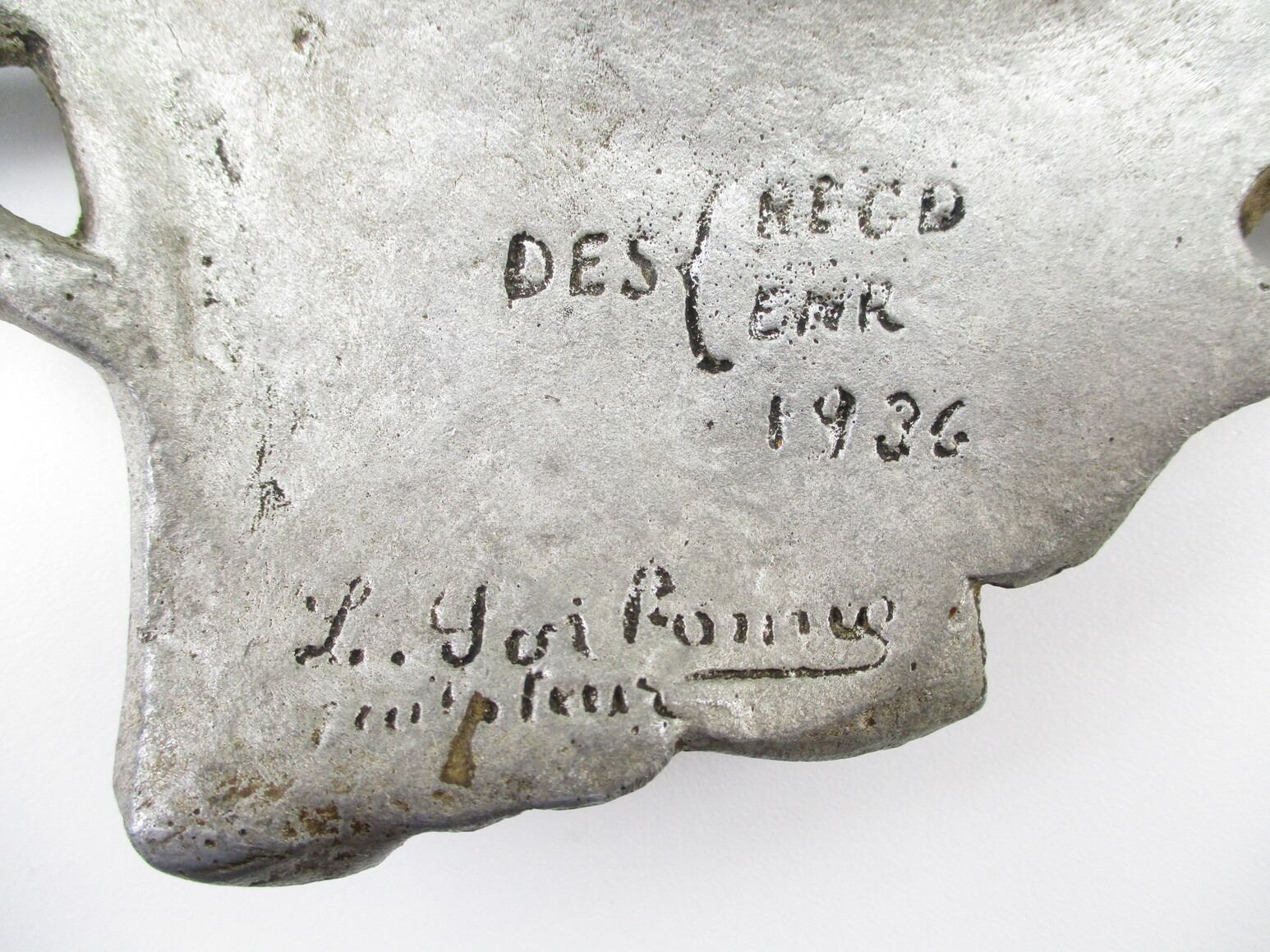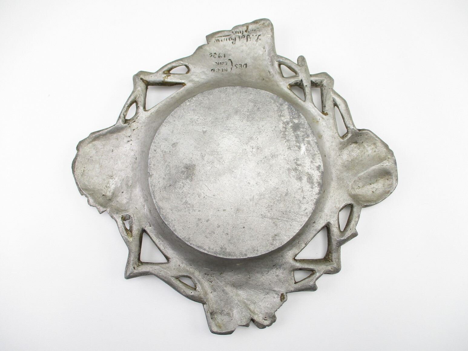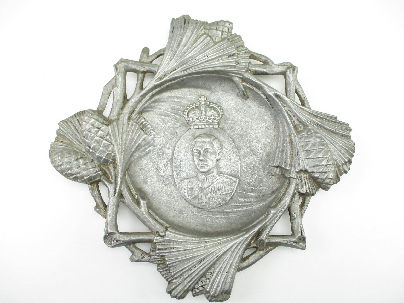 UNKNOWN MILITARY PLATE, (1) ALLOY PLATE, SERVING TRAY, POSSIBLY A PICTURE OF KING GEORGE VI IN THE MIDDLE, BACK-SIDE HAS UN-CLEAR MARKINGS & 1936, APPROX. 11.25" W X 11" H. SEE PHOTOS.