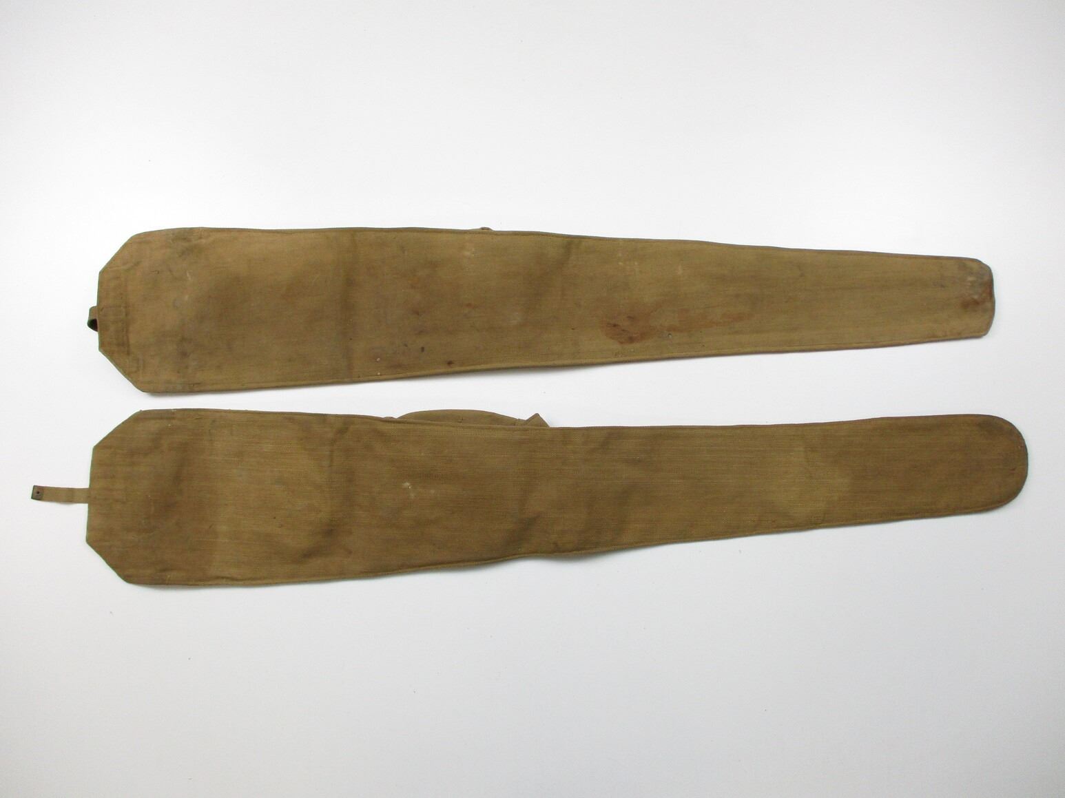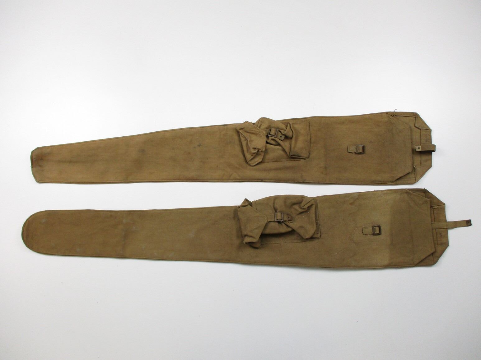 WWII BRITISH P37 RIFLE CASE LOT, FITS LEE ENFIELDS, INCLUDING; (1) MARKED: "J.&A.H. 1942" & (1) MARKED: "M.&S.LTD., 1943(?)", "81" & BROAD ARROW, OAL APPROX. 44". SEE PHOTOS.