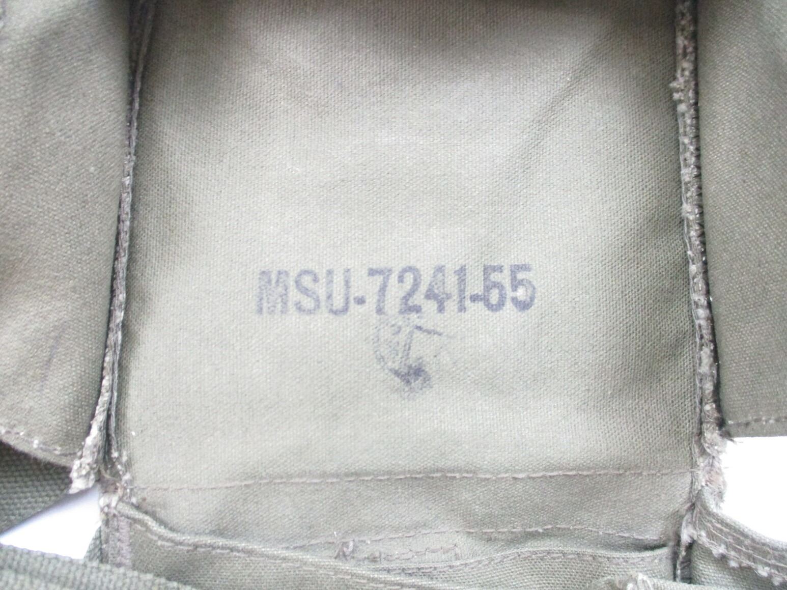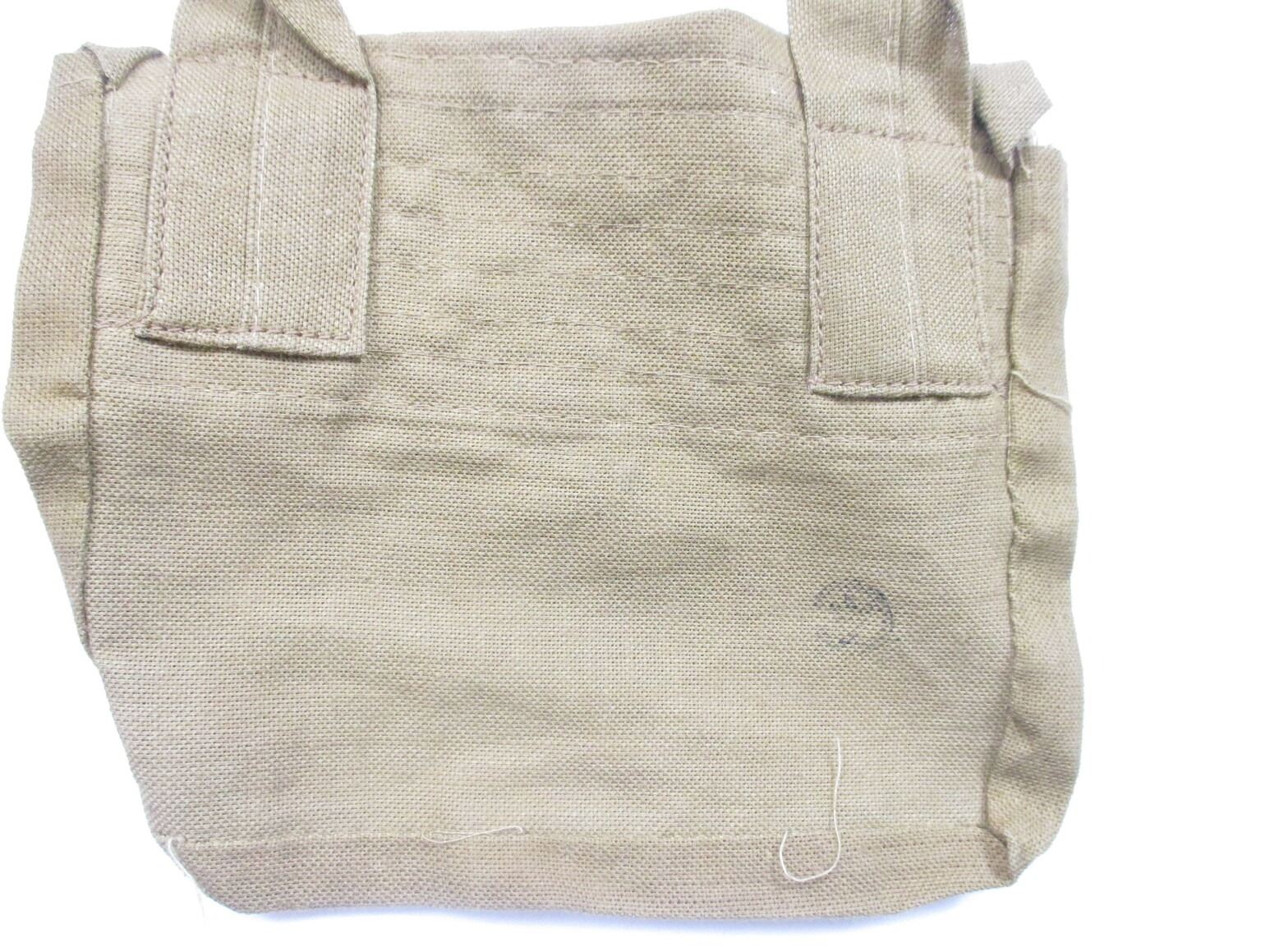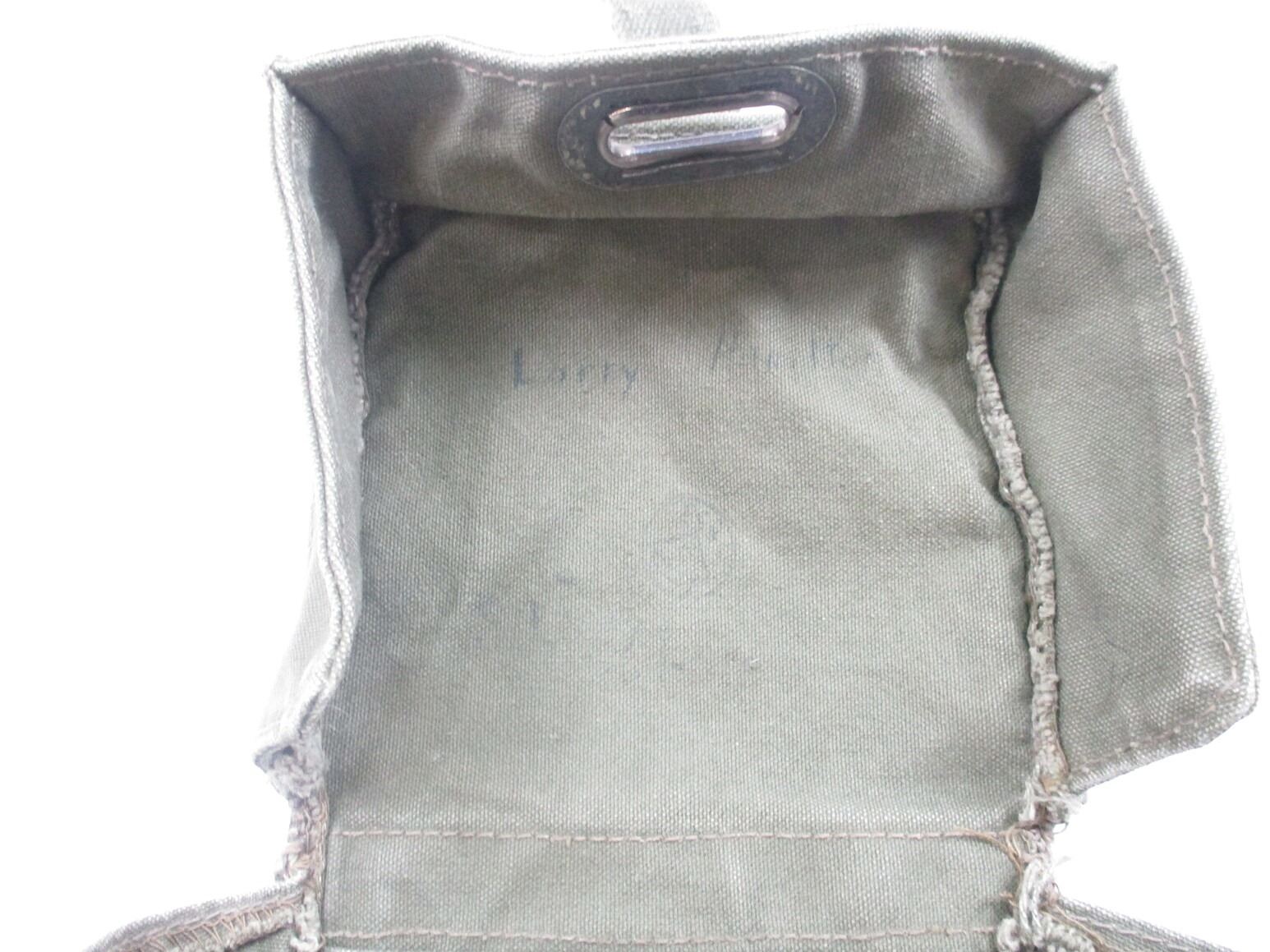 ASSORTED WWII / POSTWAR CANADIAN MILITARY WEBBING LOT, LOT INCLUDES; (1) CANVAS BOYES 55 CAL. BANDOLIER WITH SHOULDER STRAP, MARKED: "TAPATCO, JAN 1943, NO.55" & C-BROAD ARROW, (2) GREEN CANVAS GAS MASK BAGS WITH SHOULDER STRAP & BELT HOOKS, MARKED: "MSU-7241-55" & MAPLE LEAF PROOF & (1) GREEN FROG, NO VISIBLE MARKINGS. SEE PHOTOS.