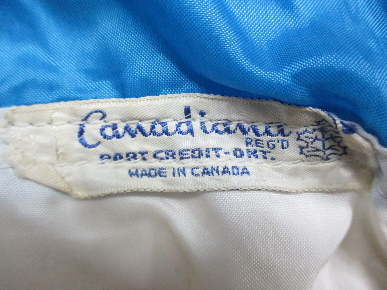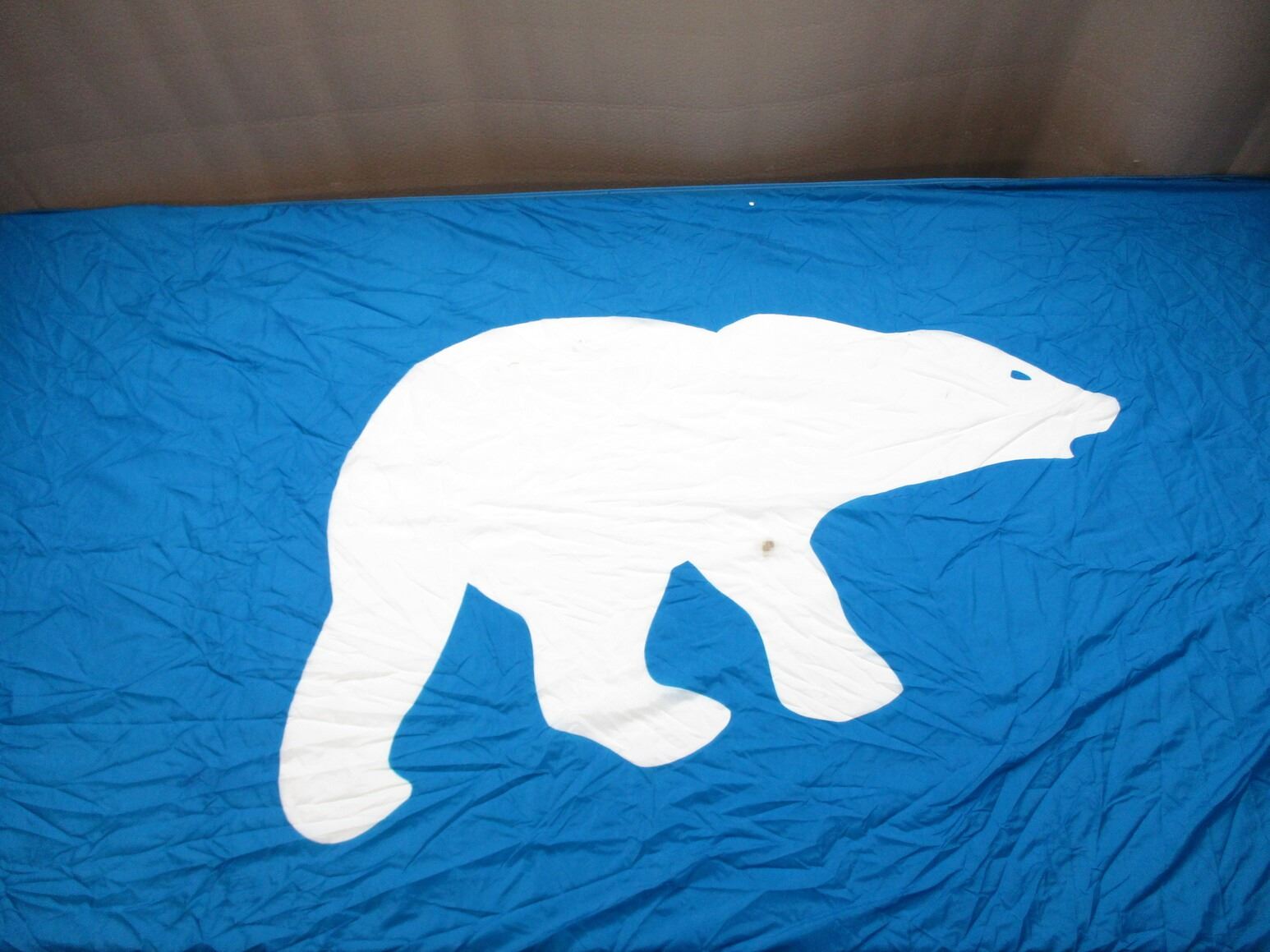 NORTHWEST TERRITORIES FLAG, (1) BLUE FLAG WITH WHITE POLAR BEAR, SHOWS WEAR, APPROX. 104" L X 50" H. SEE PHOTOS.
