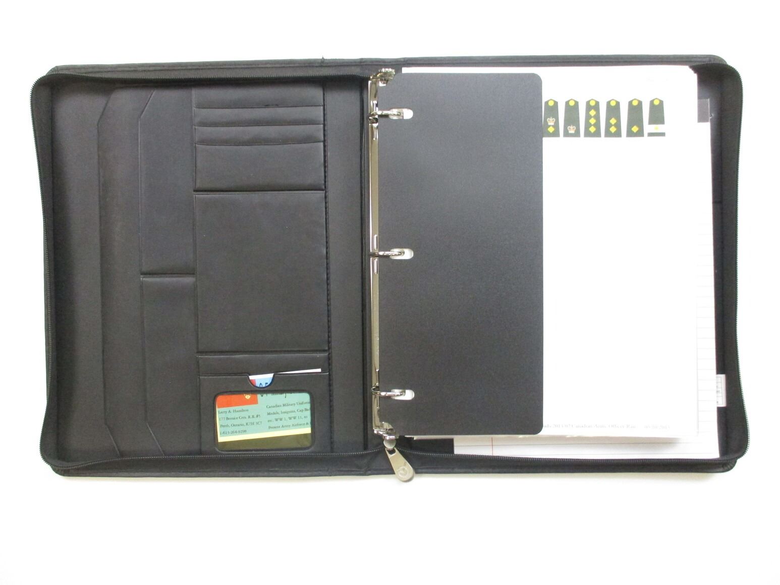 CANADIAN MILITARY INFORMATION LOT, LOT INCLUDES; (2) ZIPPERED BINDERS WITH INFORMATION ON CANADIAN MILITARY INSIGNIA & MILITARIA HISTORY, BINDERS APPROX. 13.5" X 10.5" X 2". SEE PHOTOS.
