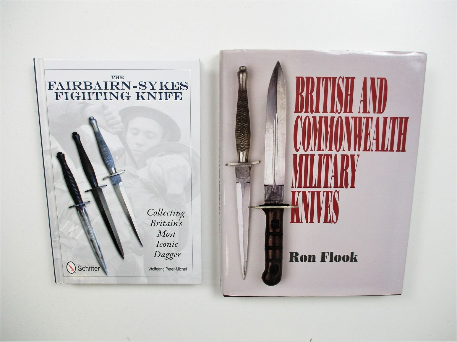 ASSORTED MILITARIA BOOK LOT, LOT INCLUDES; (1) "THE FAIRBAIRN-SYKES FIGHTING KNIFE" BOOK BY WOLFGANG PETER-MICHEL, HARD COVER, ISBN: 978-0-7643-3763-5 & (1) "BRITISH AND COMMONWEALTH MILITARY KNIVES" BOOK BY RON FLOOK, HARD COVER, ISBN: 1-57427-092-3. SEE PHOTOS.