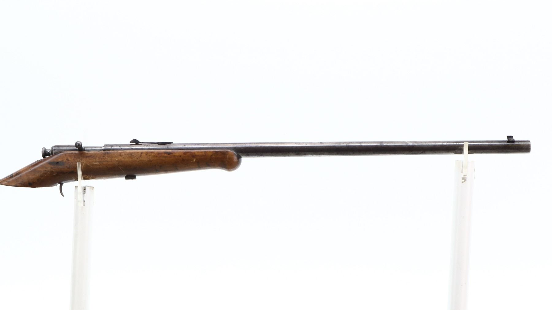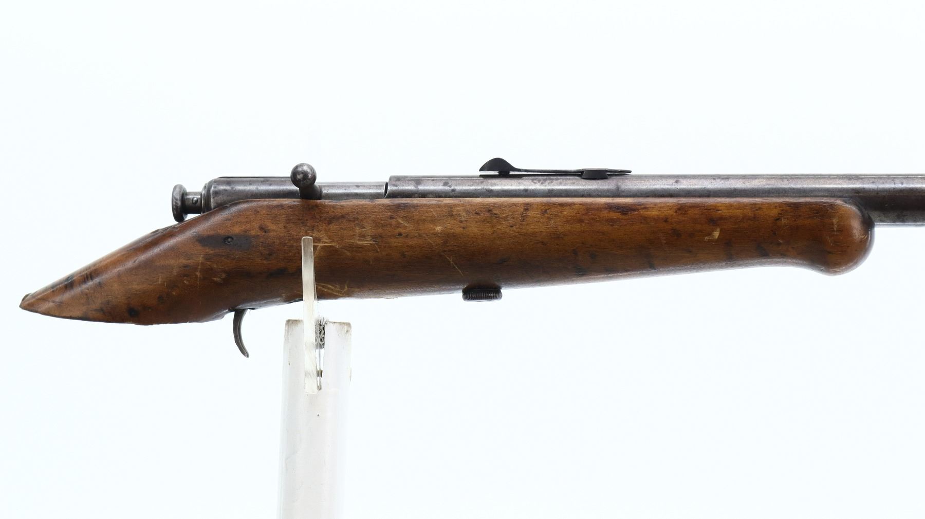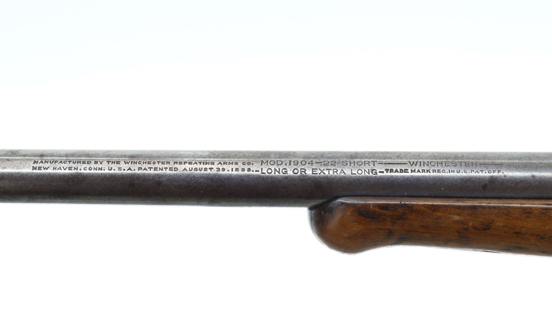PARTS GUN, WINCHESTER , MODEL: 1904, CALIBER:22 LR , BORE IS FAIR, WORN, LIGHT PITTING. BLADE FRONT SIGHT. ADJUSTABLE U NOTCH REAR SIGHT. EXTRACTOR. SILVER BOLT WITH STRAIGHT HANDLE. STOCK IS BROKEN OFF AT WRIST. METAL FINISH SILVER GREY, WITH PITTING, LIGHT RUST SPECKLES, SCRATCHES, HANDLING MARKS AND WEAR. , ACTION: BOLT ACTION RIFLE , BARREL LENGTH: 22", SERIAL # NA, CONDITION: PARTS GUN, THIS ITEM IS SOLD FOR PARTS USE ONLY. SOME PARTS AND COMPONENTS MAY NOT BE PRESENT AND OR FUNCTIONAL. UNDER NO CIRCUMSTANCES ATTEMPT TO USE THIS ITEM AS A FUNCTIONAL FIREARM., CLASS: CANADIAN NON RESTRICTED