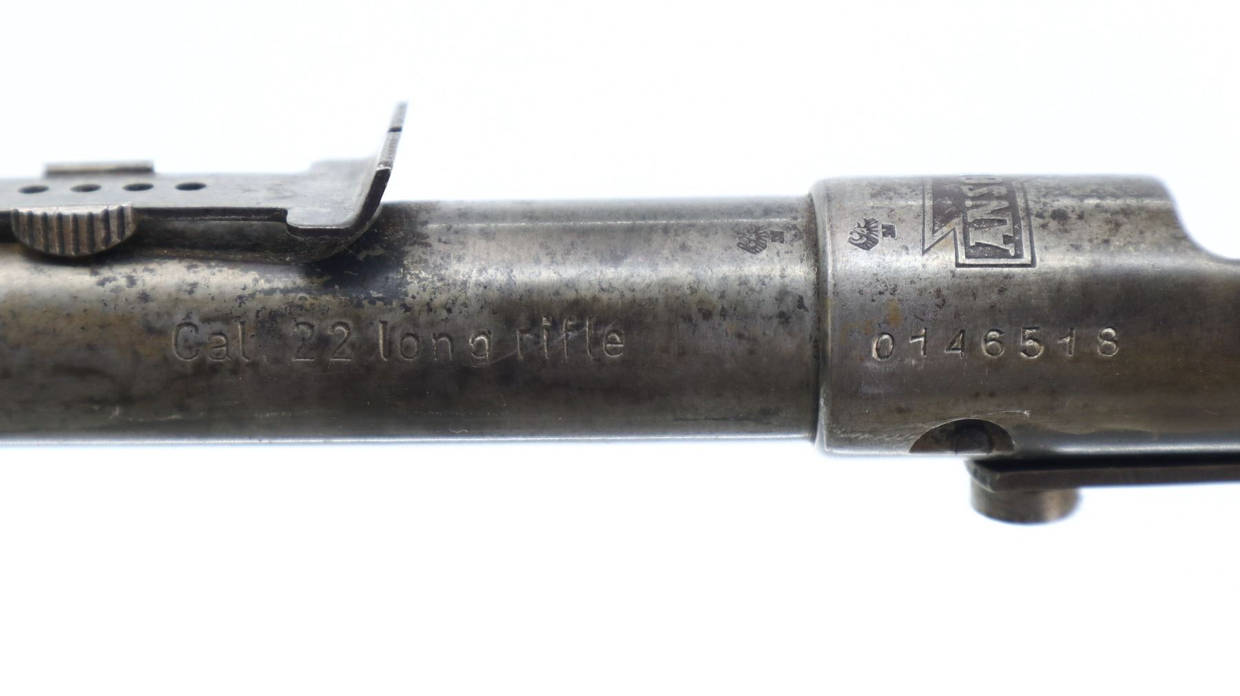 PARTS GUN, ANSCHUTZ, MODEL: SINGLE SHOT , CALIBER:22 LR, BORE IS POOR, WORN, PITTED. BLADE FRONT SIGHT. ADJUSTABLE U NOTCH REAR SIGHT. INCLUDES TRIGGER ASSEMBLY, NO OTHER PARTS. METAL FINISH IS SILVER GREY WITH PITTING, LIGHT RUST SPECKLES, HANDLING MARKS AND WEAR., ACTION: BOLT ACTION RIFLE , BARREL LENGTH: 21", SERIAL # 0146518, CONDITION: PARTS GUN, THIS ITEM IS SOLD FOR PARTS USE ONLY. SOME PARTS AND COMPONENTS MAY NOT BE PRESENT AND OR FUNCTIONAL. UNDER NO CIRCUMSTANCES ATTEMPT TO USE THIS ITEM AS A FUNCTIONAL FIREARM., CLASS: CANADIAN NON RESTRICTED