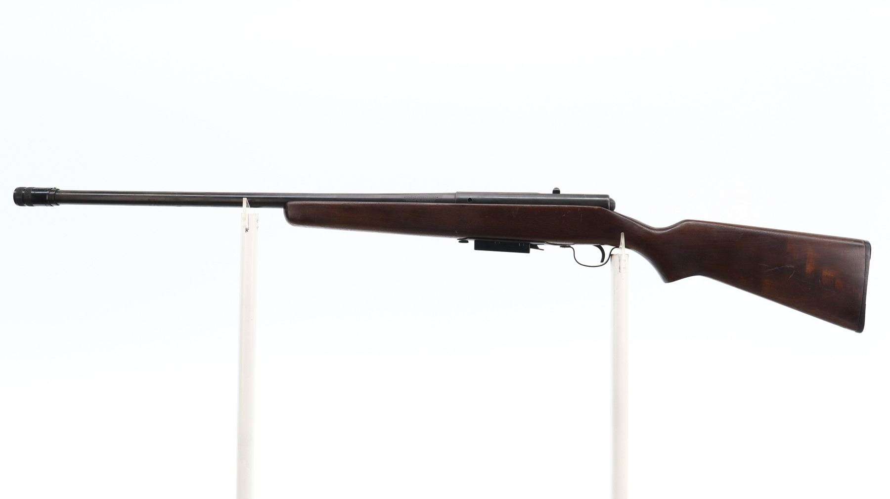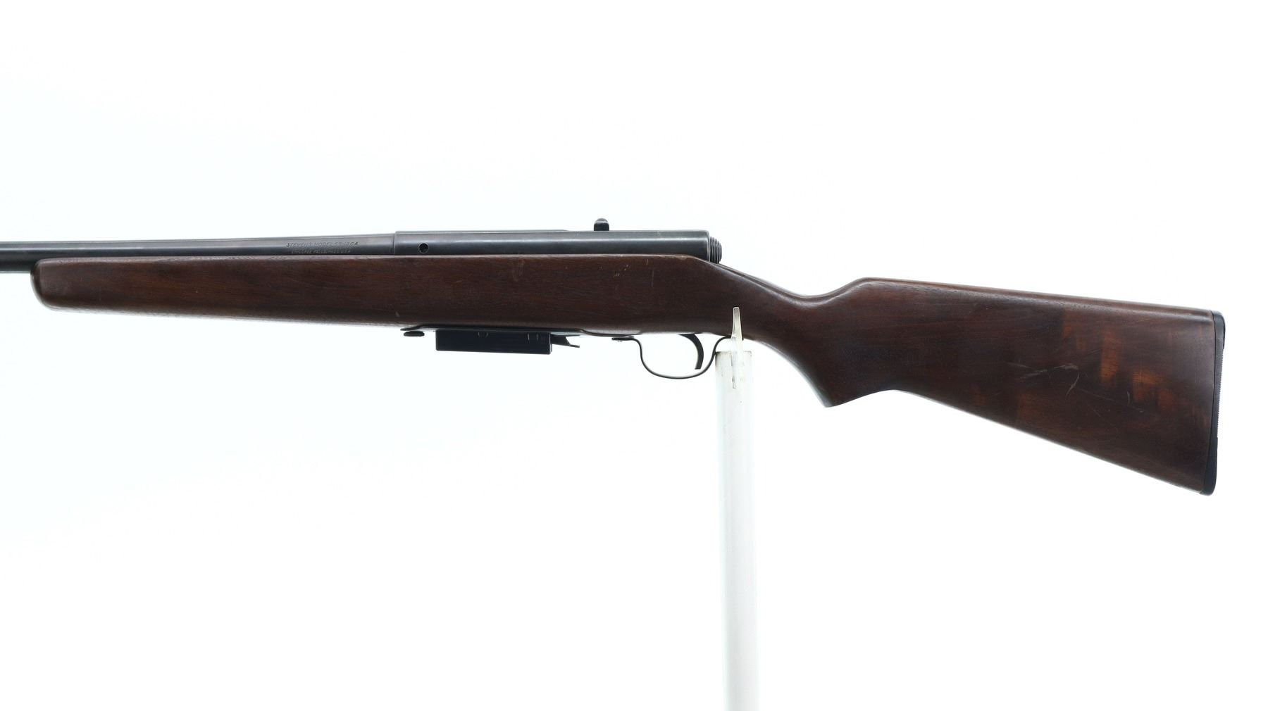 4/10, STEVENS, MODEL: 58, CALIBER:12 G X 2 3/4", COMES WITH MAGAZINE, BORE IS VERY GOOD. ADJUSTABLE SAVAGE CHOKE. SILVER BEAD, ROUND BARREL. ONE PIECE SMOOTH WOOD STOCK, PISTOL GRIP, GROOVED BLACK POLYMER BUTT PLATE. METAL FINISH SHOWS SCRATCHES, HANDLING MARKS AND WEAR. STOCK SHOWS MARKS, SCRATCHES AND WEAR., ACTION: BOLT ACTION SHOTGUN, BARREL LENGTH: 26.5", SERIAL # NA, CONDITION: 4/10, CLASS: CANADIAN NON RESTRICTED