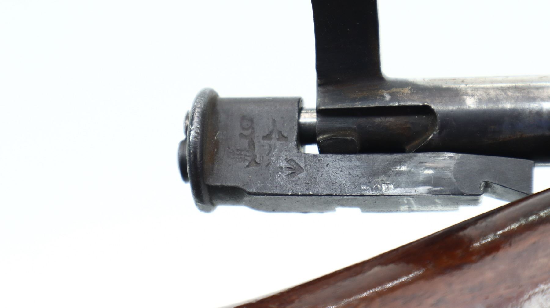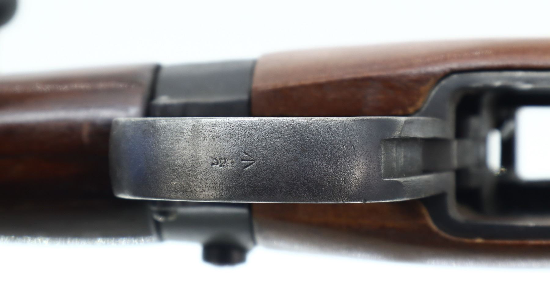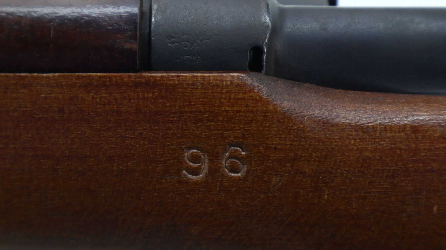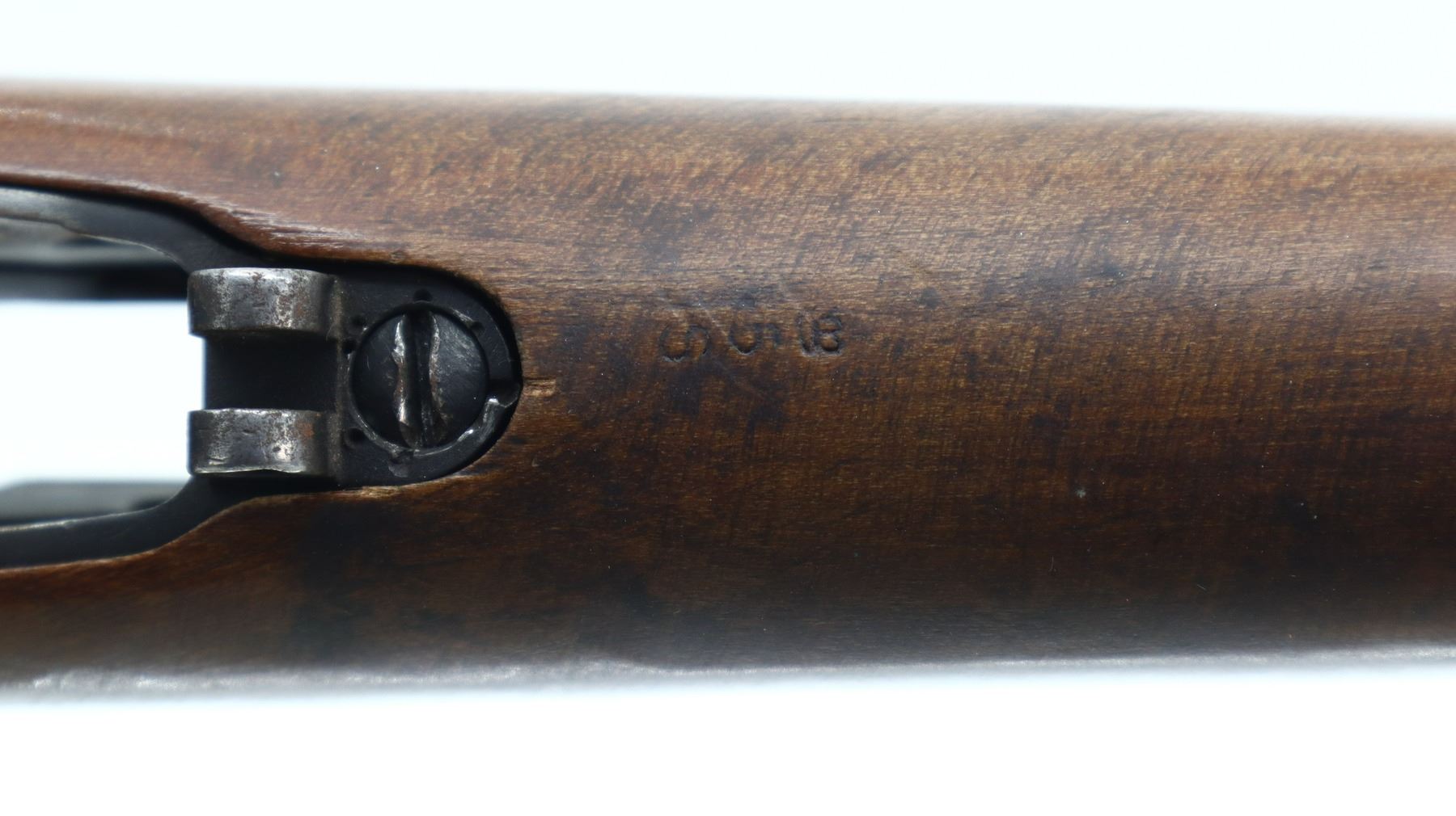 5/10, LEE ENFIELD, MODEL: NO1 MKIII SPORTER, CALIBER:303 BR, DOES NOT COME WITH MAGAZINE, BORE IS FAIR, WORN. MANUFACTURED BY ENFIELD, 1918, BOLT NUMBERED TO MATCH. BLADE FRONT SIGHT WITH RAMP, ADJUSTABLE U NOTCHED REAR SIGHT. THREE PIECE SPORTERIZED WOOD STOCKS, STOCK IS LOOSE, BRASS BUTT PLATE WITH TRAP, SLING SWIVELS. METAL FINISH SHOWS SCRATCHES, HANDLING MARKS AND WEAR. STOCKS SHOW MARKS, SCRATCHES AND FINISH WEAR., ACTION: BOLT ACTION RIFLE, BARREL LENGTH: 25", SERIAL # D1235, CONDITION: 5/10, CLASS: CANADIAN NON RESTRICTED