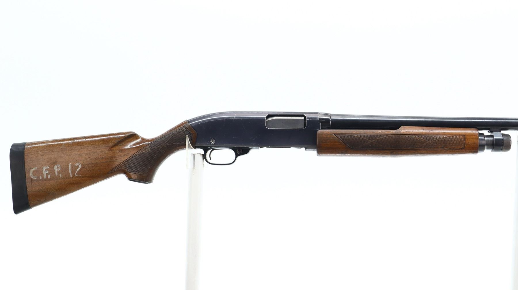 4/10, WINCHESTER, MODEL: 1200, CALIBER:12 G X 2 3/4", BORE IS GOOD. FIXED CYLINDER CHOKE. BRASS BEAD, CUT DOWN ROUND BARREL, BLACK ALLOY RECEIVER, ACTION DOES NOT FUNCTION PROPERLY REQUIRES REPAIR OR PARTS. TWO PIECE WOOD STOCK, CHECKERED FOREARM AND PISTOL GRIP, BLACK RUBBER RECOIL PAD, 13.25" LOP, AND GRIP CAP. METAL FINISH SHOWS SCRATCHES HANDLING MARKS AND WEAR. STOCKS SHOW MARKS, SCRATCHES AND WEAR., ACTION: PUMP ACTION SHOTGUN, BARREL LENGTH: 20", SERIAL # L665422, CONDITION: 4/10, CLASS: CANADIAN NON RESTRICTED