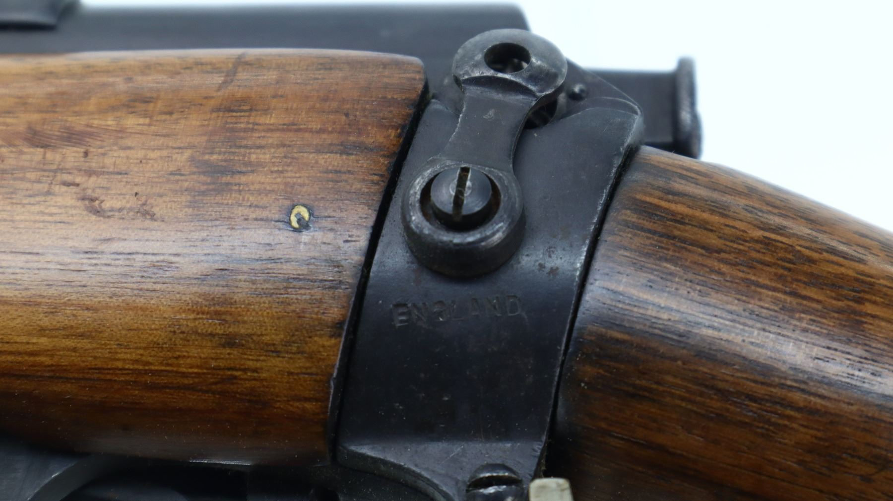 5/10, LEE ENFIELD, MODEL: NO1 MKIII SPORTER, CALIBER:303 BR, COMES WITH MAGAZINE, BORE IS POOR, WORN, PITTED. MANUFACTURED BY LSA CO, 1915, BOLT MISMATCHED. BLADE FRONT SIGHT WITH RAMP, ADJUSTABLE U NOTCHED REAR SIGHT, RECEIVER DRILLED AND TAPPED WITH ONE PIECE SCOPE BASE INSTALLED, MISSING SAFETY LEVER, SPRING AND SCREW ARE INCLUDED. TWO PIECE SMOOTH SPORTERIZED WOOD STOCKS, PISTOL GRIP, SMOOTH BRASS BUTT PLATE WITH TRAP, SLING SWIVELS. METAL FINISH SHOWS SCRATCHES, HANDLING MARKS AND WEAR. STOCKS SHOW MARKS, SCRATCHES AND WEAR. , ACTION: BOLT ACTION RIFLE, BARREL LENGTH: 25.25", SERIAL # H53204, CONDITION: 5/10, CLASS: CANADIAN NON RESTRICTED