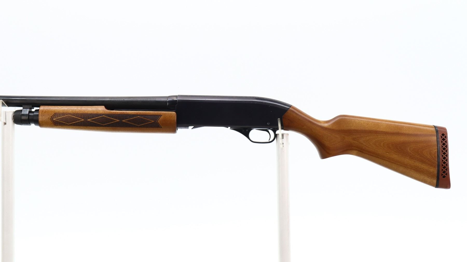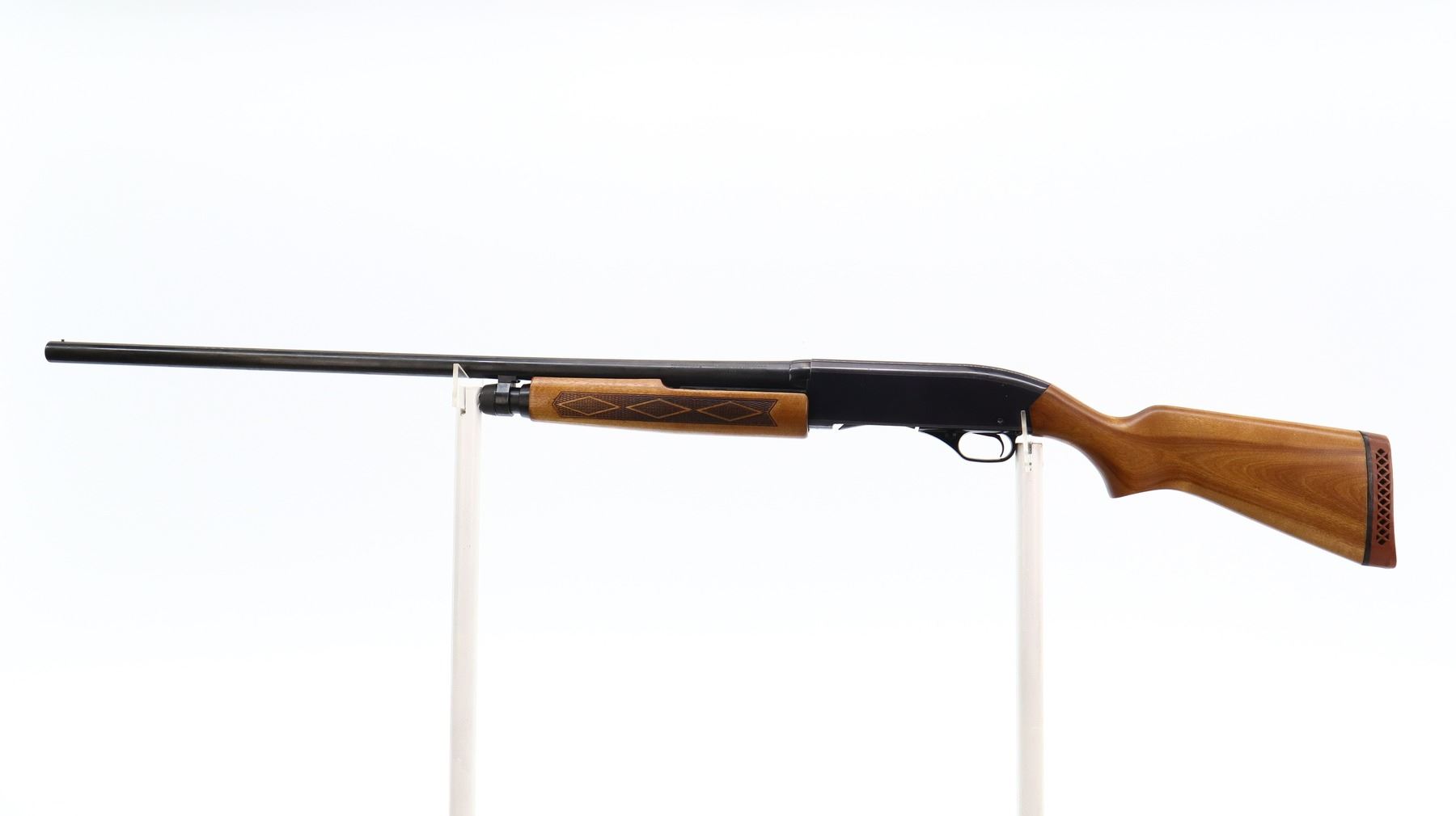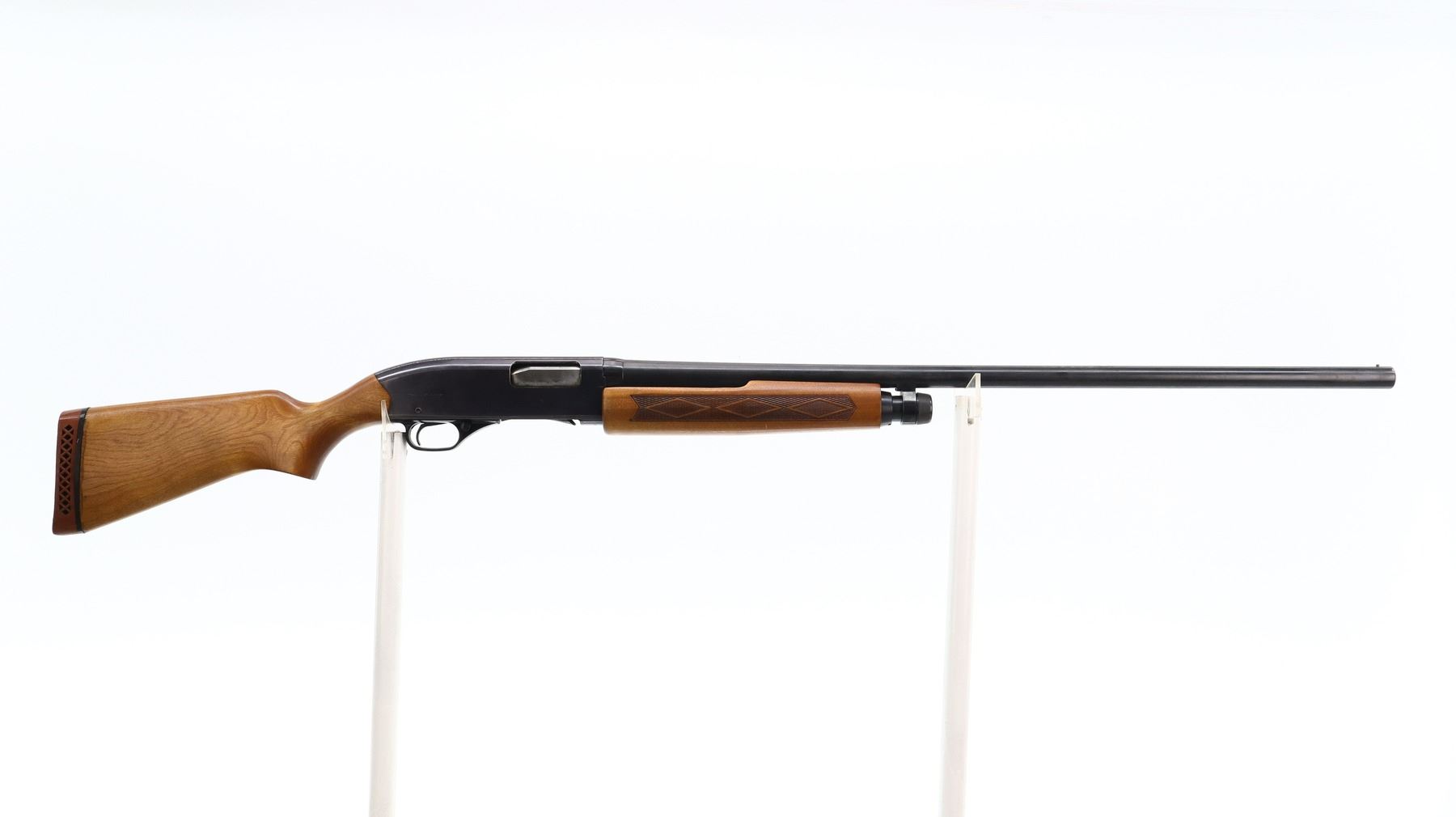 5/10, WINCHESTER, MODEL: 2200, CALIBER:12 G X 2 3/4", BORE IS GOOD. FIXED FULL CHOKE. SILVER BEAD, BLUED ROUND BARREL, BLACK ALLOY RECEIVER. TWO PIECE WOOD STOCKS, CHECKERED FOREARM, SMOOTH PISTOL GRIP, RED VENTED RUBBER RECOIL PAD, 13.5" LOP. METAL FINISH SHOWS SCRATCHES, HANDLING MARKS AND WEAR. STOCKS SHOW MARKS, SCRATCHES AND WEAR., ACTION: PUMP ACTION SHOTGUN, BARREL LENGTH: 30", SERIAL # 430986, CONDITION: 5/10, CLASS: CANADIAN NON RESTRICTED