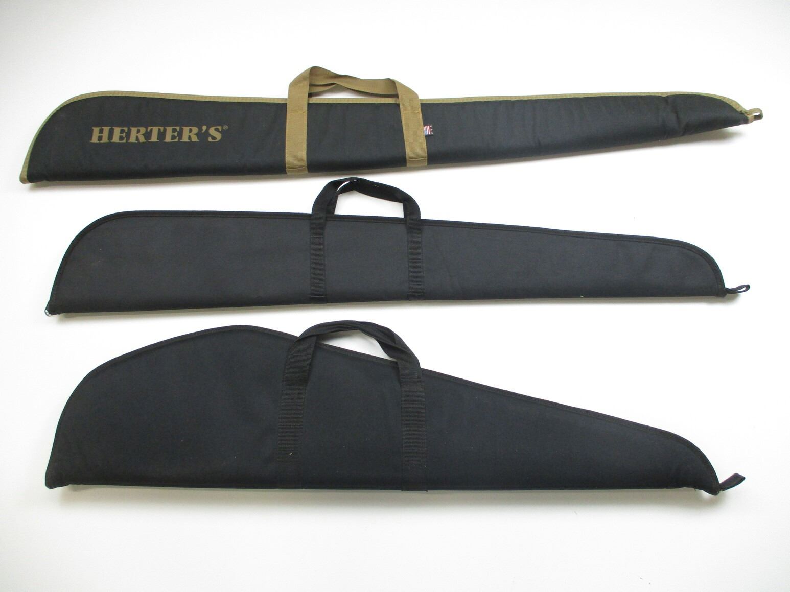 ASSORTED SOFT RIFLE CASES LOT, LOT OF 3; (1) MFG'D BY HERTER'S, BLACK, PADDED, OAL APPROX 54", (1) MFG'D BY LEVY'S, BLACK, PADDED, OAL APPROX 41", & (1) UNKNOWN MFG, BLACK, PADDED, OAL APPROX 45"