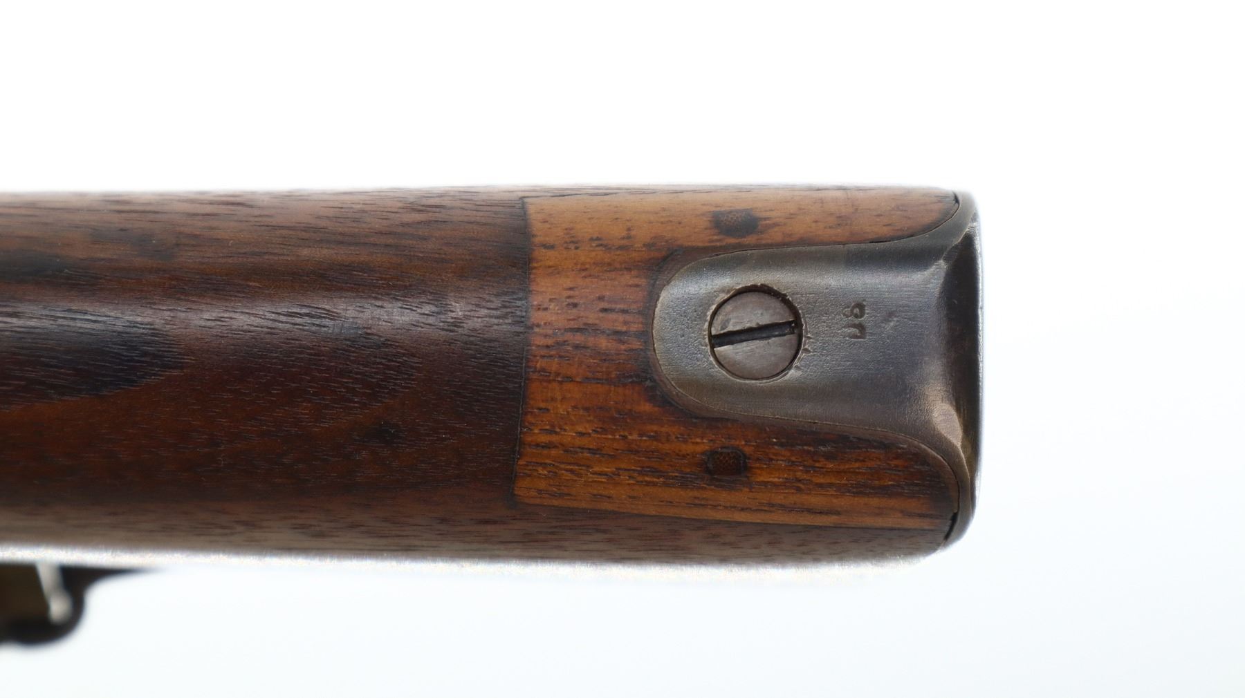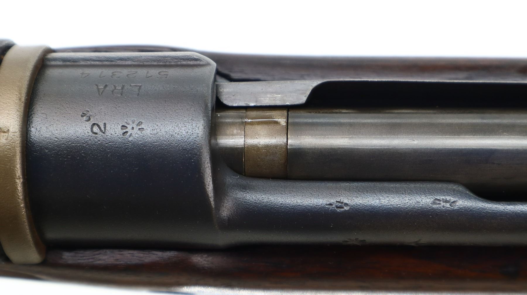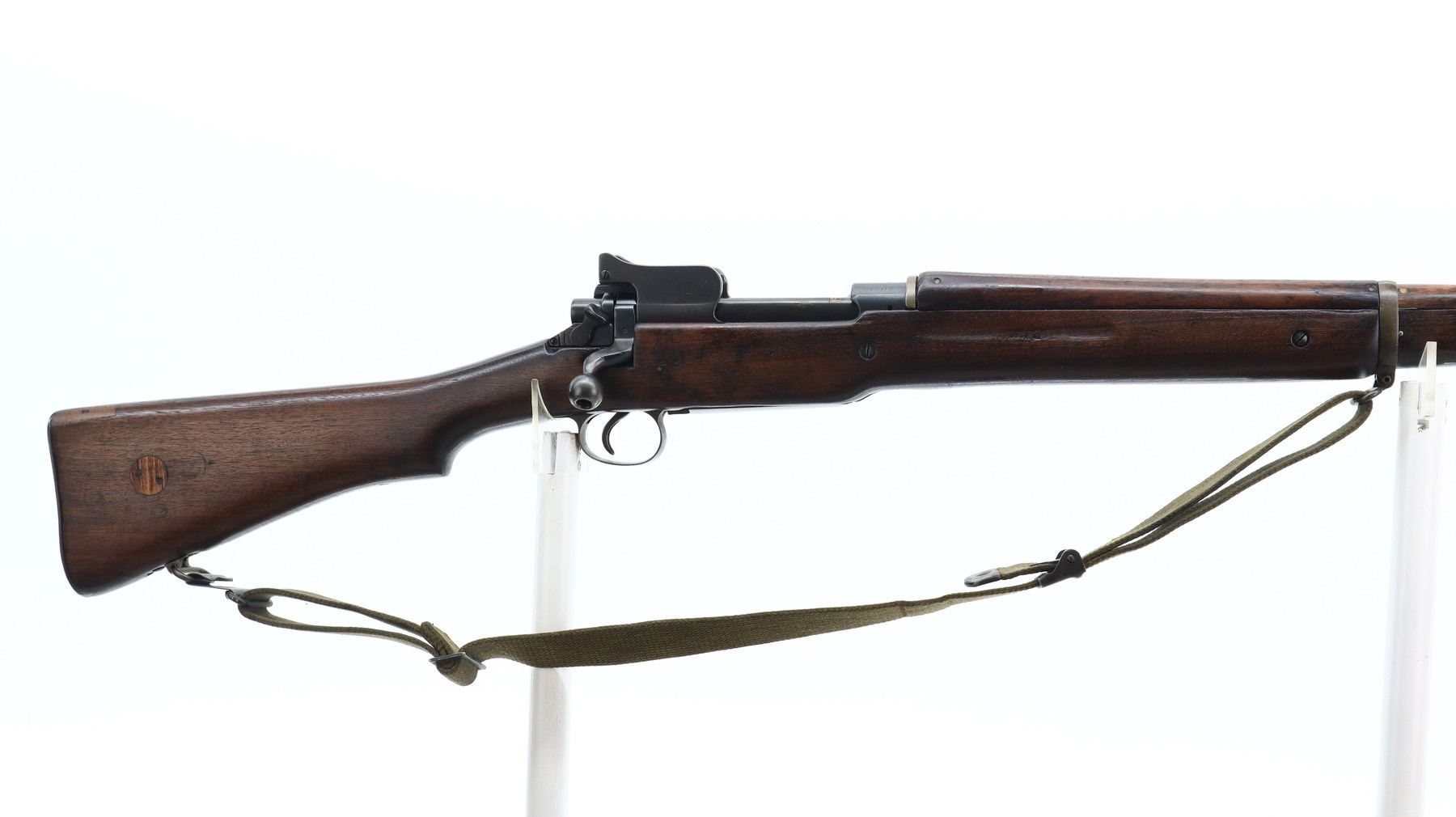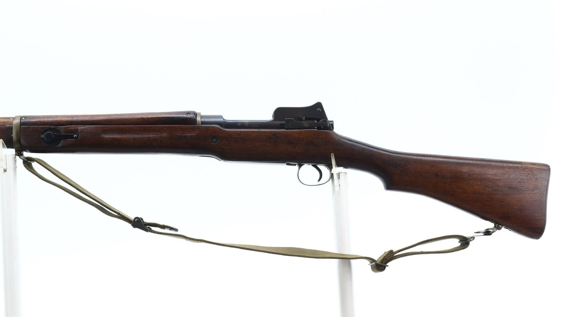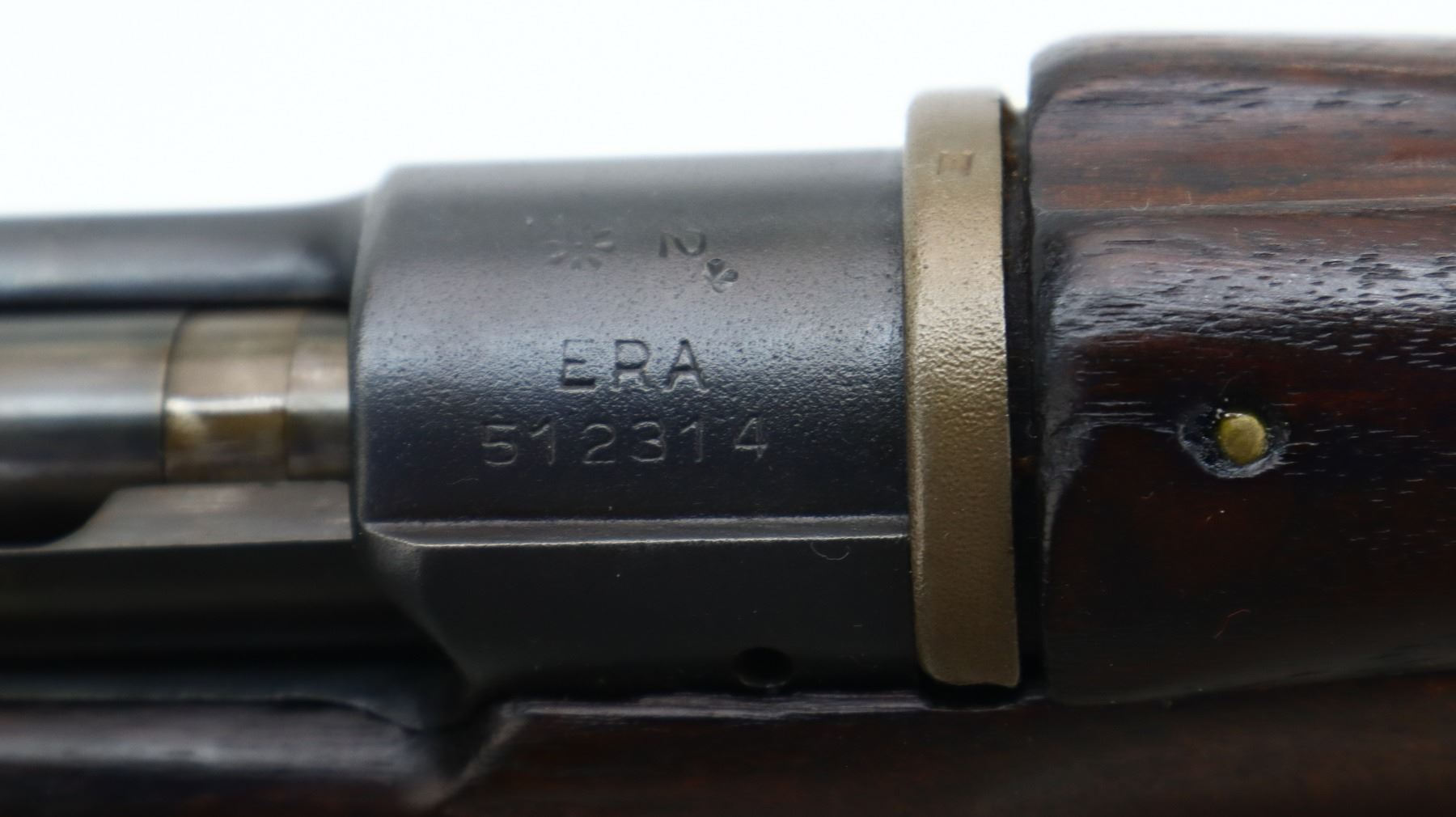6+/10, ENFIELD , MODEL: P14, CALIBER: 303 BR , BORE IS VERY GOOD, SHINY. MANUFACTURED BY ERA. BOLT DOES NOT MATCH BY SERIAL #. BLADE FRONT SIGHT WITH EARS AND RAMP. ADJUSTABLE REAR PEEP SIGHT WITH EARS. INCLUDES FRONT AND REAR VOLLEY SIGHTS ON LEFT SIDE. 3 PIECE FULL MILITARY WOOD STOCKS. FINGER GROOVED FOREND. PISTOL GRIP. SMOOTH STEEL BUTT PLATE WITH TRAP. STOCK DISK REPLACED. HEEL OF STOCK REPAIRED. SWIVELS WITH CANVAS MILITARY SLING. STACKING SWIVEL, BAYONET LUG. METAL FINISH SHOWS SOME SCRATCHES, HANDLING MARKS AND WEAR. STOCKS SHOW SOME MARKS, SCRATCHES AND WEAR. ACTION: BOLT ACTION RIFLE , BARREL LENGTH: 25.75", SERIAL: 512314, CONDITION: 6+/10, CLASS: CANADIAN NON RESTRICTED