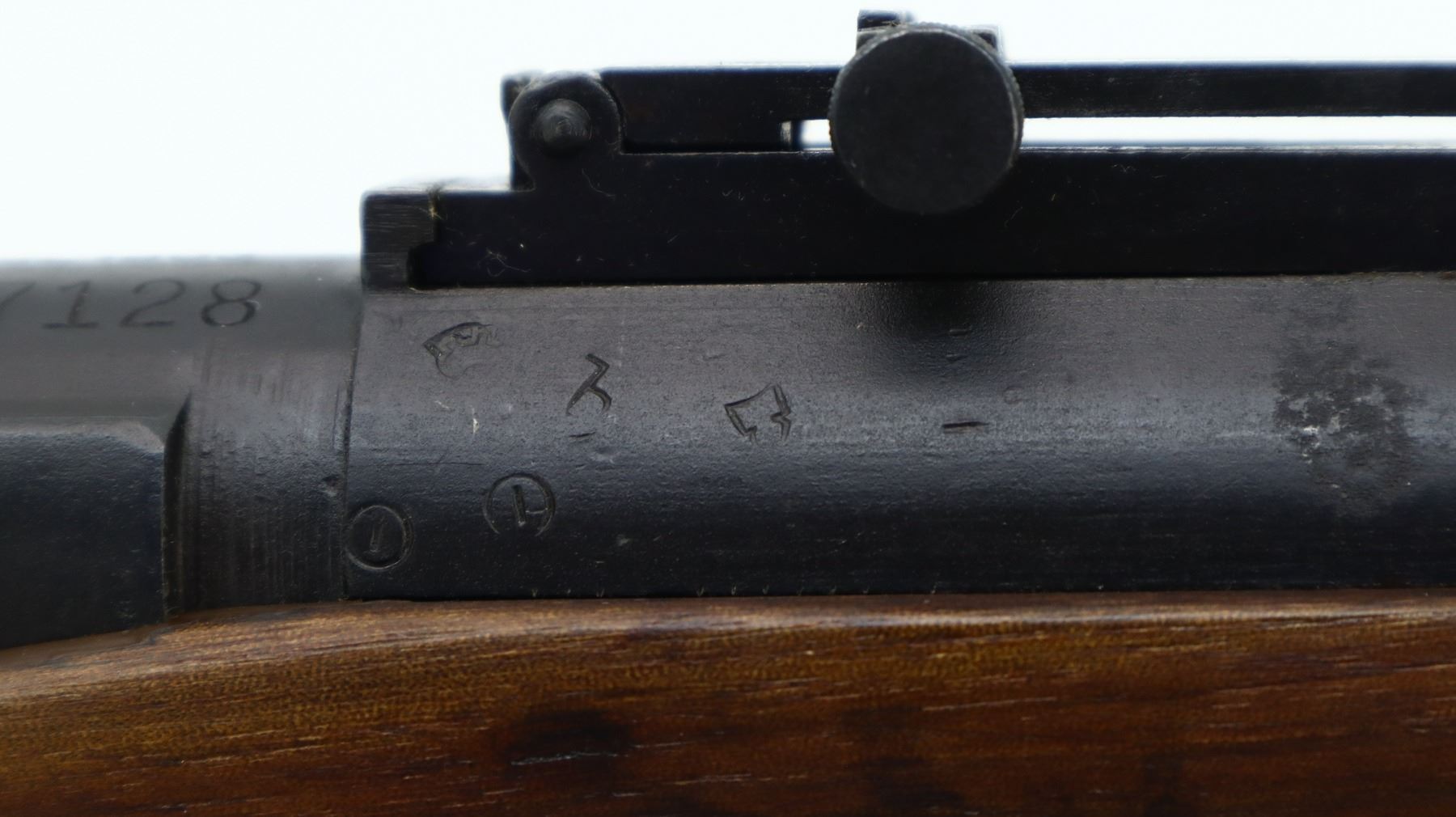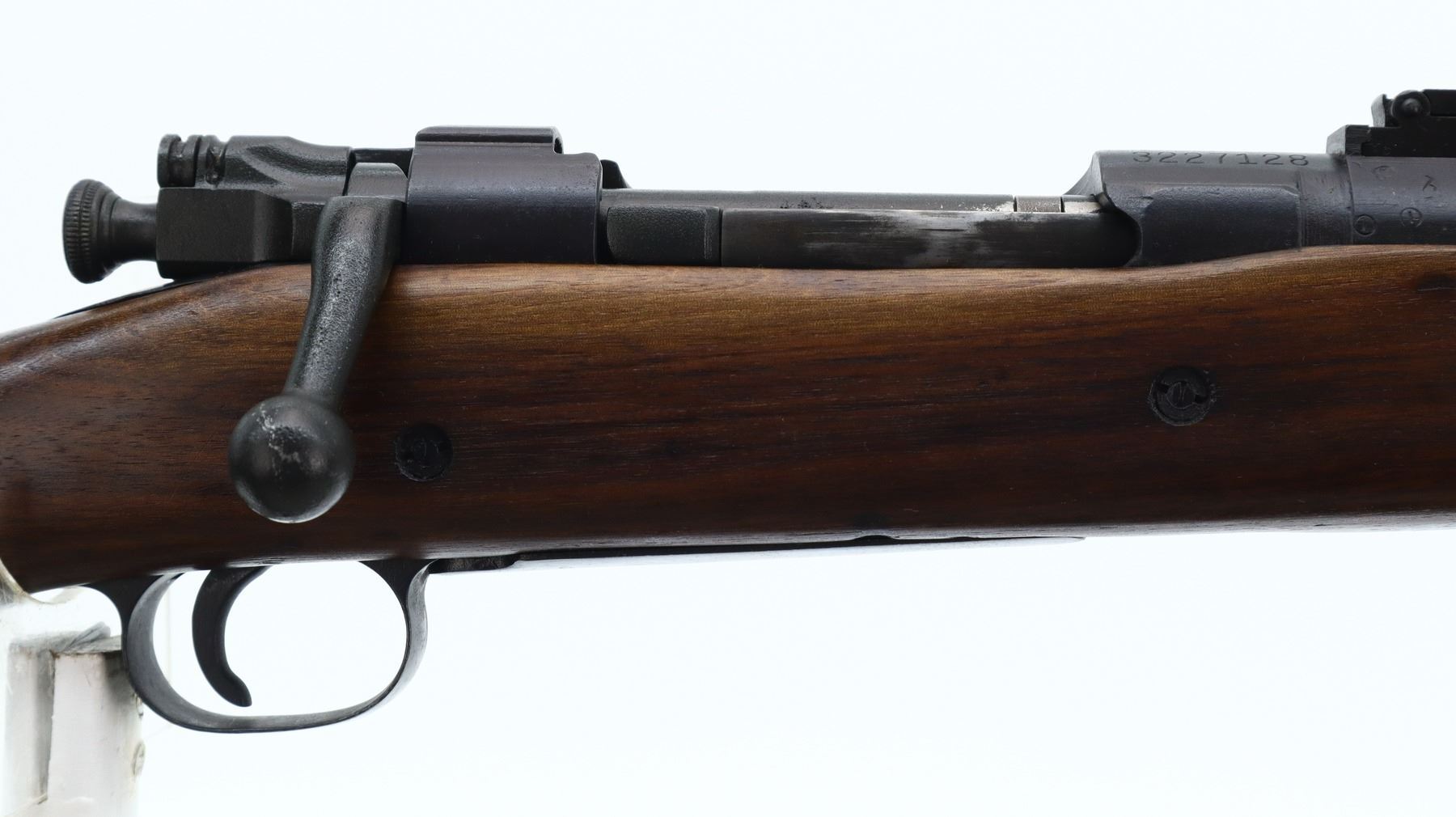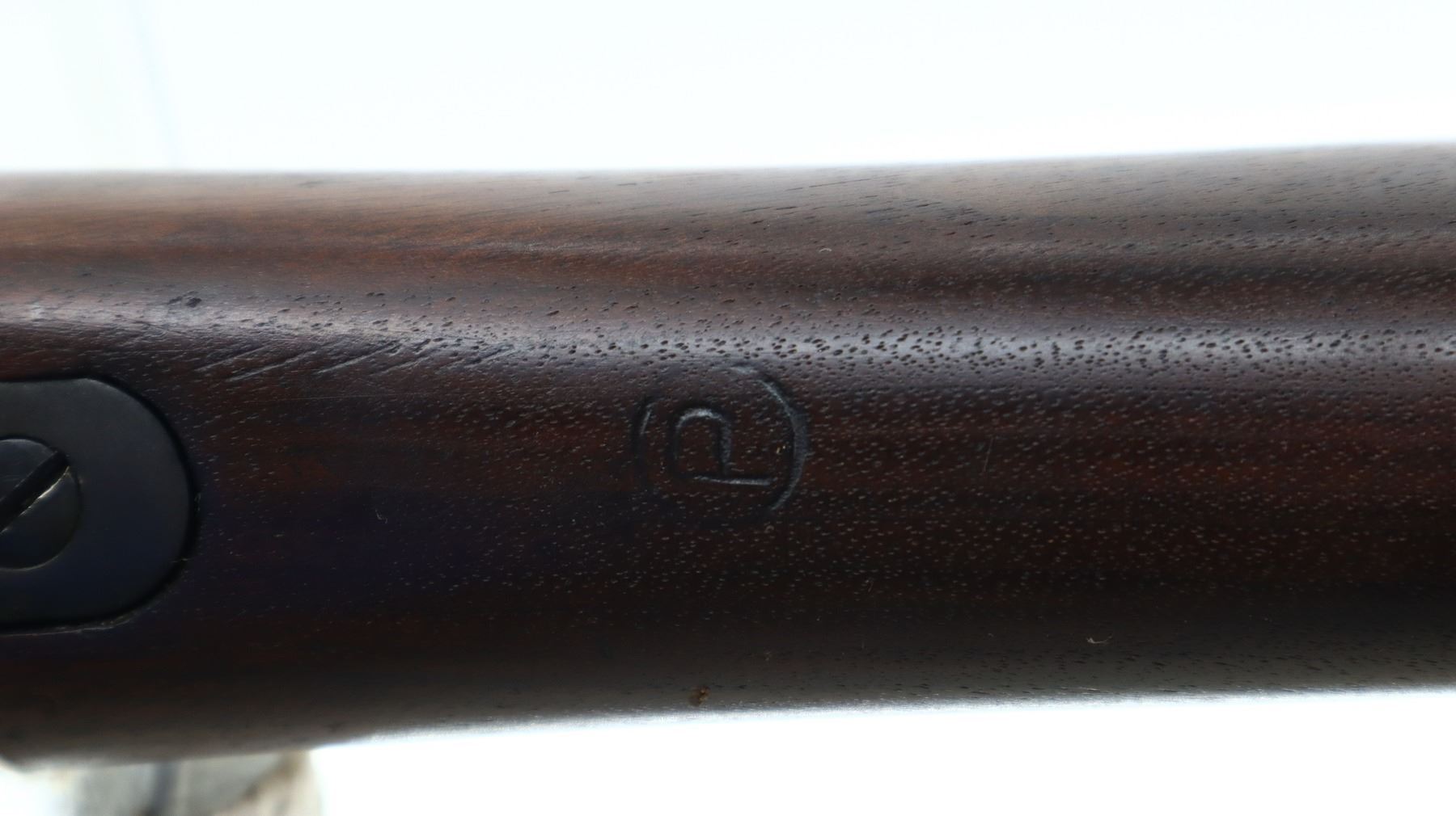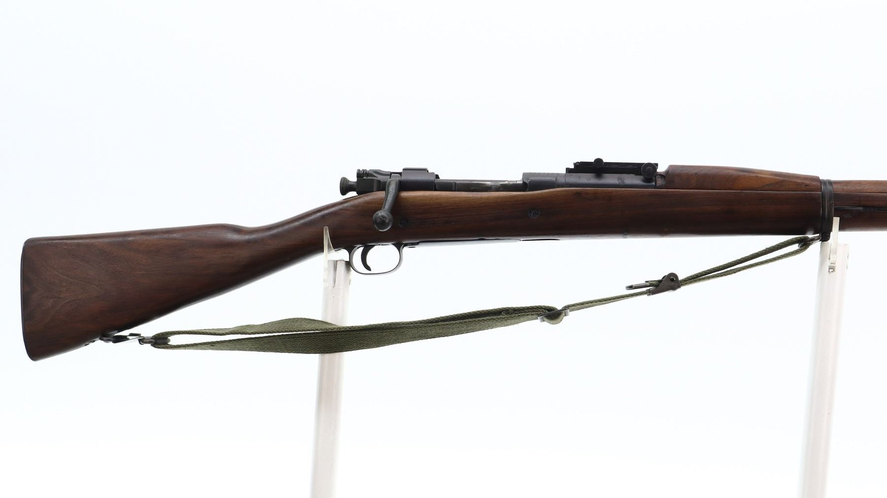 7/10, US RIFLE , MODEL: 1903, CALIBER: 30-06 SPRG, BORE IS FAIR, WORN, LIGHT PITTING, COUNTER BORED. MANUFACTURED BY REMINGTON. BOLT MARKED WITH AN R. BLADE FRONT SIGHT WITH RAMP. ADJUSTABLE U NOTCH LADDER REAR SIGHT. PARKERIZED FINISH. BARREL MARKED RA 9-42. TWO PIECE FULL MILITARY WOOD STOCKS. STRAIGHT GRIP. CHECKERED STEEL BUTT PLATE WITH TRAP. SWIVELS WITH CANVAS MILITARY SLING. BAYONET LUG. STACKING SWIVEL. METAL FINISH SHOWS SOME SCRATCHES, HANDLING MARKS AND WEAR. STOCK SHOWS SOME MARKS, SCRATCHES AND WEAR. ACTION: BOLT ACTION RIFLE , BARREL LENGTH: 24", SERIAL: 3227128, CONDITION: 7/10, CLASS: CANADIAN NON RESTRICTED