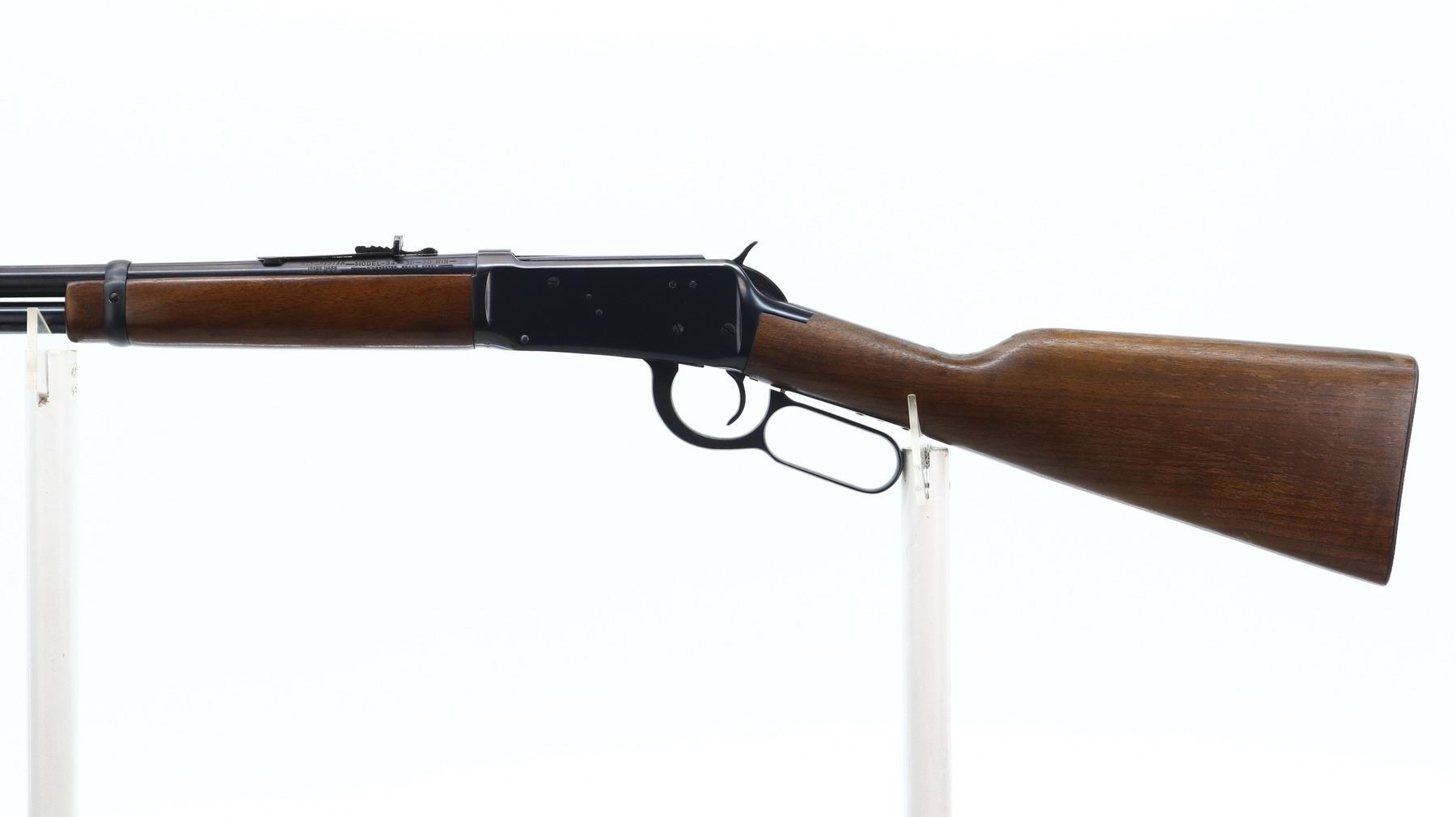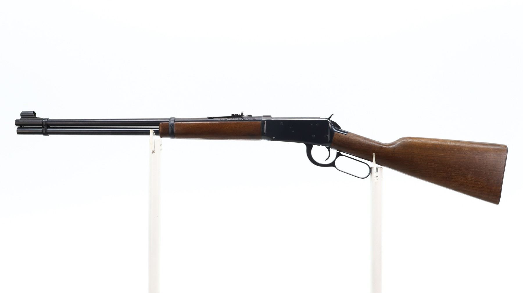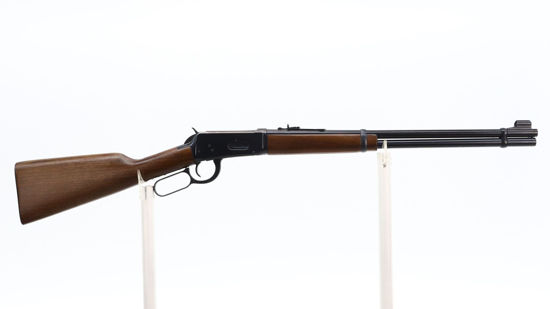 7+/10, WINCHESTER, MODEL: 94 PRE 64, CALIBER: 30-30 WIN , BORE IS EXCELLENT. MANUFACTURED 1954. BLADE FRONT SIGHT WITH HOOD AND RAMP. ADJUSTABLE U NOTCH REAR SIGHT. BLUED FINISH. GROOVED SPUR HAMMER. TWO PIECE SMOOTH WOOD STOCKS. STRAIGHT GRIP. CHECKERED STEEL BUTT PLATE. FULL LENGTH MAG TUBE. METAL FINISH SHOWS SCRATCHES, HANDLING MARKS AND WEAR. STOCKS SHOWS SOME MARKS, SCRATCHES AND WEAR., ACTION: LEVER ACTION RIFLE, BARREL LENGTH: 20", SERIAL: 2065648, CONDITION: 7+/10, CLASS: CANADIAN NON RESTRICTED