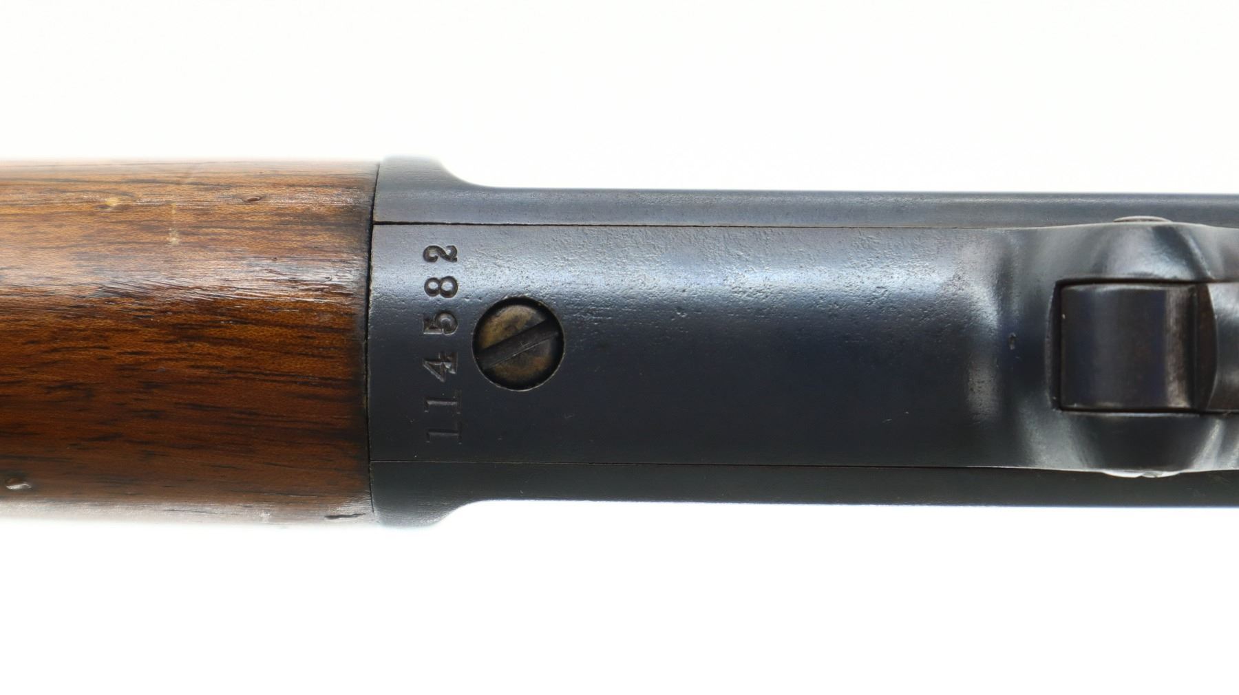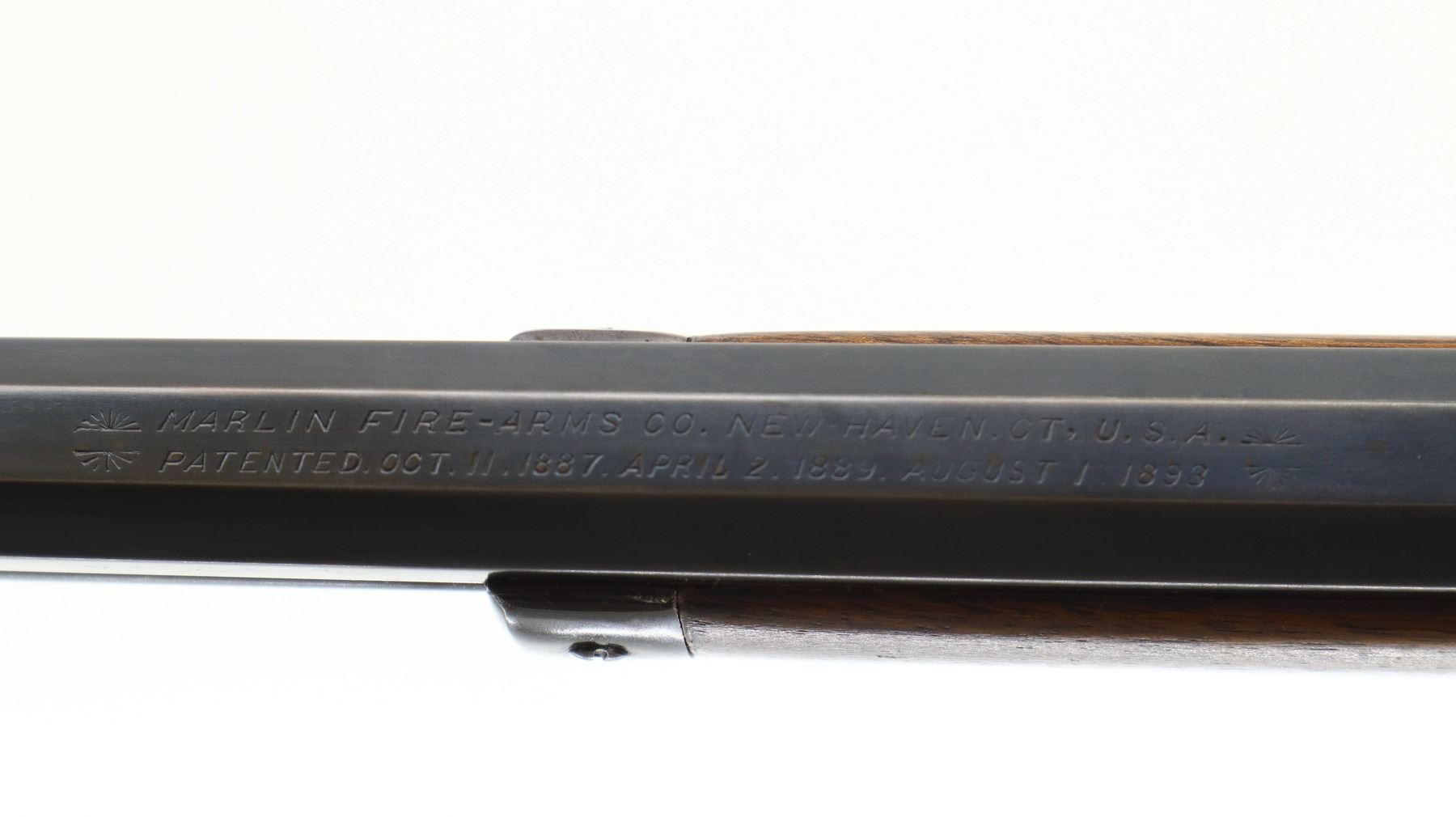 7/10, MARLIN , MODEL: 1894, CALIBER: 38-40 WCF , BORE IS GOOD WITH LIGHT PITTING, SOME SHINE. BLADE FRONT SIGHT. ADJUSTABLE U NOTCH REAR SIGHT. METAL HAS BEEN POLISHED AND REBLUED. 1/2 OCTAGON 1/2 ROUND BARREL. CHECKERED SPUR HAMMER. TWO PIECE SMOOTH WOOD STOCKS. STRAIGHT GRIP. SMOOTH CURVED STEEL BUTT PLATE. 1/2 LENGTH MAG TUBE. METAL FINISH SHOWS SOME SCRATCHES, HANDLING MARKS AND WEAR. STOCKS SHOWS SOME MARKS, SCRATCHES AND WEAR. ACTION: LEVER ACTION RIFLE, BARREL LENGTH: 24", SERIAL: 114582, CONDITION: 7/10, CLASS: CANADIAN NON RESTRICTED