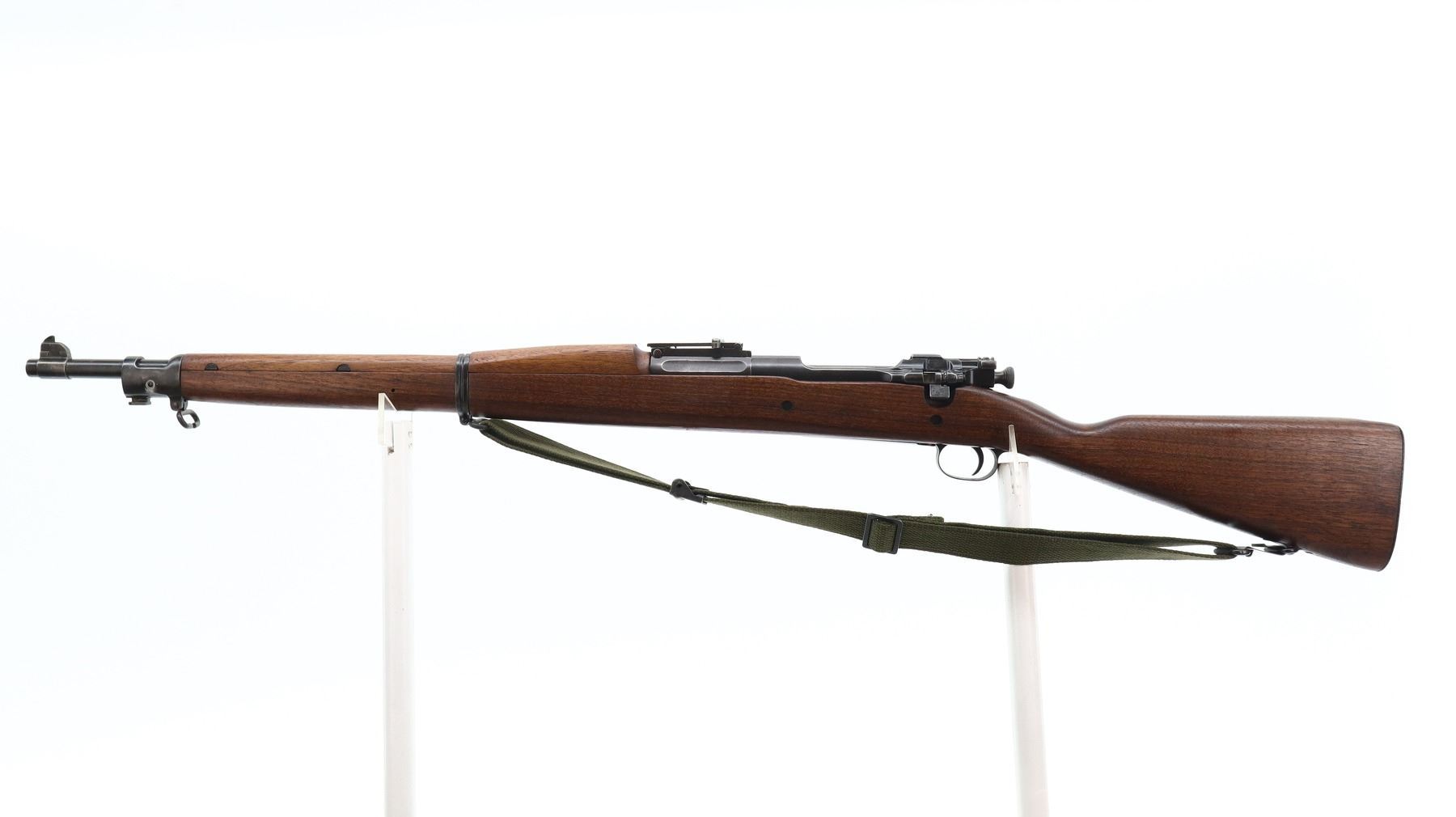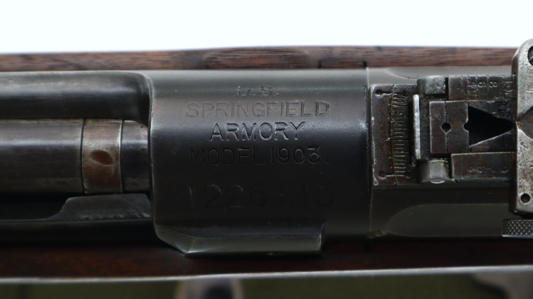 7/10, US RIFLE , MODEL: 1903, CALIBER: 30-06 SPRG, BORE IS FAIR, WORN AND LIGHTLY PITTED. MANUFACTURED BY SPRINGFIELD ARMOURY. BLADE FRONT SIGHT WITH RAMP. ADJUSTABLE U NOTCH LADDER REAR SIGHT. BARREL MARKED SA 1-21. TWO PIECE FULL MILITARY WOOD STOCKS. STRAIGHT GRIP. CHECKERED STEEL BUTT PLATE WITH TRAP. SWIVELS WITH CANVAS MILITARY SLING. BAYONET LUG. STACKING SWIVEL. METAL FINISH SHOWS SOME PITTING, SCRATCHES, HANDLING MARKS AND WEAR. STOCK SHOWS SOME MARKS, SCRATCHES AND WEAR. ACTION: BOLT ACTION RIFLE , BARREL LENGTH: 24", SERIAL: 1226115, CONDITION: 7/10, CLASS: CANADIAN NON RESTRICTED