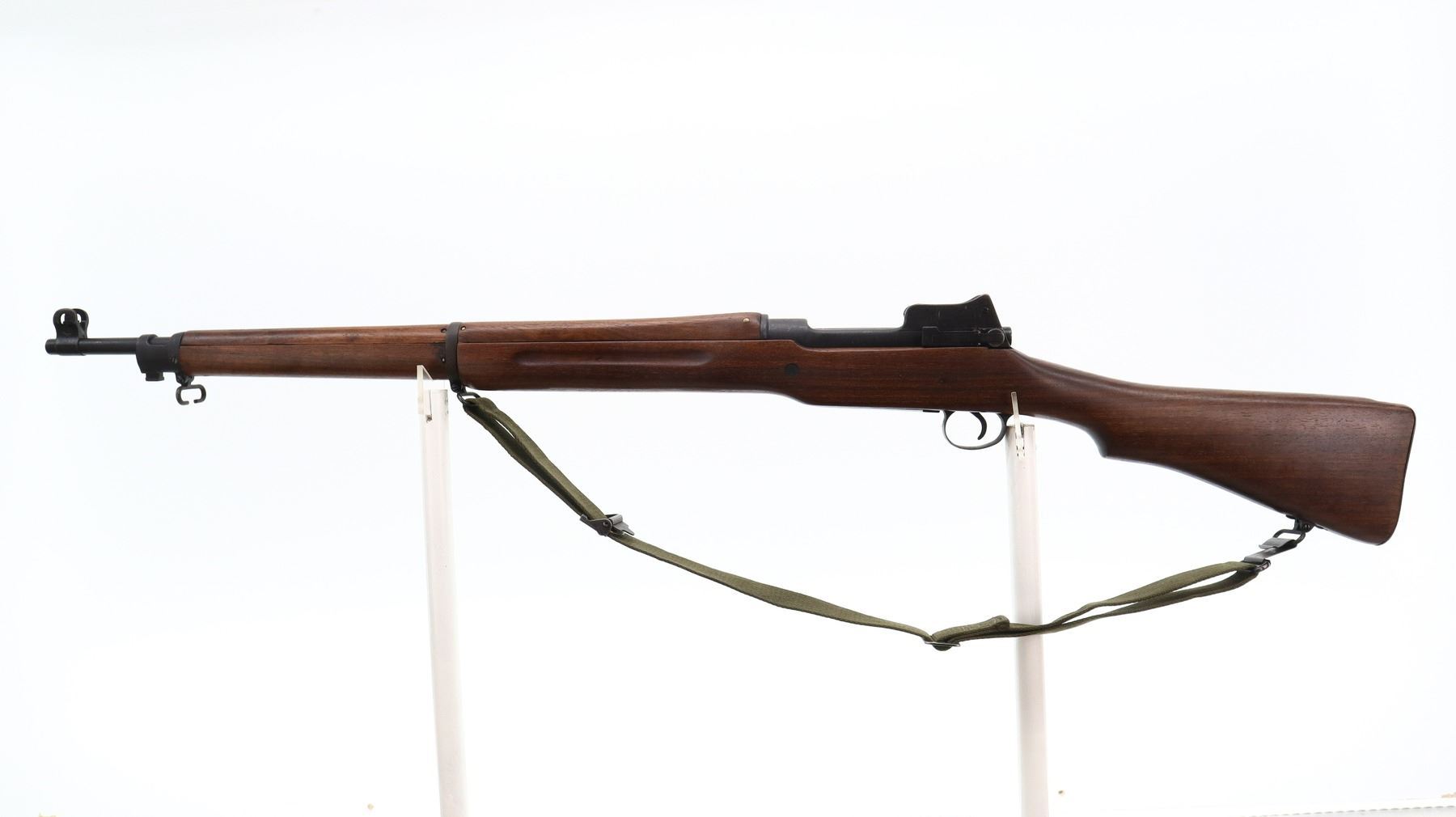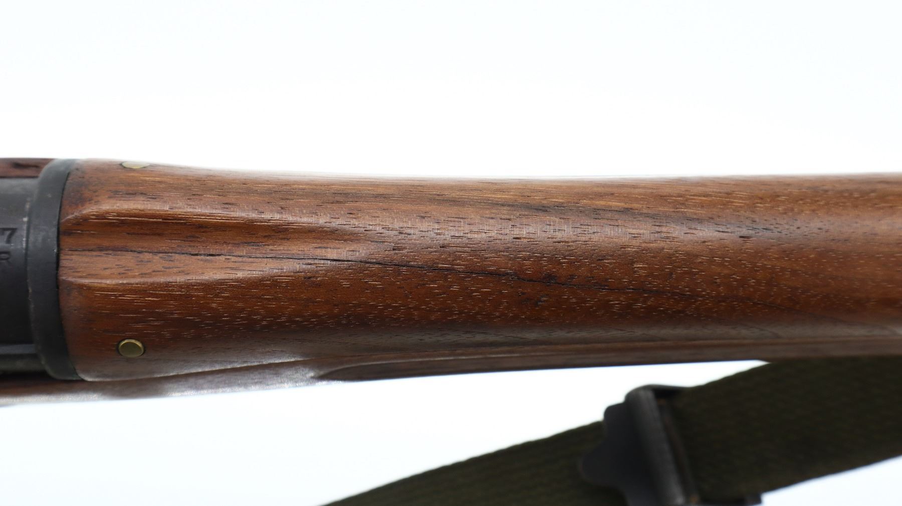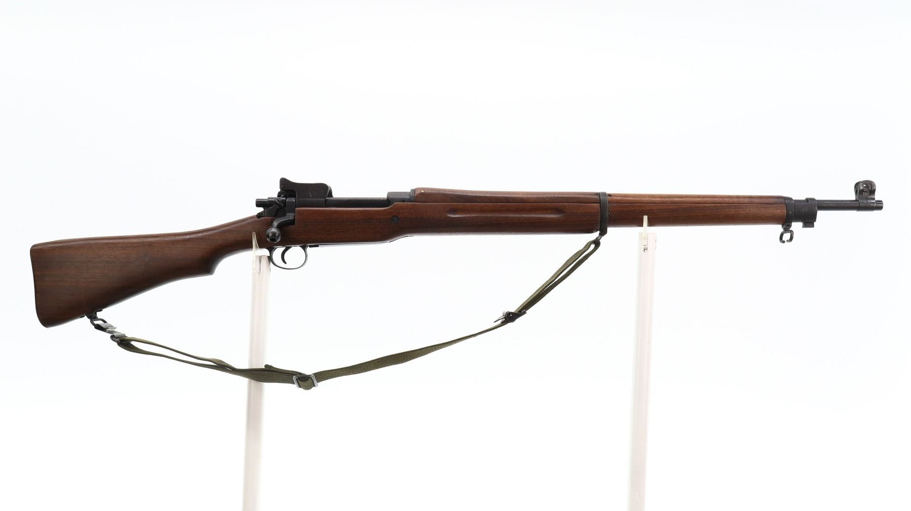 8/10, US RIFLE , MODEL: 1917, CALIBER: 30-06 SPRG, BORE IS VERY GOOD. MANUFACTURED BY WINCHESTER. BOLT NUMBERED TO MATCH. BLADE FRONT SIGHT WITH EARS AND RAMP. ADJUSTABLE REAR PEEP SIGHT WITH EARS. BLACK METAL FINISH. 3 PIECE FULL MILITARY WOOD STOCKS. FINGER GROOVED FOREND. PISTOL GRIP. SMOOTH STEEL BUTT PLATE WITH TRAP. SWIVELS WITH CANVAS MILITARY SLING. BAYONET LUG. STACKING SWIVEL. METAL FINISH SHOWS SOME SCRATCHES, HANDLING MARKS AND WEAR. STOCKS SHOWS SOME MARKS, SCRATCHES AND WEAR. ACTION: BOLT ACTION RIFLE , BARREL LENGTH: 26", SERIAL: 434484, CONDITION: 8/10, CLASS: CANADIAN NON RESTRICTED