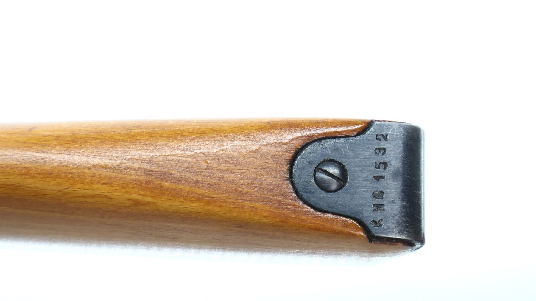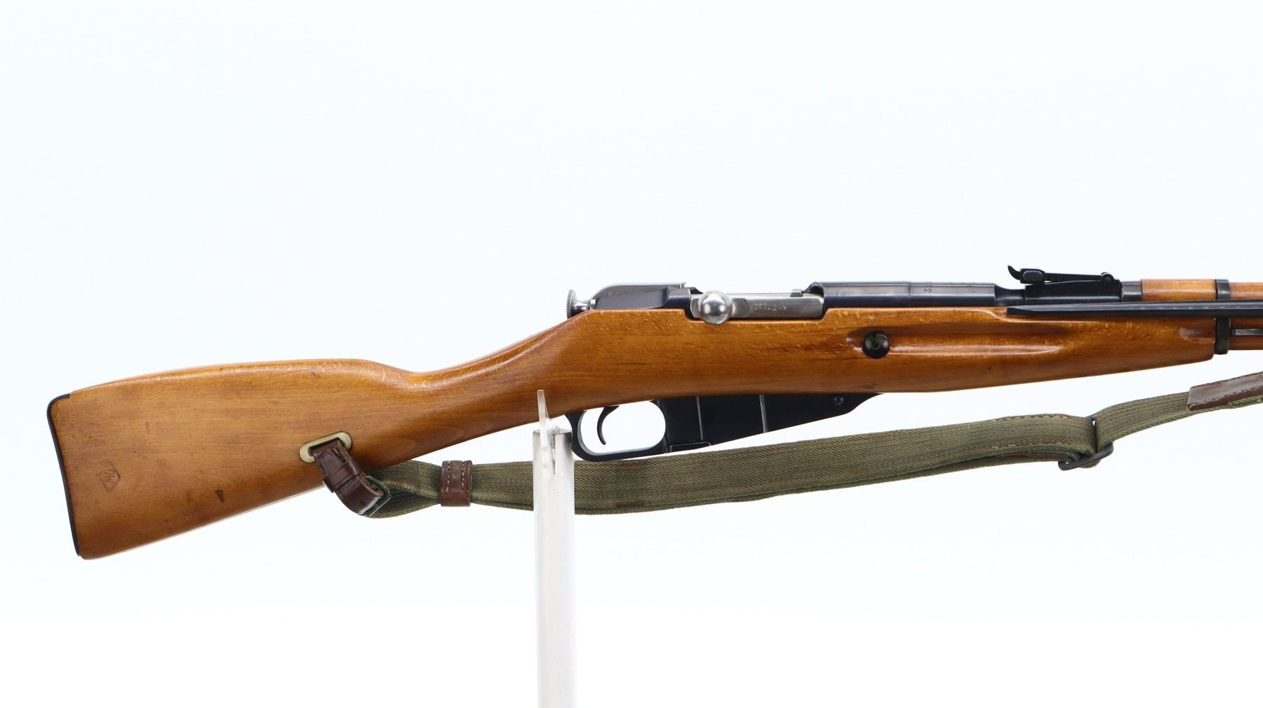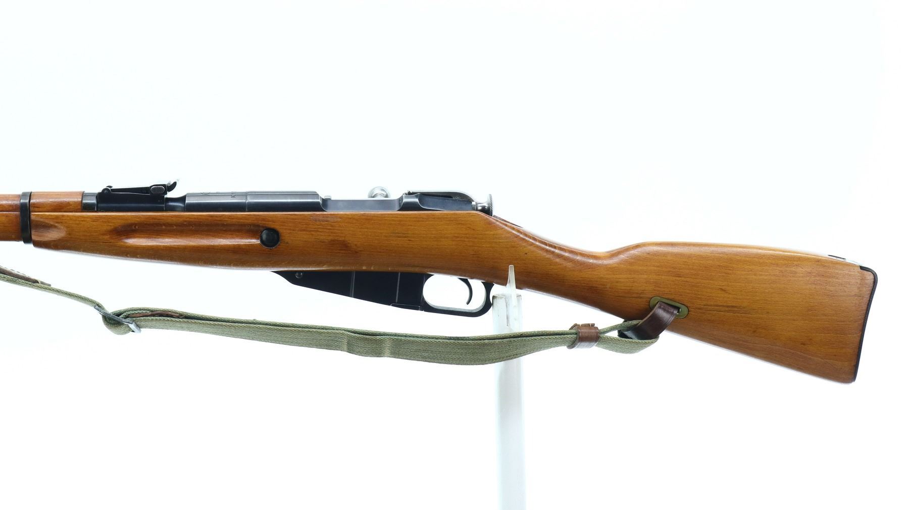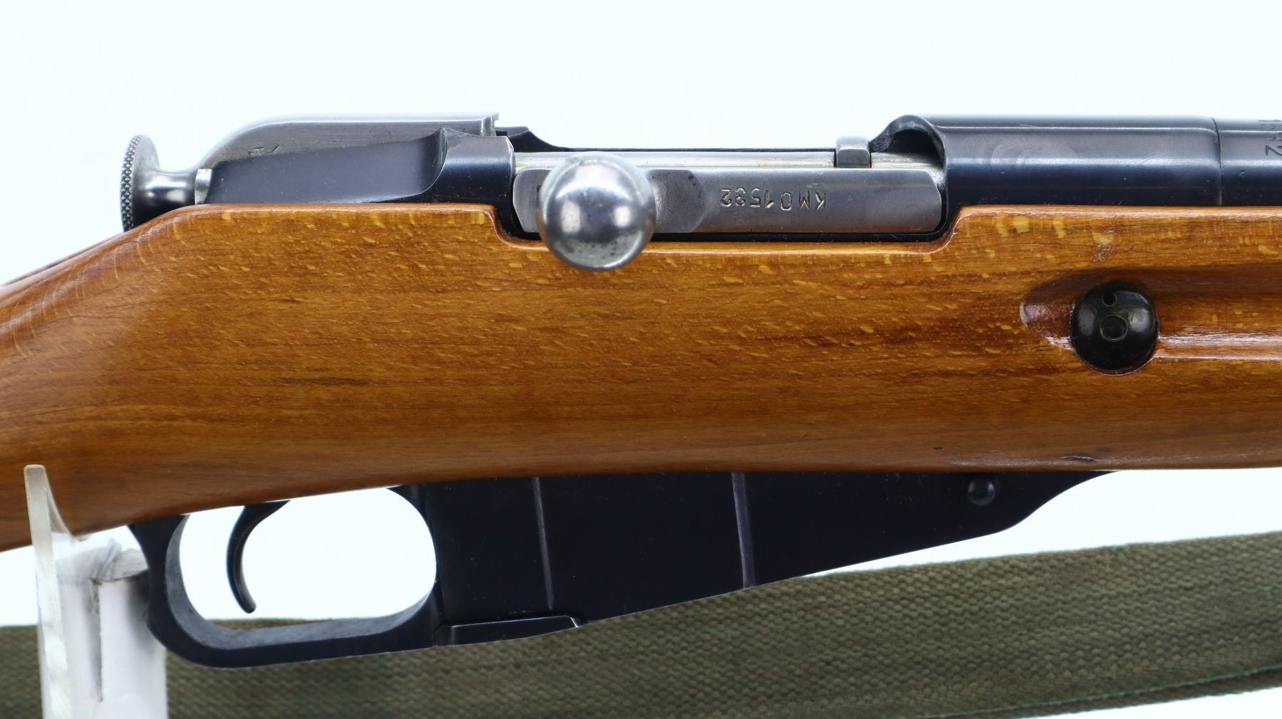 8/10, POLISH MOSIN NAGANT, MODEL: M44 CARBINE , CALIBER: 7.62 X 54R, BORE IS EXCELLENT. MANUFACTURED BY FACTORY 11, 1954. VISIBLE SERIAL #'S MATCH. POST FRONT SIGHT WITH HOOD AND RAMP. ADJUSTABLE U NOTCH REAR SIGHT. BLUED FINISH. ROUND RECEIVER. SILVER BOLT WITH STRAIGHT HANDLE. TWO PIECE SMOOTH FULL MILITARY WOOD STOCKS. FINGER GROOVED FOREND. STRAIGHT GRIP. SMOOTH STEEL BUTT PLATE. SLING SLOTS WITH CANVAS MILITARY SLING. CLEANING ROD AND ATTACHED FOLDING CRUCIFORM BAYONET. METAL FINISH SHOWS SOME SCRATCHES, HANDLING MARKS AND WEAR. STOCK SHOWS SOME MARKS, SCRATCHES AND WEAR. ACTION: BOLT ACTION RIFLE , BARREL LENGTH: 20", SERIAL: KM01532, CONDITION: 8/10, CLASS: CANADIAN NON RESTRICTED