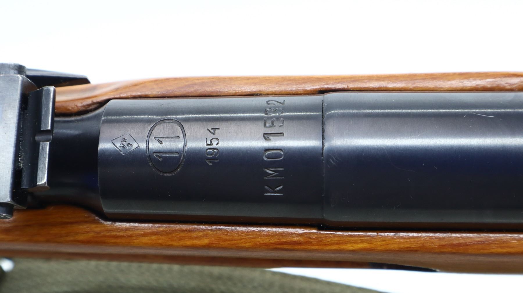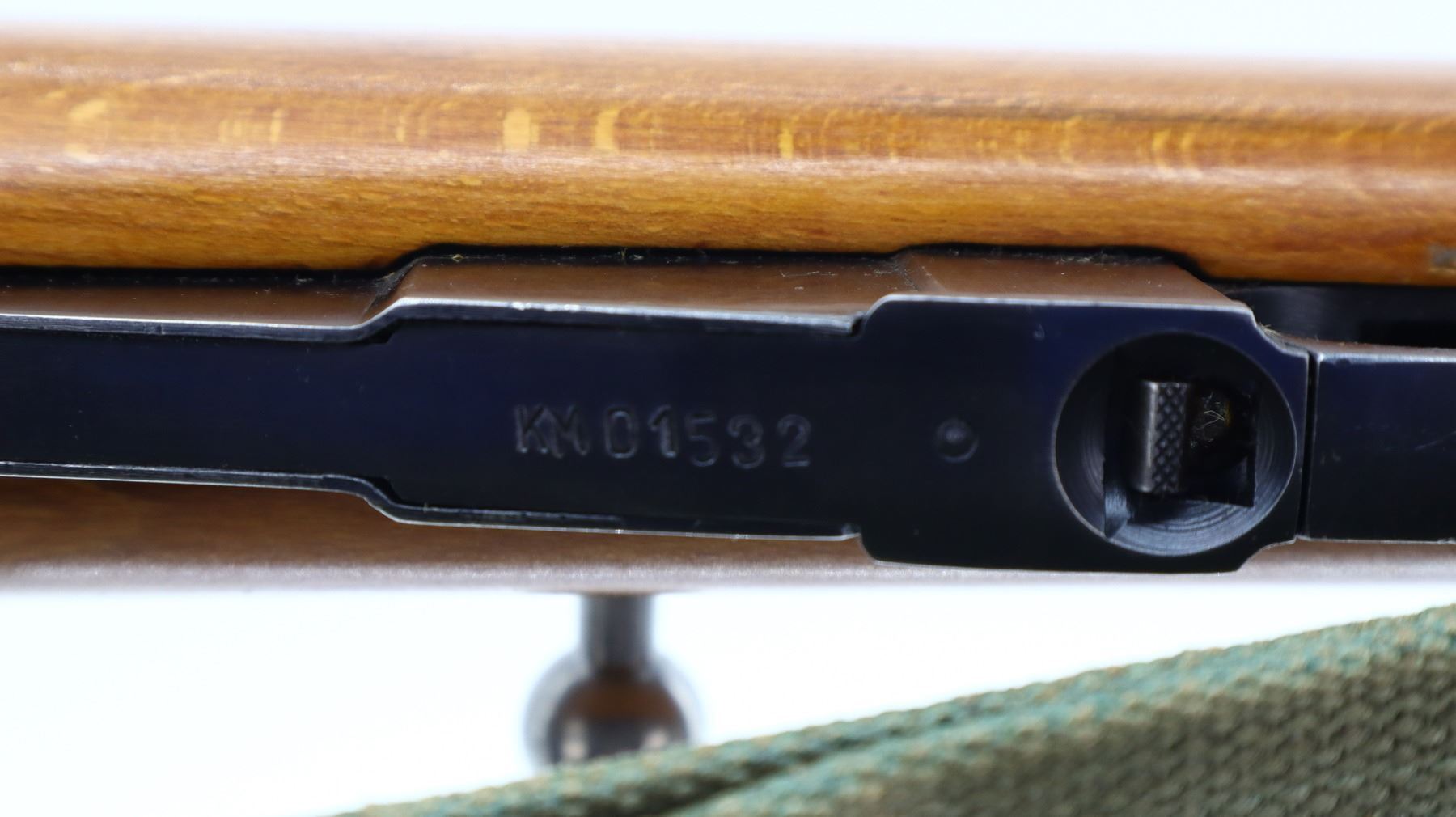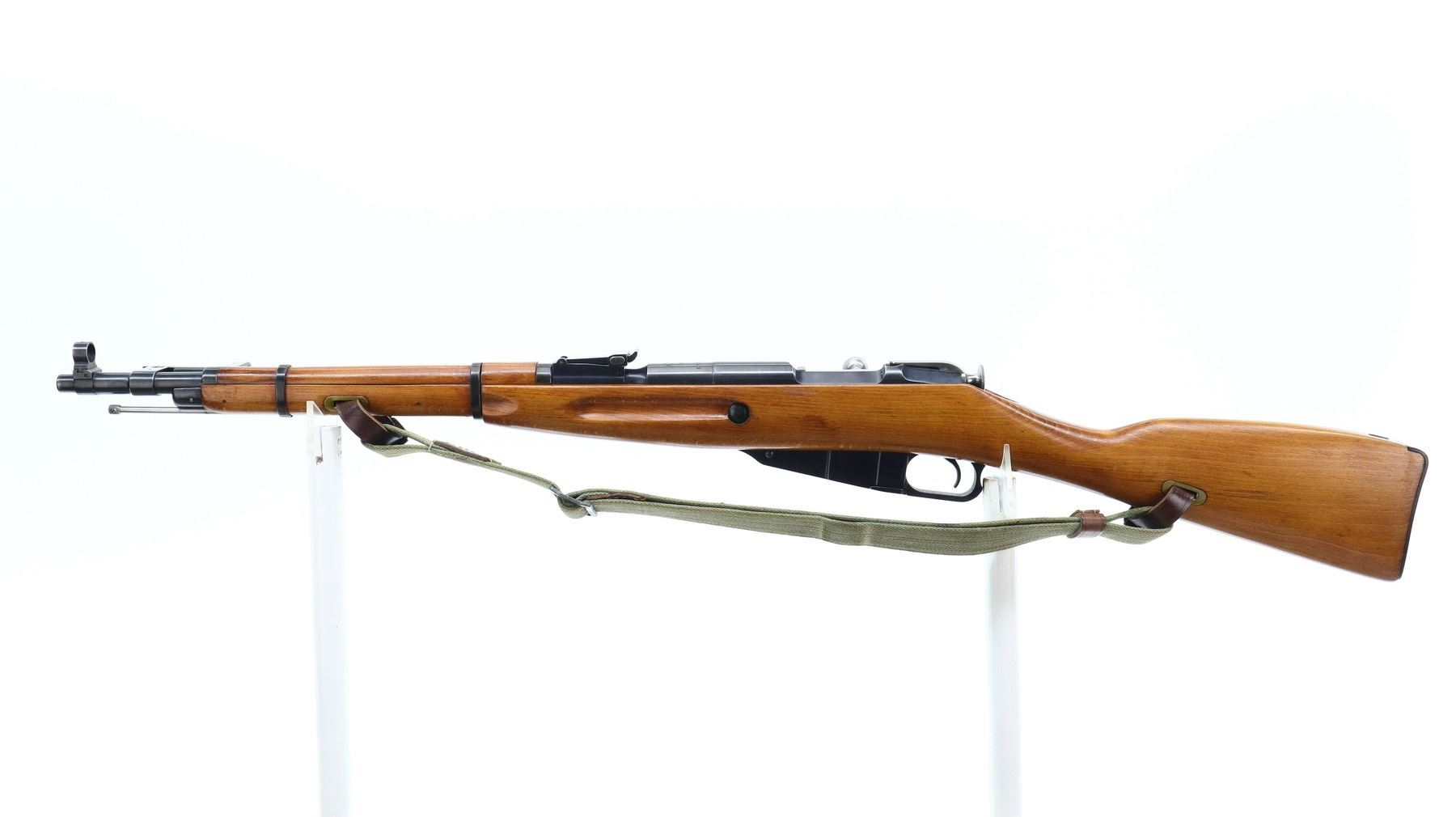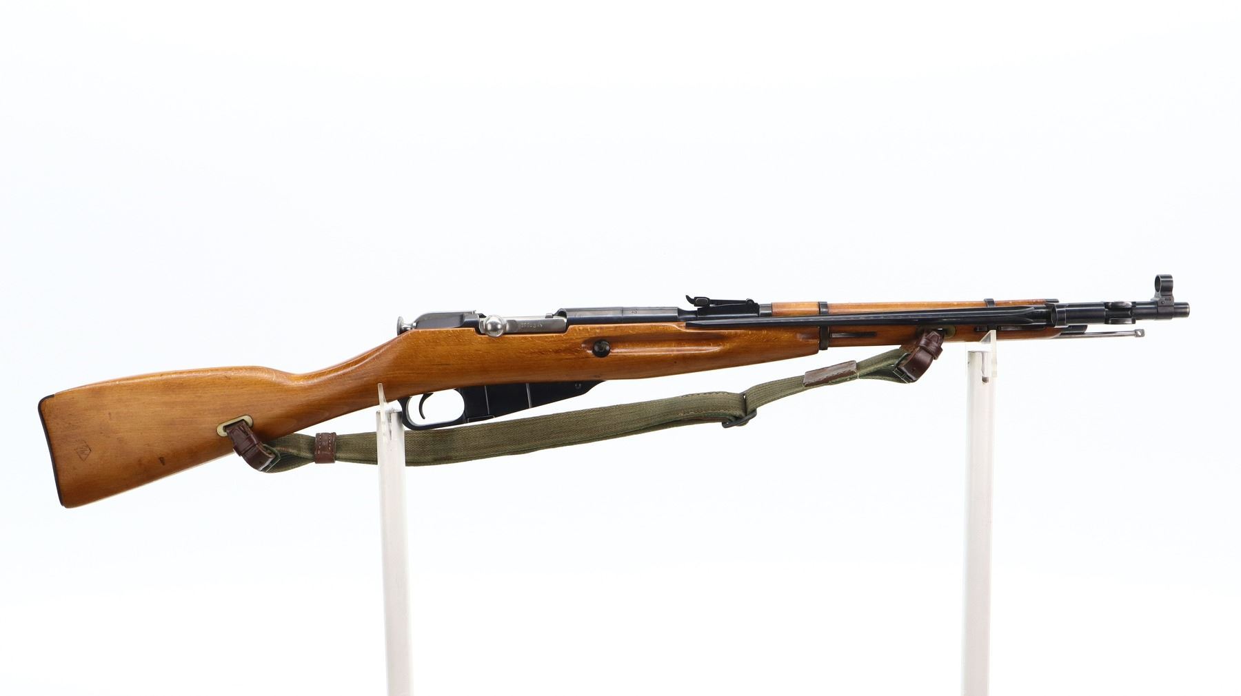 8/10, POLISH MOSIN NAGANT, MODEL: M44 CARBINE , CALIBER: 7.62 X 54R, BORE IS EXCELLENT. MANUFACTURED BY FACTORY 11, 1954. VISIBLE SERIAL #'S MATCH. POST FRONT SIGHT WITH HOOD AND RAMP. ADJUSTABLE U NOTCH REAR SIGHT. BLUED FINISH. ROUND RECEIVER. SILVER BOLT WITH STRAIGHT HANDLE. TWO PIECE SMOOTH FULL MILITARY WOOD STOCKS. FINGER GROOVED FOREND. STRAIGHT GRIP. SMOOTH STEEL BUTT PLATE. SLING SLOTS WITH CANVAS MILITARY SLING. CLEANING ROD AND ATTACHED FOLDING CRUCIFORM BAYONET. METAL FINISH SHOWS SOME SCRATCHES, HANDLING MARKS AND WEAR. STOCK SHOWS SOME MARKS, SCRATCHES AND WEAR. ACTION: BOLT ACTION RIFLE , BARREL LENGTH: 20", SERIAL: KM01532, CONDITION: 8/10, CLASS: CANADIAN NON RESTRICTED