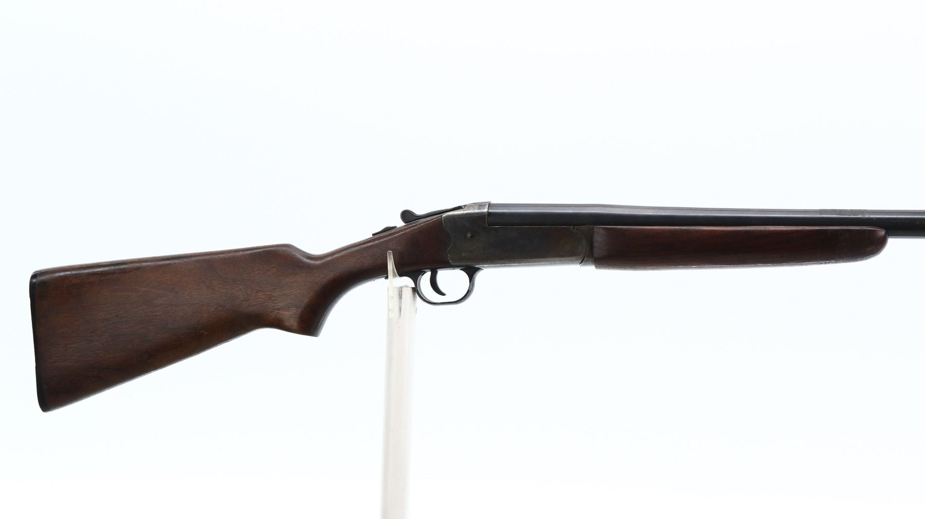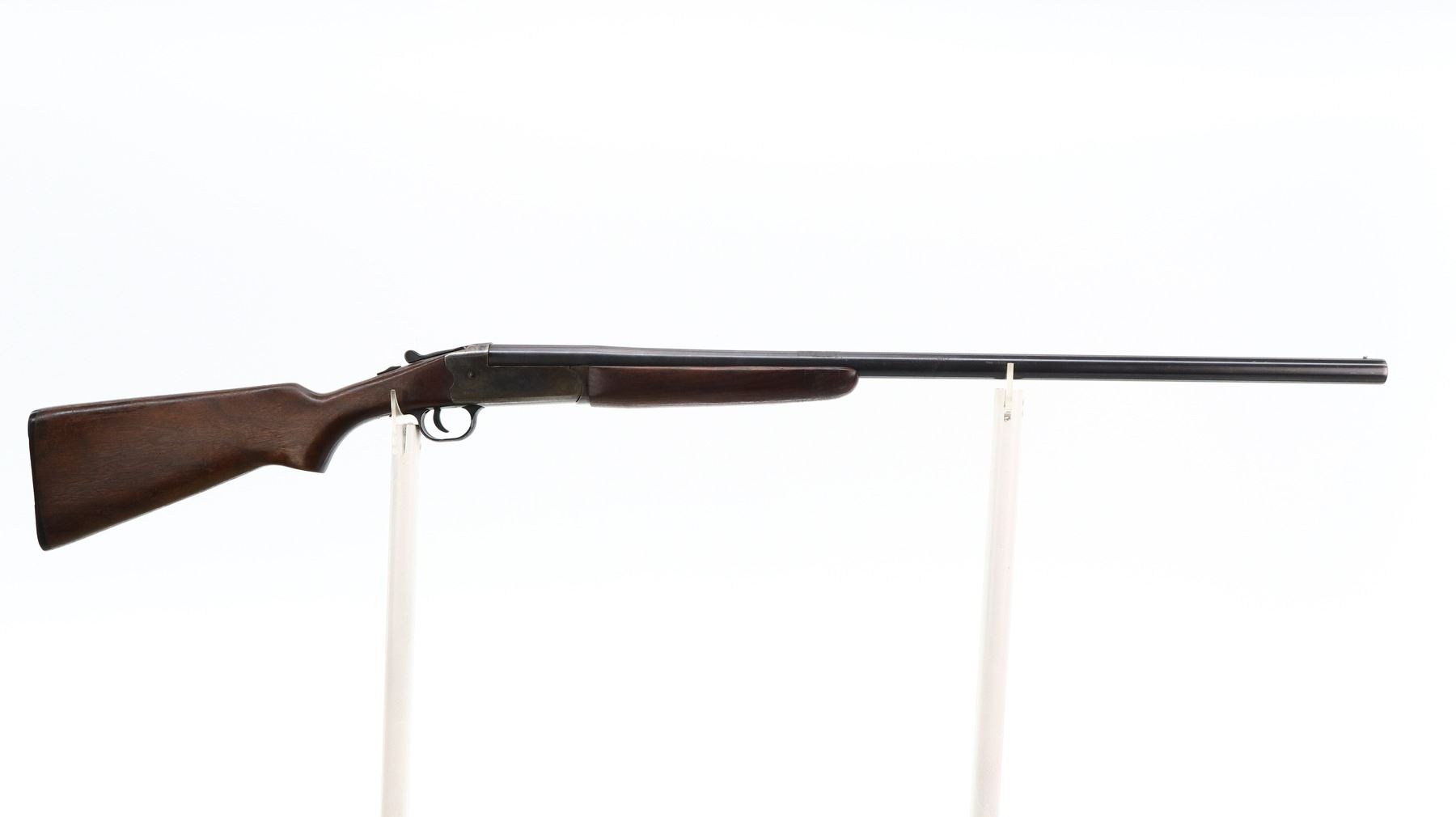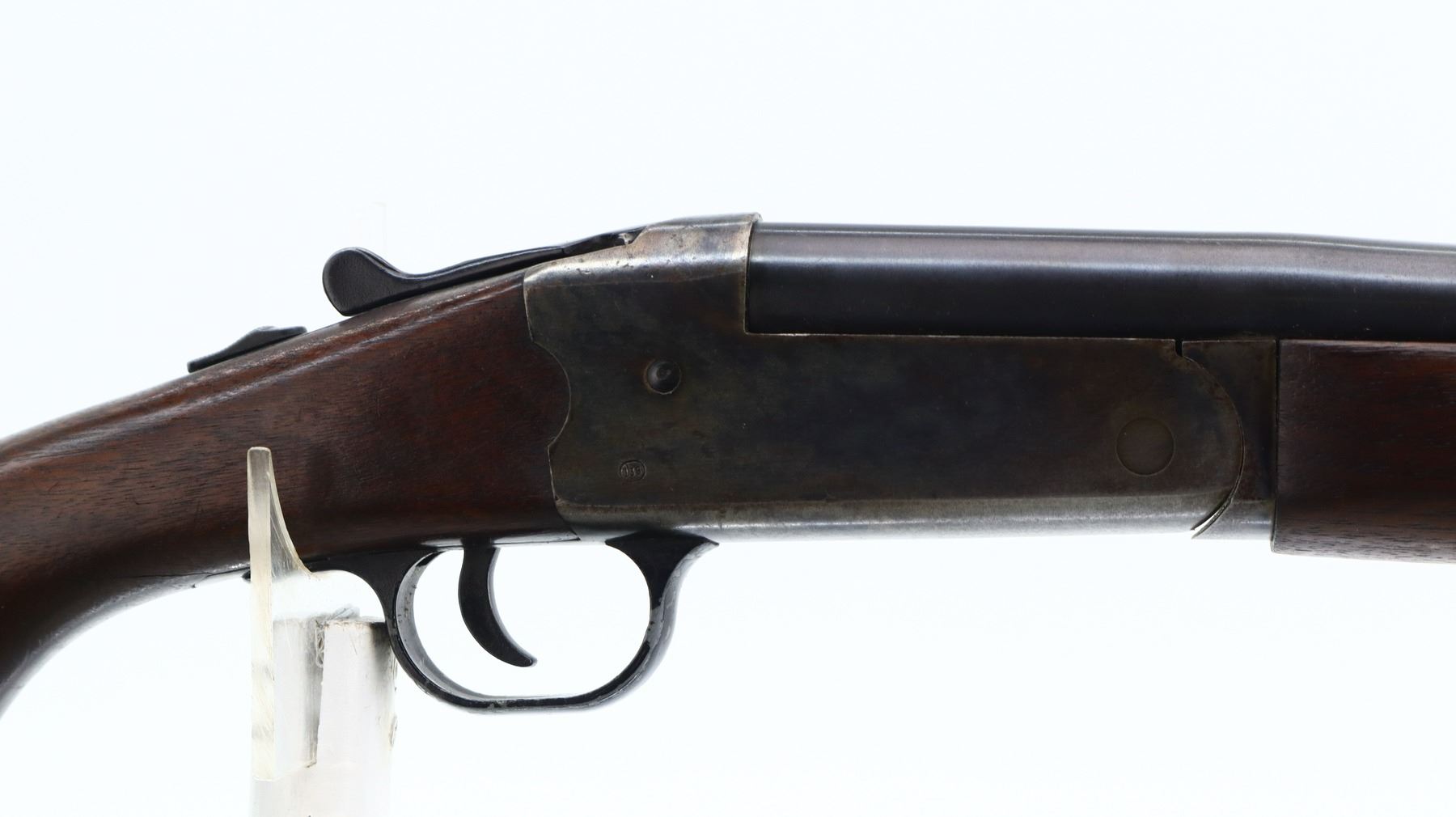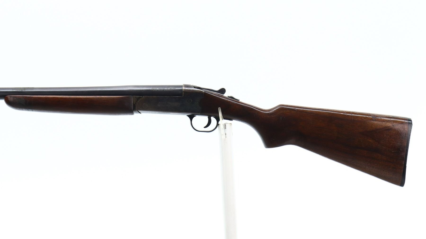 5/10, SAVAGE, MODEL: 220A, CALIBER: 12 G X 2 3/4", COMES WITH SOFT CASE, BORE IS VERY GOOD. FIXED FULL CHOKE. SILVER BEAD, BLUED ROUND BARREL, COLOUR CASED HARDENED RECEIVER, AUTOMATIC SAFETY, EJECTOR. TWO PIECE SMOOTH WOOD STOCKS, PISTOL GRIP, CRACKED BEHIND RECEIVER, GROOVED BLACK POLYMER BUTT PLATE. METAL FINISH SHOWS SOME LIGHT RUST SPECKLES, SCRATCHES, HANDLING MARKS AND WEAR. STOCKS SHOW SOME MARKS, SCRATCHES AND WEAR. ACTION: HINGED SINGLE SHOT SHOTGUN, BARREL LENGTH: 29.75", SERIAL: NA, CONDITION: 5/10, CLASS: CANADIAN NON RESTRICTED