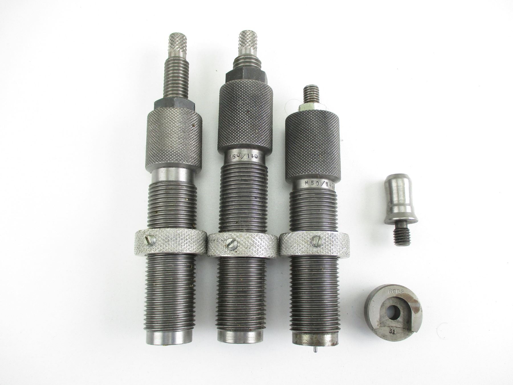 .50-140 RELOADING DIES, LOT INCLUDES; (1) 3-PIECE RELOADING DIES WITH RCBS #31 SHELL HOLDER, GOES WITH GUN LOT #2409 & AMMUNITION LOT #10798. SEE PHOTOS.