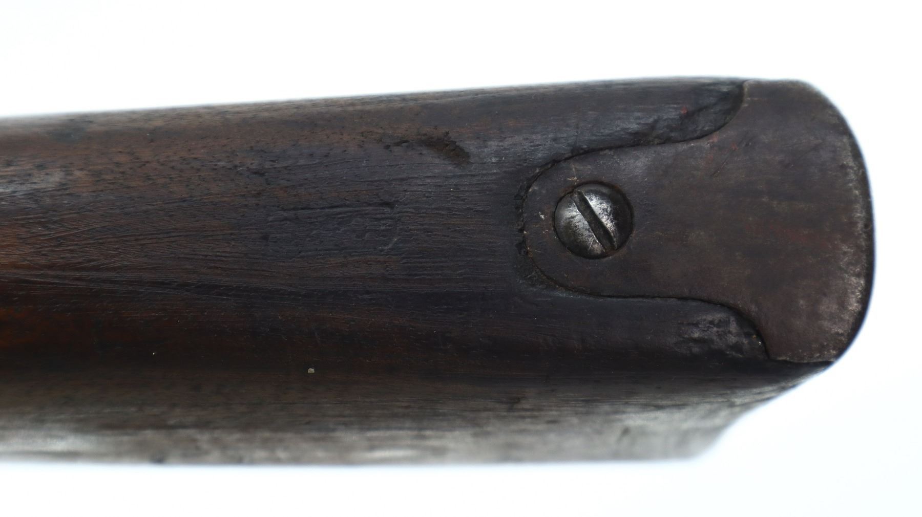 5/10, SWISS VETTERLI, MODEL: 1878 RIFLE, CALIBER: 41 SWISS RF, BORE IS POOR, DARK, PITTED. MANUFACTURED 1891, BOLT MISMATCHED. BLADE FRONT SIGHT WITH RAMP, ADJUSTABLE U NOTCHED REAR SIGHT. TWO PIECE FULL WOOD MILITARY STOCKS, CHECKERED FOREARM, STRAIGHT GRIP, SMOOTH CURVED STEEL BUTT PLATE, REAR SWIVEL BROKEN, FRONT PRESENT, MISSING BARREL BAND SCREW AND RAM ROD. METAL FINISH TURNING BROWN, WITH PITTING, LIGHT RUST, HANDLING MARKS AND WEAR. STOCKS SHOW MARKS, SCRATCHES AND WEAR. ACTION: BOLT ACTION RIFLE, BARREL LENGTH: 32", SERIAL # 5966, CONDITION: 5/10, CLASS: CANADIAN ANTIQUE, NO LICENSE REQUIRED